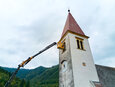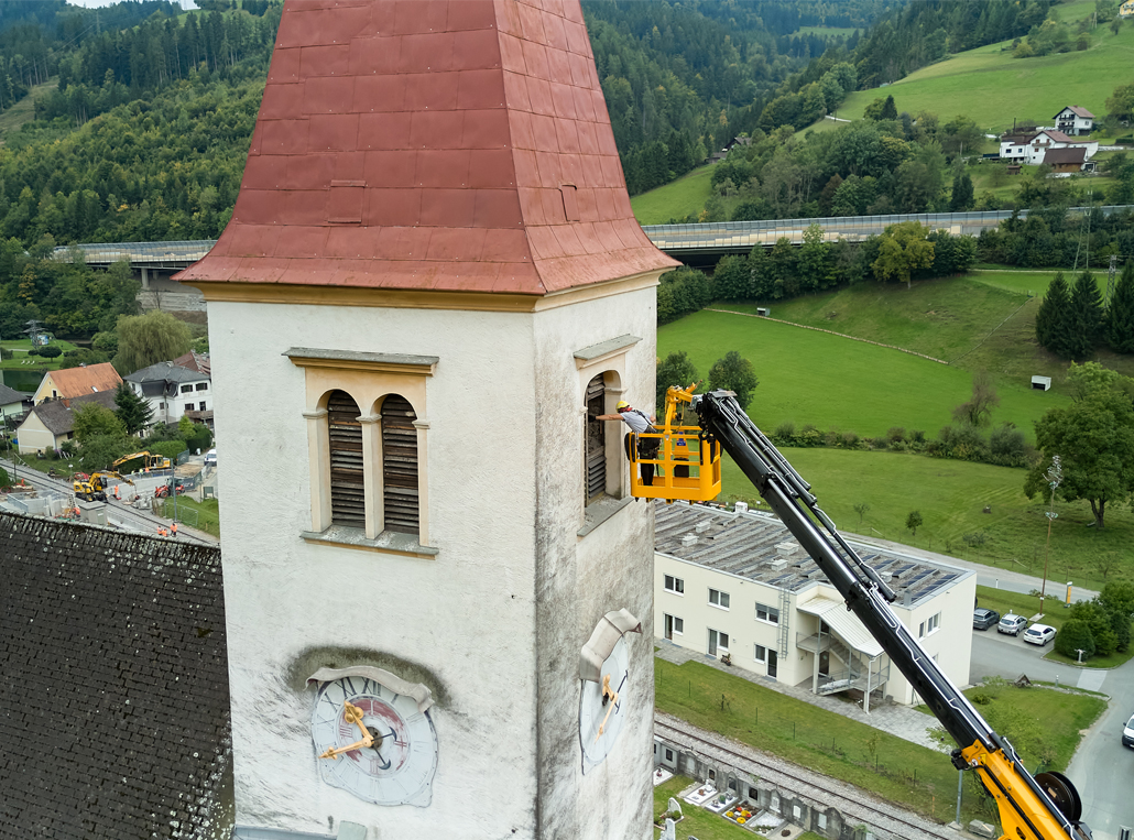 Mobilni telefonski stolpi so bistveni za komunikacijo po vsej državi. Včasih pa jih ni mogoče opaziti od daleč, saj so – kot v tem primeru – »skriti« v cerkvenih zvonikih. Podjetje Prangl je bilo poklicano na takšno nenavadno lokacijo, ker je bila potrebna prenova. Težava je bila v tem, da okoli cerkve skoraj ni bilo prostora za večjo opremo.