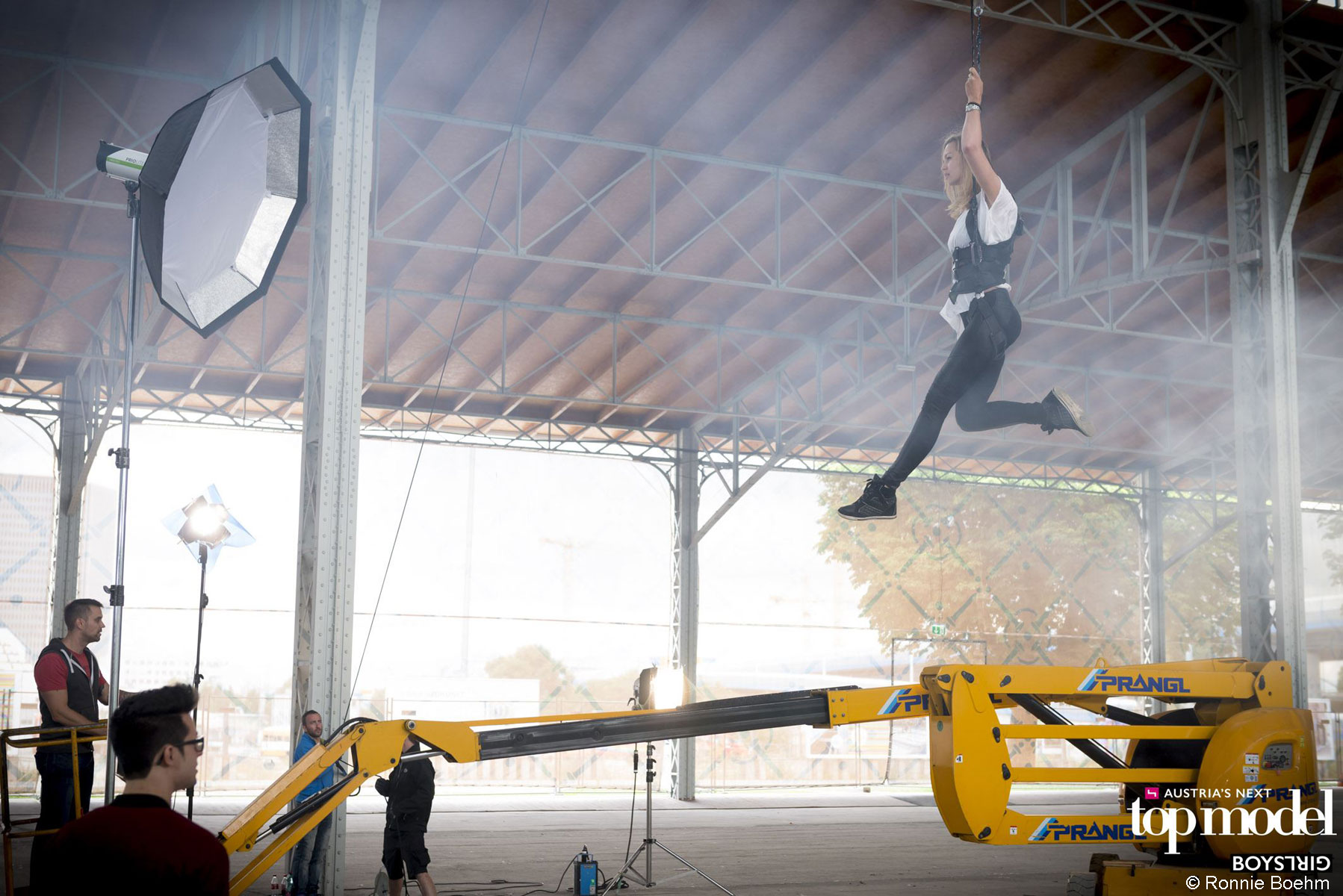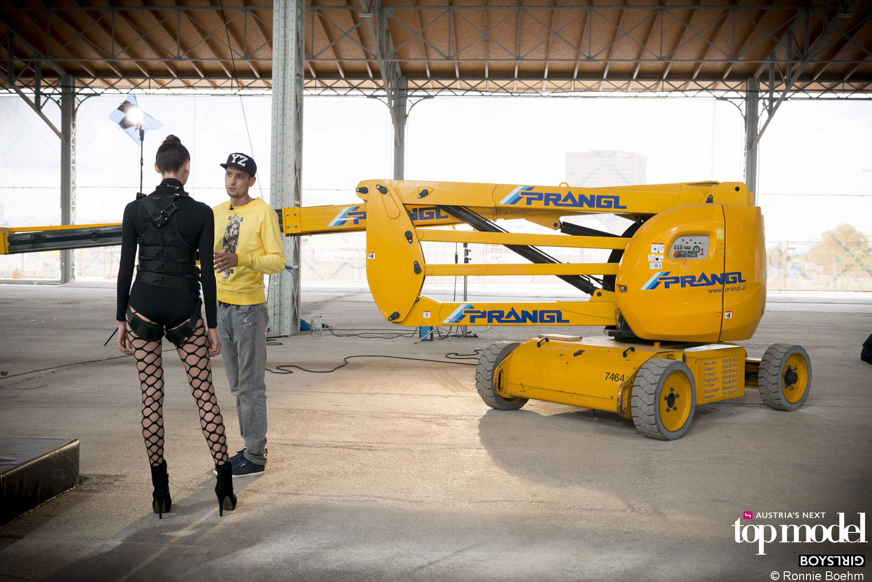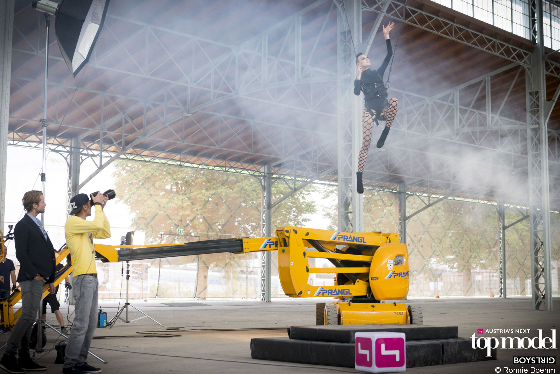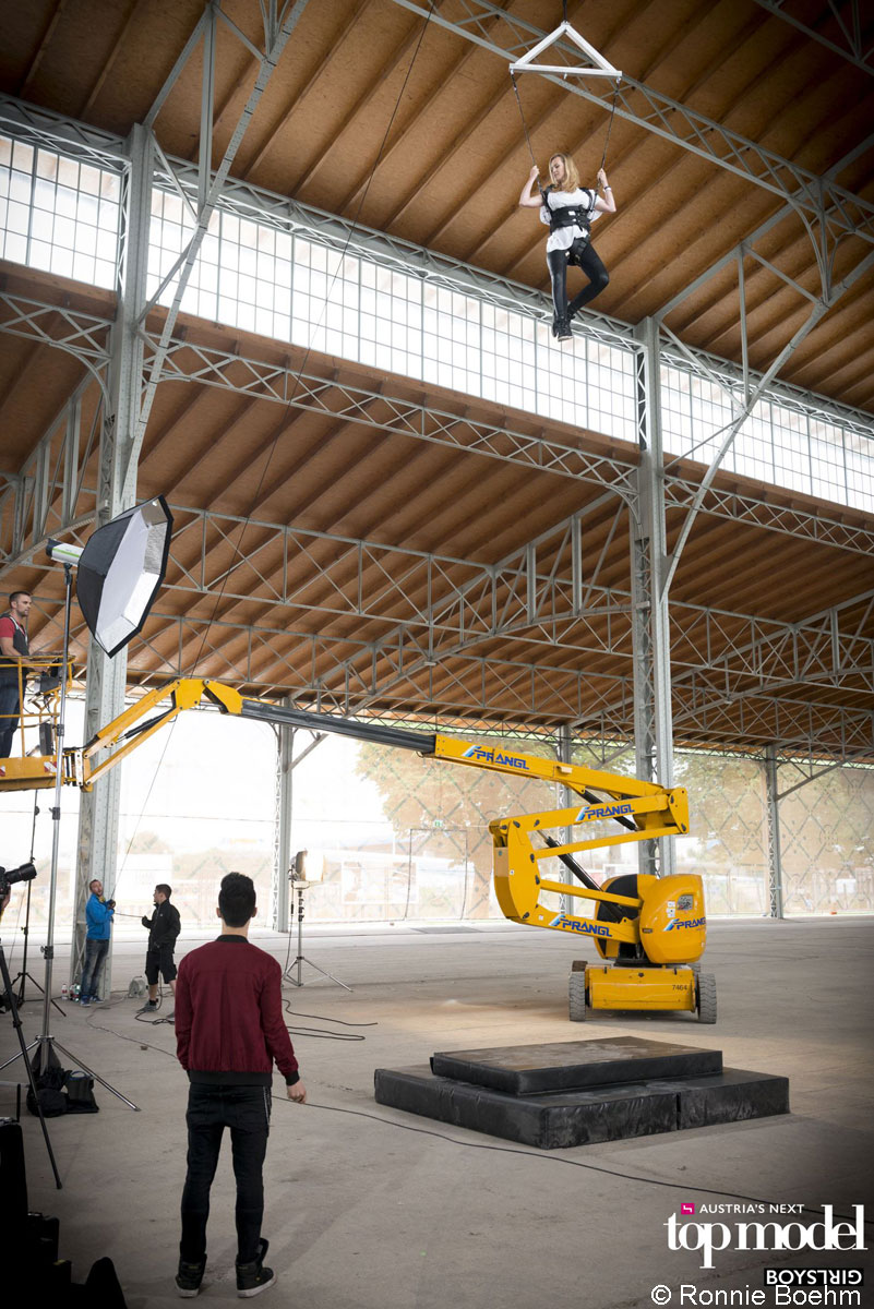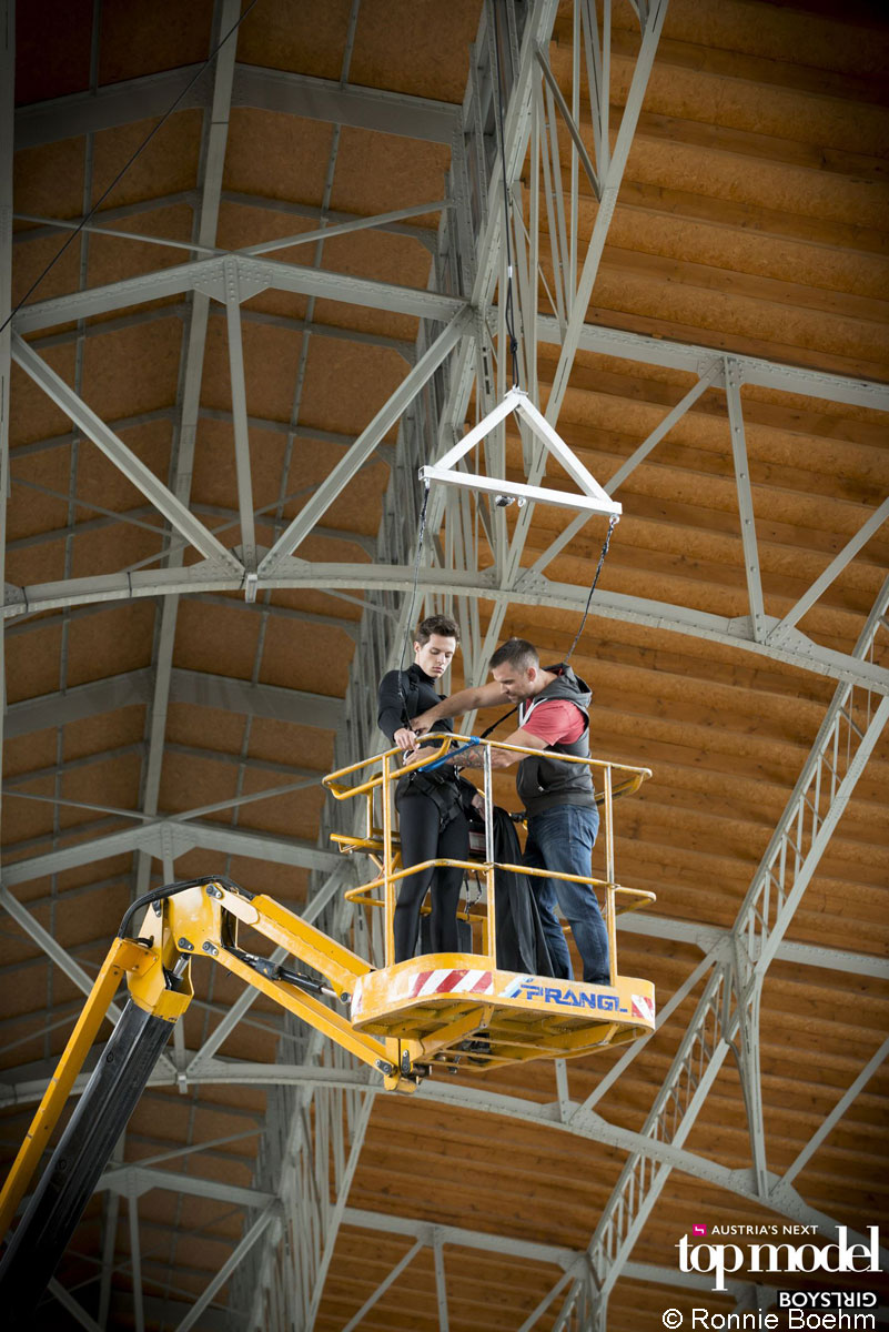 Za 5. epizodo Avstrijskega Top Modela so si producenti kanala Puls 4 izmislili nekaj posebnega: kandidatke in kandidati za Top Model so se morali po vrveh spustiti na oder in pri tem pokazati svoje najboljše poze. Nosilno vlogo je pri tem odigrala električna zglobna delovna ploščad z dvižno višino 17 m. Z njo smo dvignili kandidate, preden so se na oder spustili po vrveh. Zaradi te vloge »rumenega Top Modela« iz hiše Prangl preprosto ni bilo mogoče spregledati.