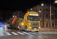Po prestani noči in dnevu na "rumenem" območju podjetja smo smreko nato prepeljali na dunajski Rotovški trg. Zgodaj zjutraj se je začel zadnji akt na tem potovanju: postavitev ponosne smreke. Tudi v glavnem mestu smo morali uporabiti dve mobilni dvigali. S tandemskim dvigom sta teleskopski dvigali nosilnosti 60 ton božično drevo obrnili in ga milimeter natančno namestili v predvideno talno odprtino. Ta božični spektakel je še enkrat dokazal, kako brezhibno lahko delujejo logistični projekti, če uporabimo zasnovo "One Stop Shopping" podjetja Prangl.