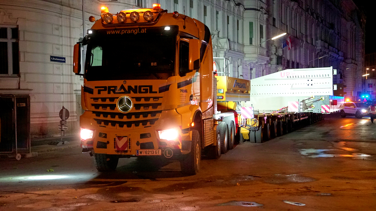 Poleg izvedbe prevoza so bili rumeni strokovnjaki odgovorni tudi za celotno načrtovanje poti, obsežno pridobivanje dovoljenj in prilagoditve na transportni poti. Že v marcu 2021 so se začela pripravljalna dela za ta spektakularen podvig. Na začetku je bilo v ospredju vprašanje primerne opreme. Še posebej zaradi poteka poti in prevoza skozi dunajsko mestno jedro je bilo treba pri transportni tehniki preveriti, ali lahko ponudi optimalne vozne lastnosti in ustrezno okretnost v zavojih. Na koncu smo uporabili posebno opremo, ki je v Avstriji edinstvena.