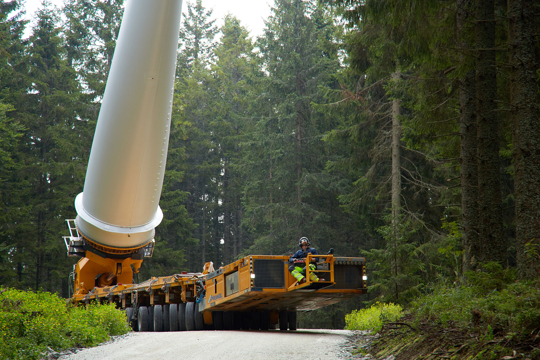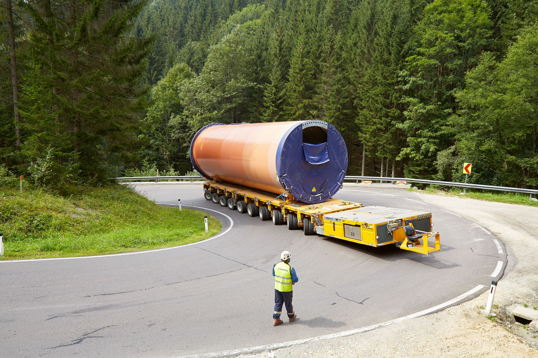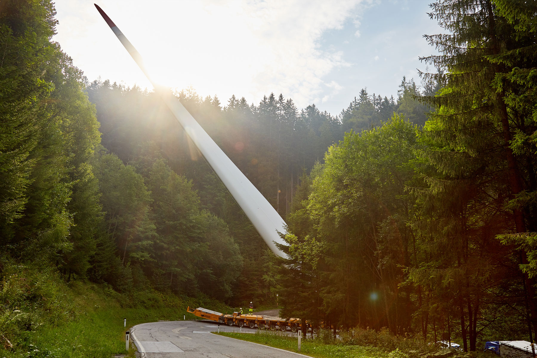 S transporterji težkih tovorov smo strojna ohišja (posamična teža 65 t), pesta (posamična teža 31,5 t), pogonske sklope (posamična teža 61 t) in lopatice vetrnih turbin (posamična teža 14,7 t) prepeljali z Danske v Avstrijo. Stebrni segmenti so prispeli iz Nemčije. Najtežje in največje kose je bilo treba prepeljati z rečno ladjo. Po pretovarjanju v pristanišču v Ennsu, kar je prav tako izvedla družba Prangl, so bili najtežji jekleni deli z maso do 87 t pripravljeni za nadaljnji prevoz. Jekleni segmenti so merili v dolžino do 30 m.