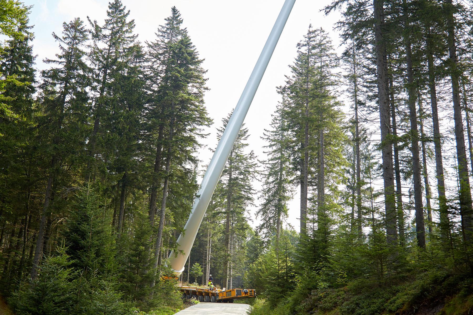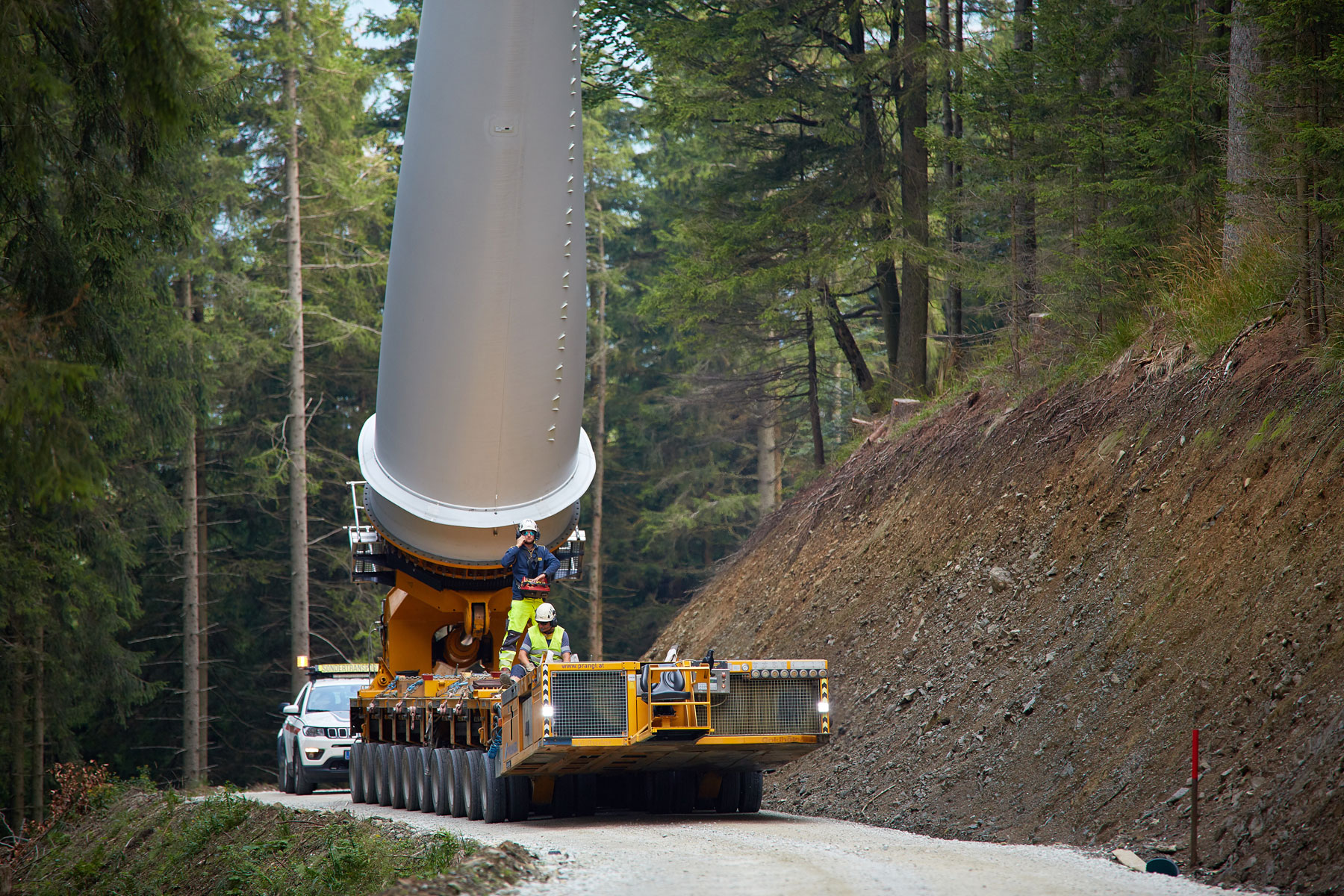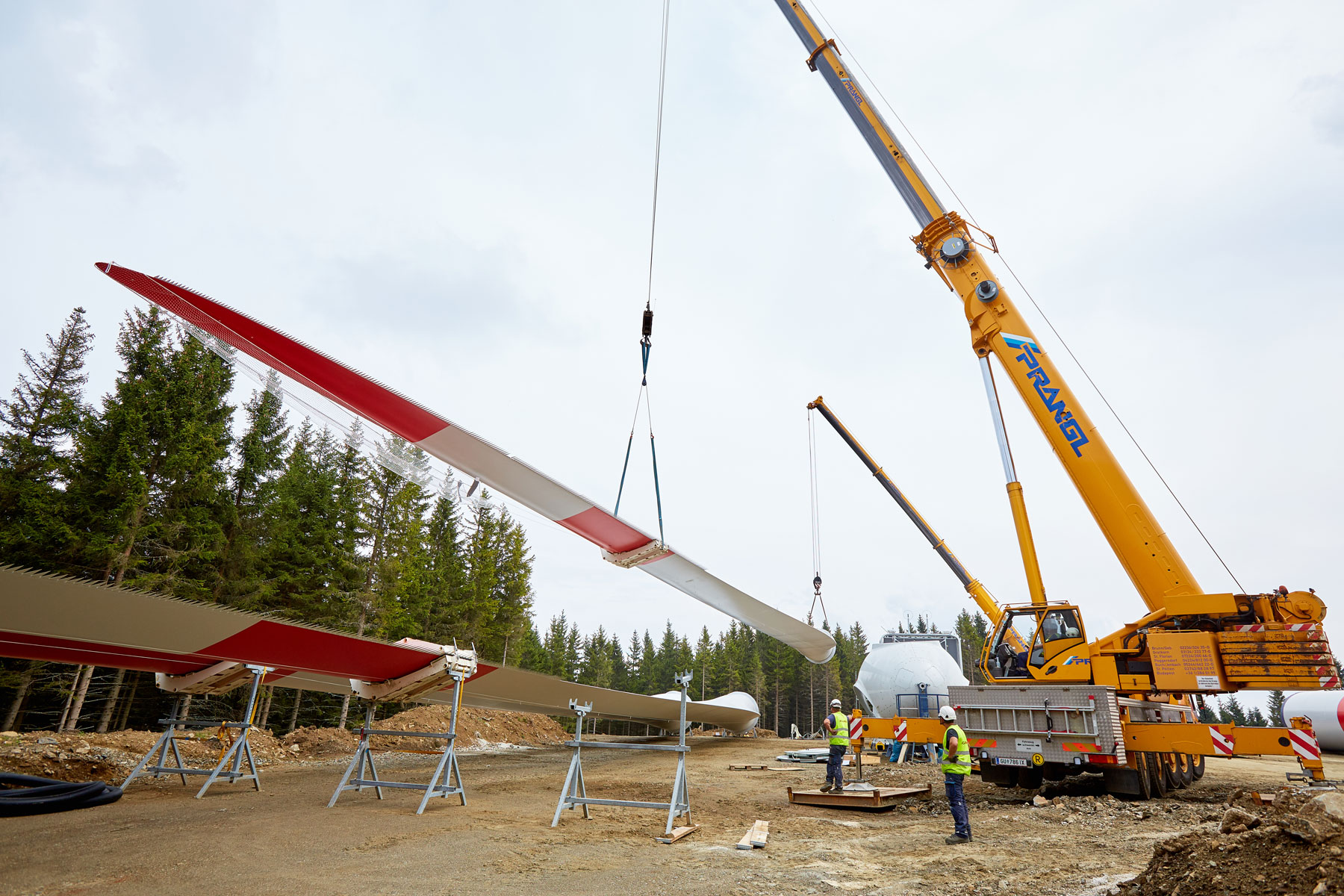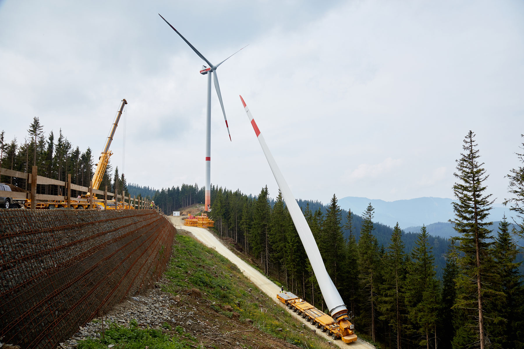 S transporterji težkih tovorov smo strojna ohišja (posamična teža 65 t), pesta (posamična teža 31,5 t), pogonske sklope (posamična teža 61 t) in lopatice vetrnih turbin (posamična teža 14,7 t) prepeljali z Danske v Avstrijo. Stebrni segmenti so prispeli iz Nemčije. Najtežje in največje kose je bilo treba prepeljati z rečno ladjo. Po pretovarjanju v pristanišču v Ennsu, kar je prav tako izvedla družba Prangl, so bili najtežji jekleni deli z maso do 87 t pripravljeni za nadaljnji prevoz. Jekleni segmenti so merili v dolžino do 30 m.