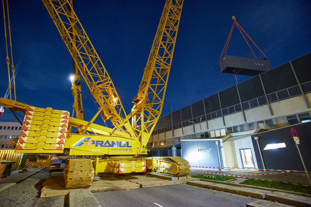 Ko je oskrba z električno energijo izjemno pomembna, morajo agregati za zasilno napajanje v izrednih razmerah zagotoviti oskrbo z elektriko. To velja tudi, kadar je treba zaščititi podatke v podatkovnih centrih. Podjetje Prangl je bilo zadolženo, da oba agregata dvigne na mesto uporabe, kjer bosta pripravljena za izredne primere.