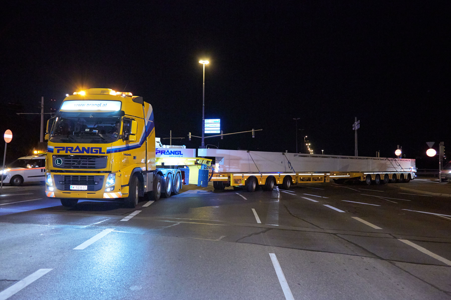 Osnovno konstrukcijo hale sestavljajo stebri in nosilci iz železobetona, z dolžinami do 31 m in posamično težo do 71 t. Vendar pa so dimenzije v manjši meri predstavljale razlog za zahtevnost projekta. Več preglavic nam je delala množina prevozov. Včasih je bilo treba izvesti tudi po pet prevozov na noč. Skupno smo morali treba iz Perga na Dunaj prepeljati okrog 500 železobetonskih elementov – in to v obdobju 3 do 5 mesecev.