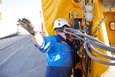 Za to nalogo je veljalo najprej izdelati natančen koncept. Kajti pri maksimalni transportni dolžini 49 m je bilo treba že predhodno dobro premisliti, kako se bomo zadeve lotili. Razkladanje z ladje s pristaniškim dvigalom in teleskopskim dvigalom nosilnosti 130 t. Zaradi različnih tehnologij dvigal je tak tandemski dvig vedno poseben izziv.