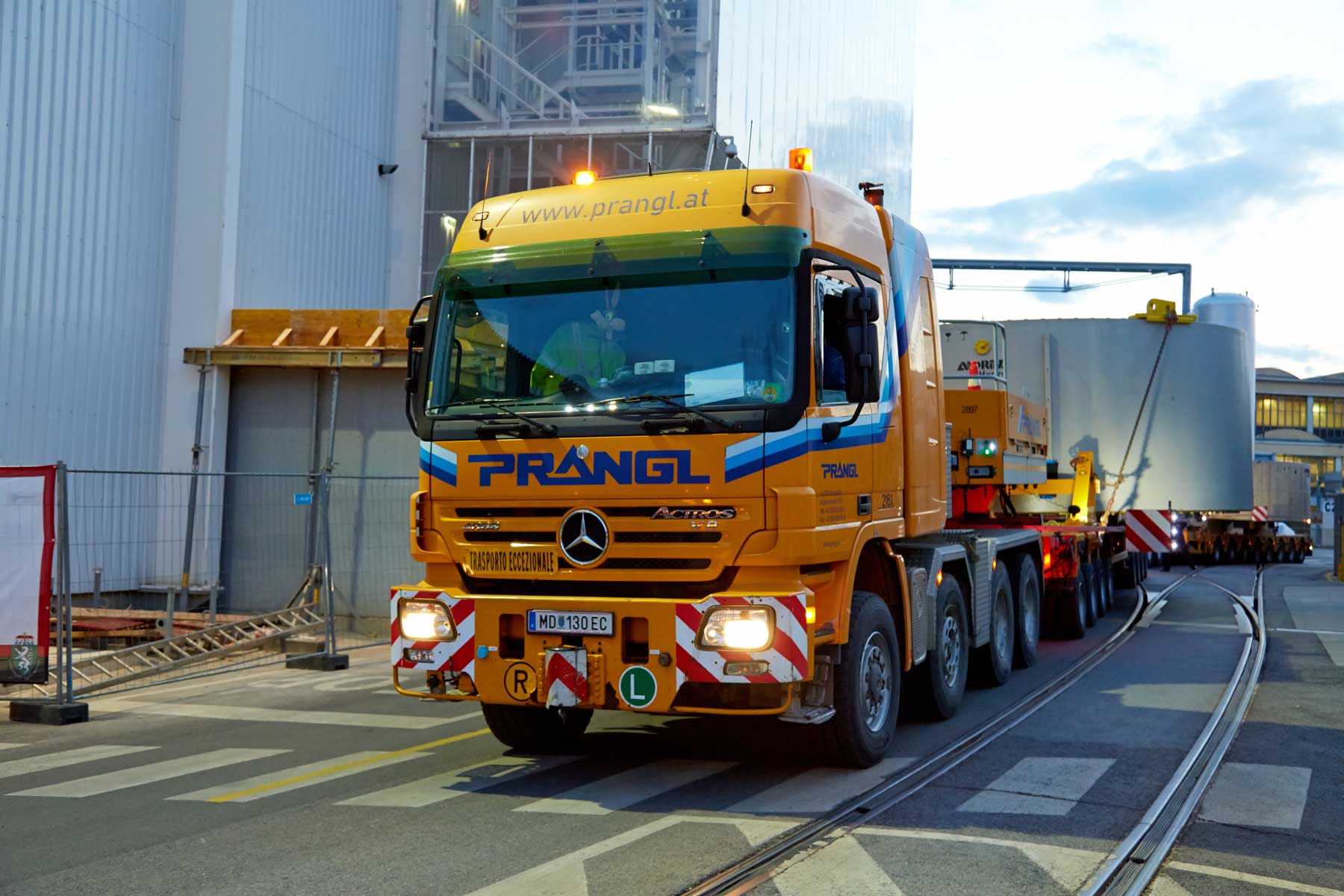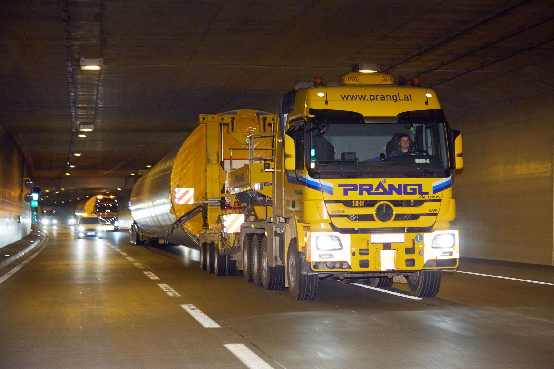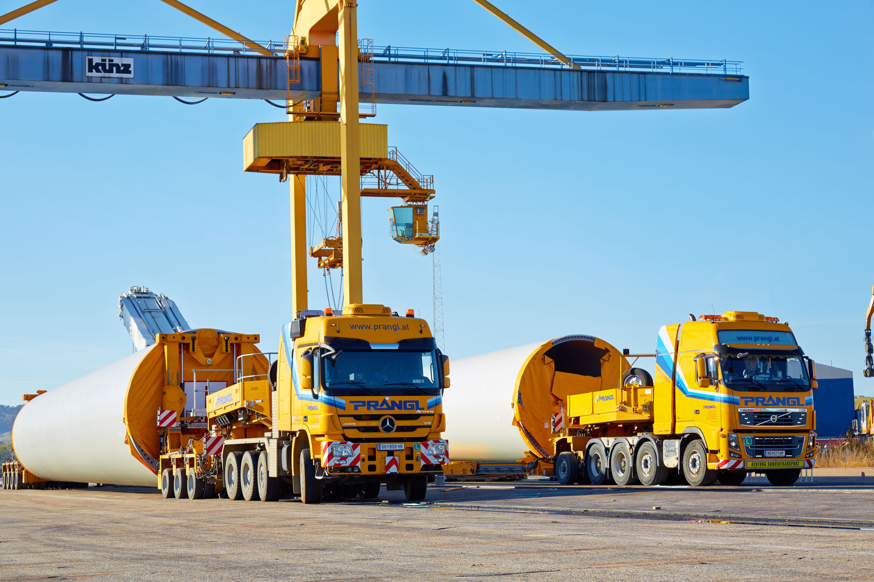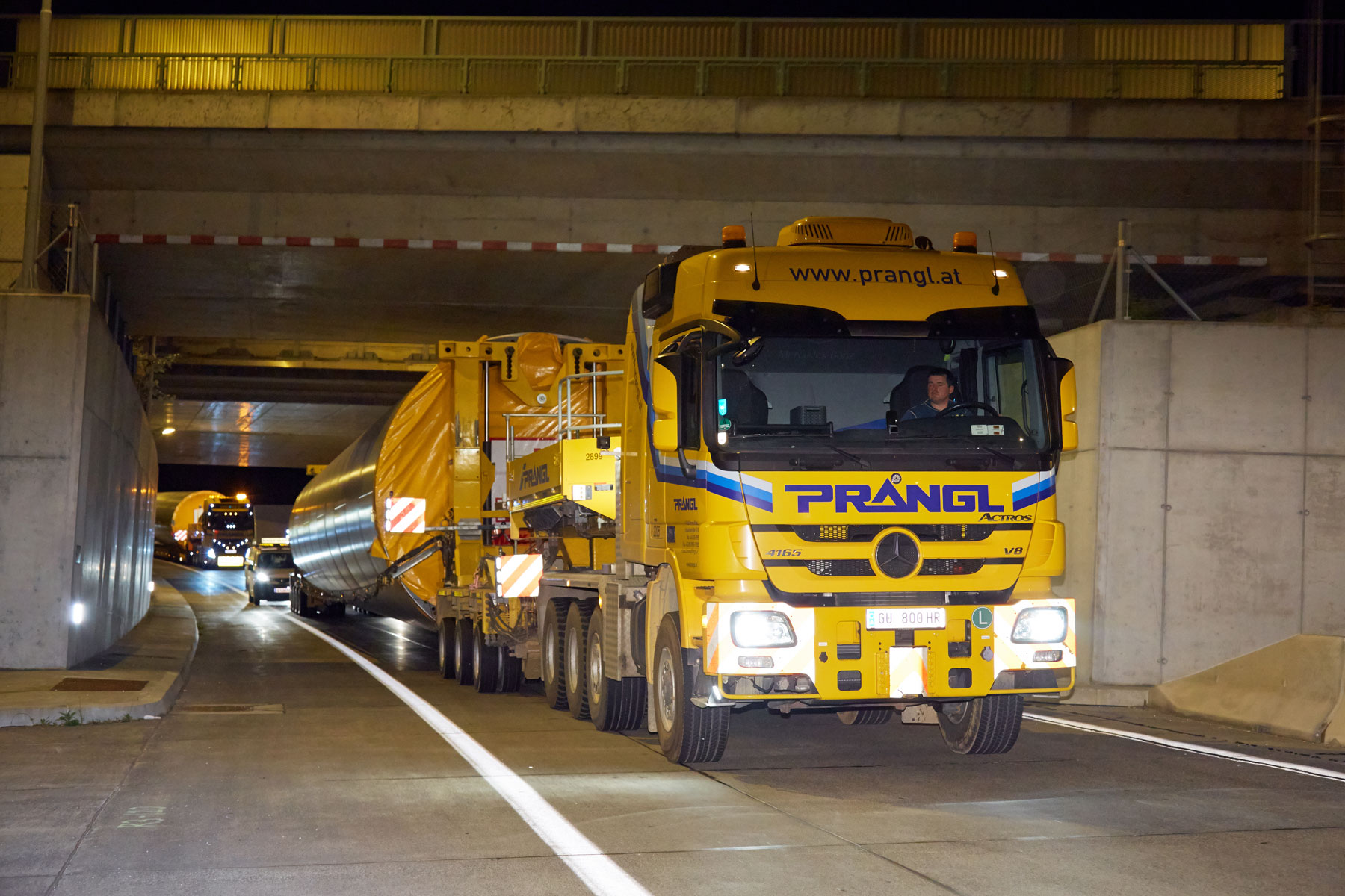 Zaradi gradbišča na prevozni poti iz Nemčije v Avstrijo je bilo treba 11 jeklenih segmentov stebrov vetrnih turbin prepeljati v Avstrijo z rečno ladjo. Skupaj z donavskim pristaniščem Krems smo izdelali ustrezen logistični koncept. S skupno 11 prevozi smo jeklene segmente po cesti prepeljali v vetrno elektrarno Paasdorf.