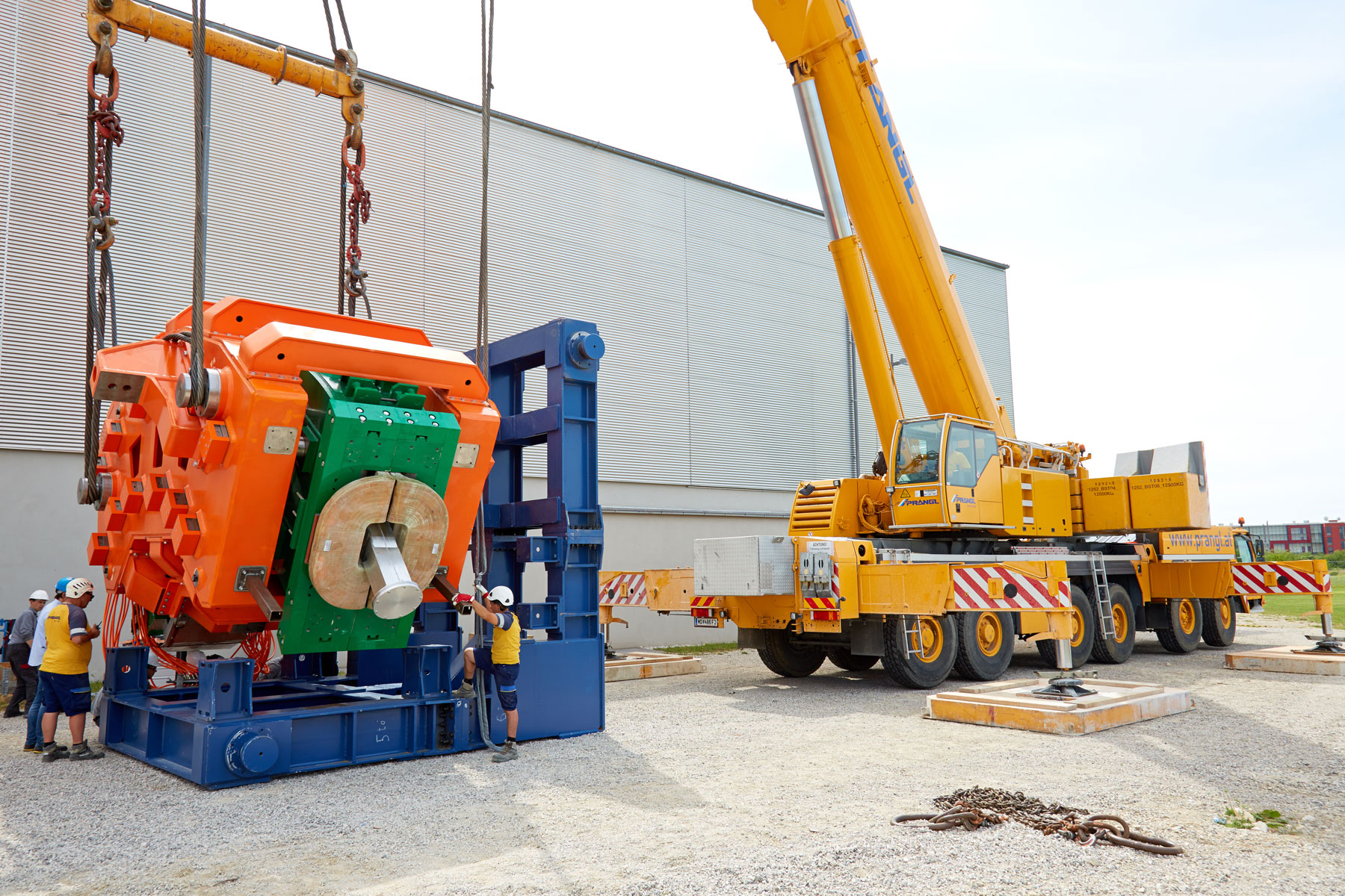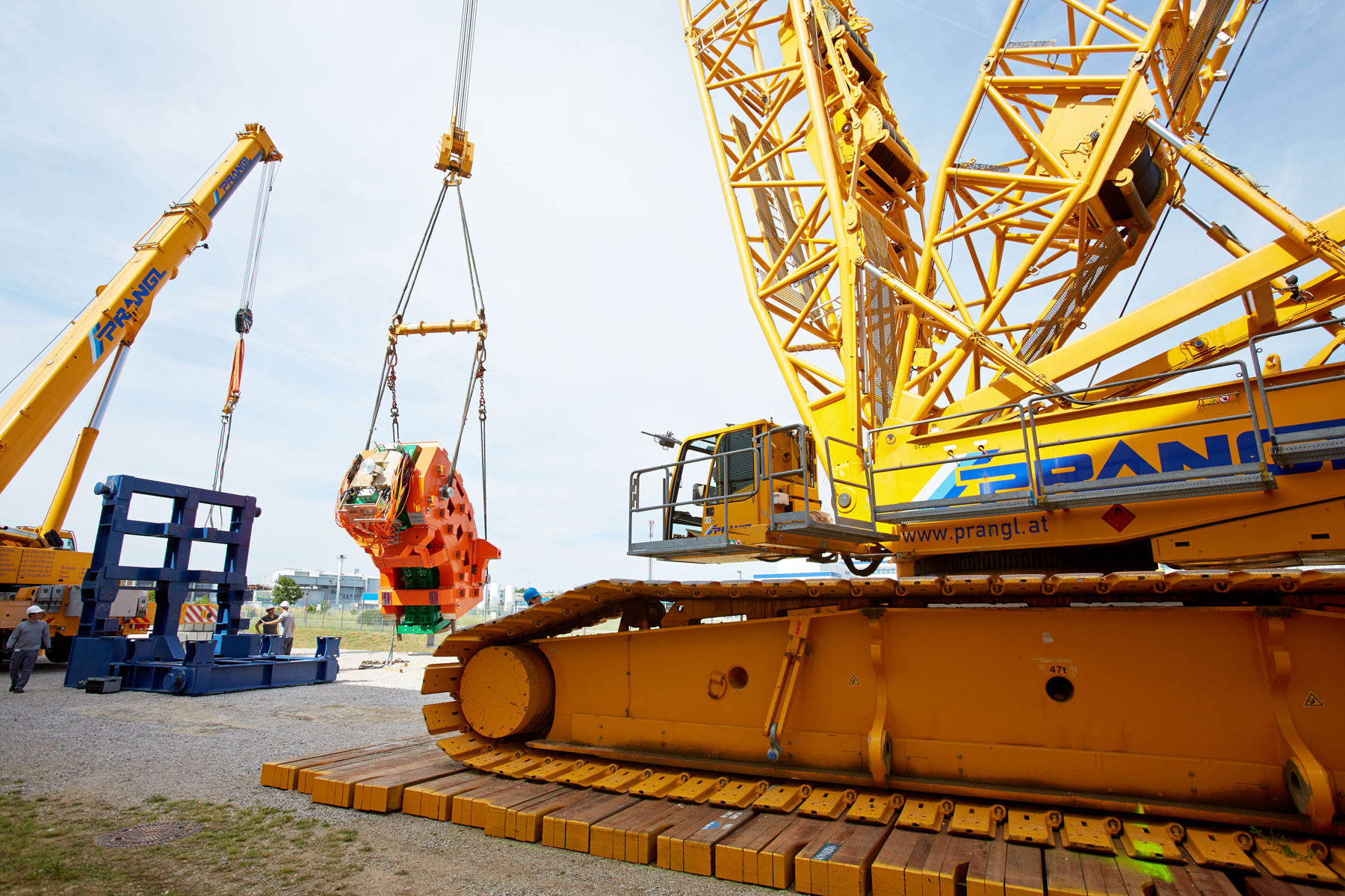 Za ustrezen premik posamične teže 120 t smo uporabili gosenično dvigalo nosilnosti 600 t. Magnet smo postavili na posebej zanj izdelano stensko stojalo in ga obrnili za 90 stopinj. Po težavnem dviganju in obračanju smo magnet razstavili s pomočjo teleskopskega dvigala nosilnosti 250 t. Najtežji deli so nato tehtali le še po 54 t.