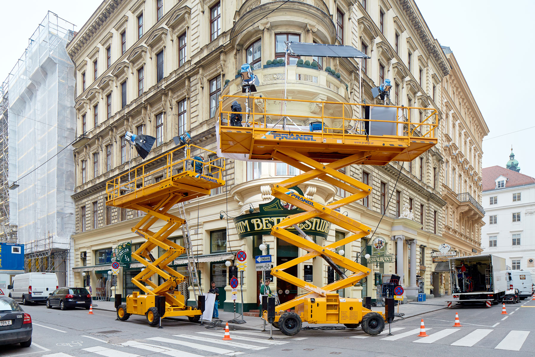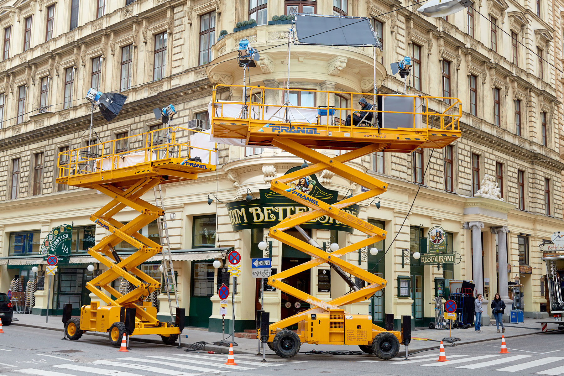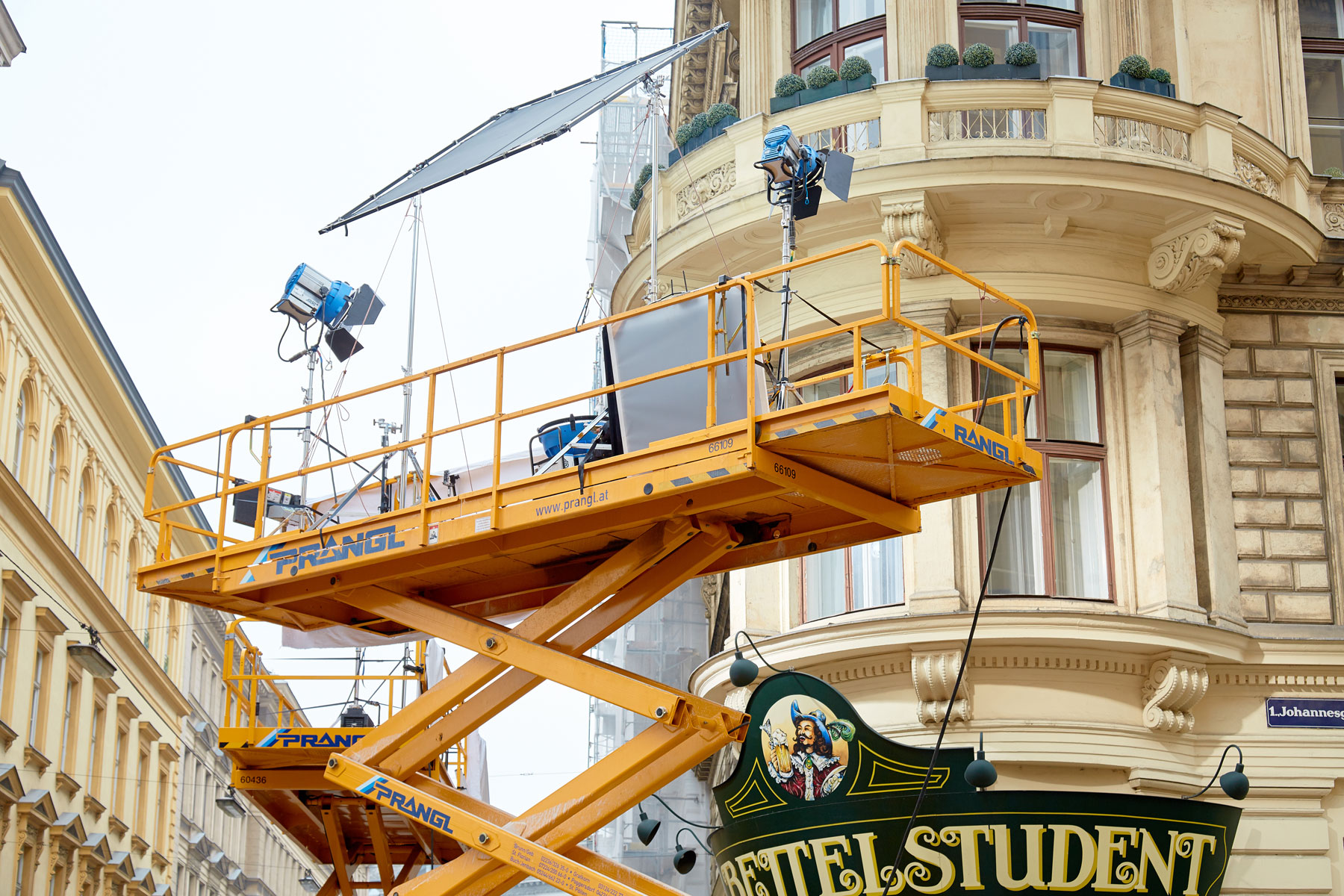 Čez pribl. leto dni bo avstrijska radiotelevizijska hiša ORF predvajala epizodo Mesta zločina z delovnim naslovom »Pest.« Za optimalno osvetljavo so med drugim poskrbele različne delovne ploščadi družbe Prangl. V osmih različnih scenah so bile v akciji raznolike naprave: 5 x škarjasta dvižna delovna ploščad z dvižno višino 15 m, 2 x škarjasta dvižna delovna ploščad z dvižno višino 10 m in 1x zglobna delovna ploščad z dvižno višino 43 m.