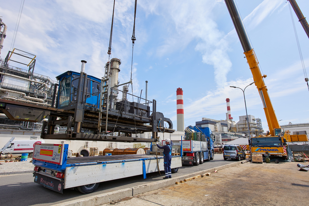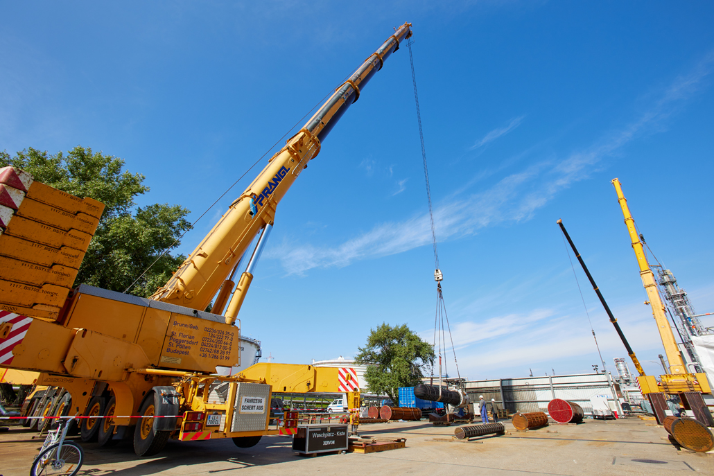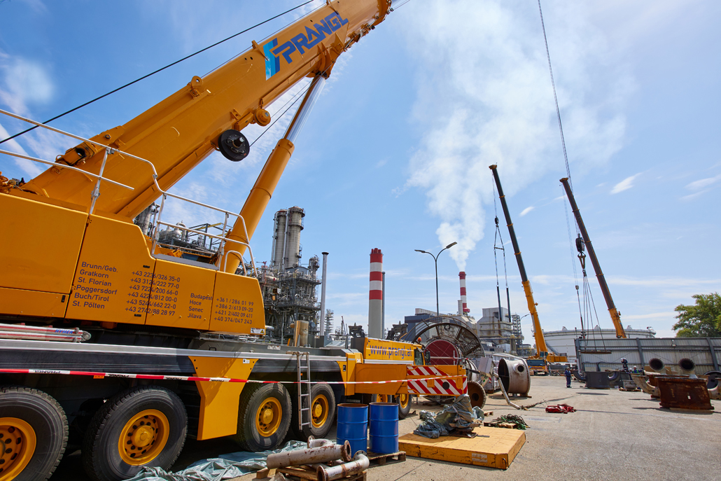 Delo na lokaciji OMV Schwechat je predmet zelo posebnih varnostnih smernic. Zaposleni v Pranglu, na terenu za najrazlićnejša dela, opravljajo širok spekter nalog, zato so visoko usposobljeni. Zdaj je bila na programu še ena revizija. Za delovni program je bilo predvidenih sedem tednov. Podjetje Prangl je bilo najeto za transport znotraj prostorov in dvigovanje med čistilnimi boksi – zaradi njegove zanesljivosti in bogatih izkušenj v petrokemičnem sektorju.