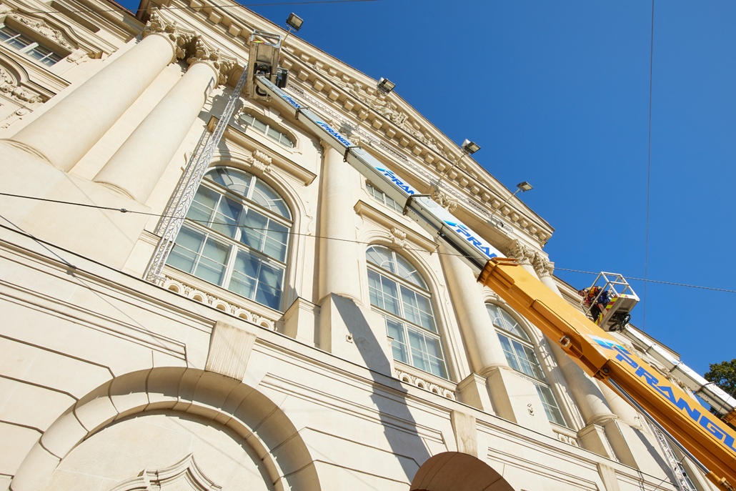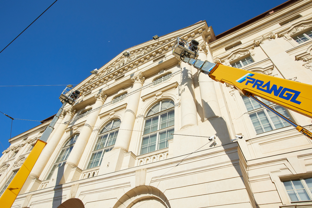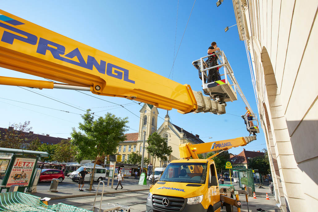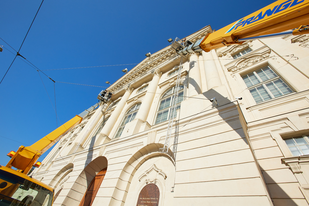 Opera v Gradcu - druga največja operna hiša v Avstriji po Dunajski državni operi - praznuje začetek nove umetniške sezone vsako leto na začetku jeseni. Ob tej priložnosti je bilo treba na fasado območja Kaiser-Josef-Platz namestiti transparent velikosti 11 x 9 metrov. Pri tem projektu ni šlo za težo, temveč za velikost objekta, ki ga je bilo treba sestaviti, omejenost prostora in predvsem številni nadzemni vodi in oporniki. Slednji so bili odgovorni za to, da so naprave upravljali Pranglovi strokovnjaki.