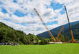Bistveno izhodišče izbrane logistične zasnove je bil poskus, da bi bili posegi v naravno kar se da neznatni. Druge zamisli z dvema teleskopskima dvigaloma bi potrebovale veliko večjo stojno površino, kar bi zahtevalo večji poseg v naravo. Zemeljska dela, opravljena s 600-tonskim goseničnim dvigalom, so bila res minimalna. Tudi dovozna cesta je bila krajša. Rumeni orjak je tehtal pribl. 615 ton. Za nameščanje smo uporabili še teleskopsko dvigalo nosilnosti 250 ton in teleskopski viličar nosilnosti 6 ton.