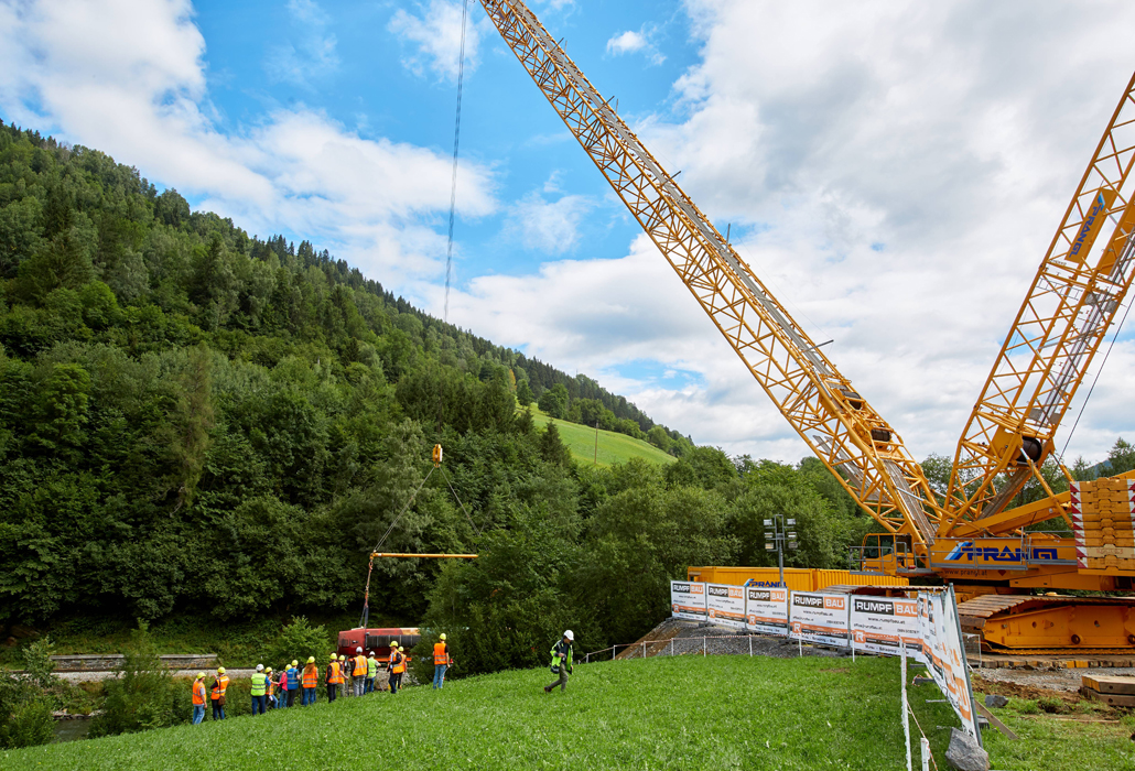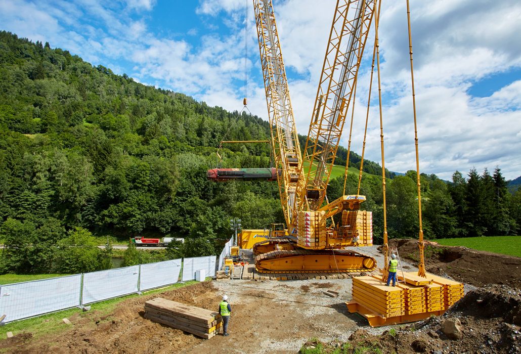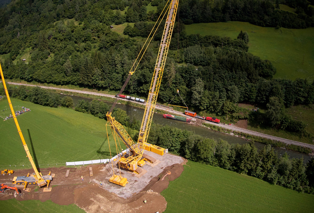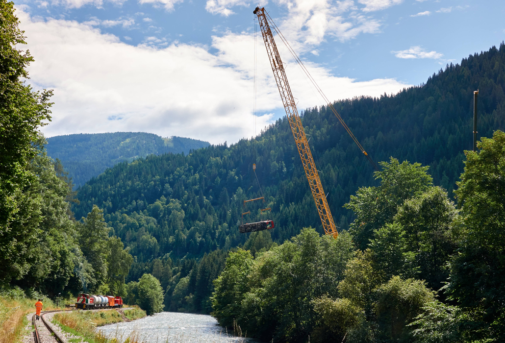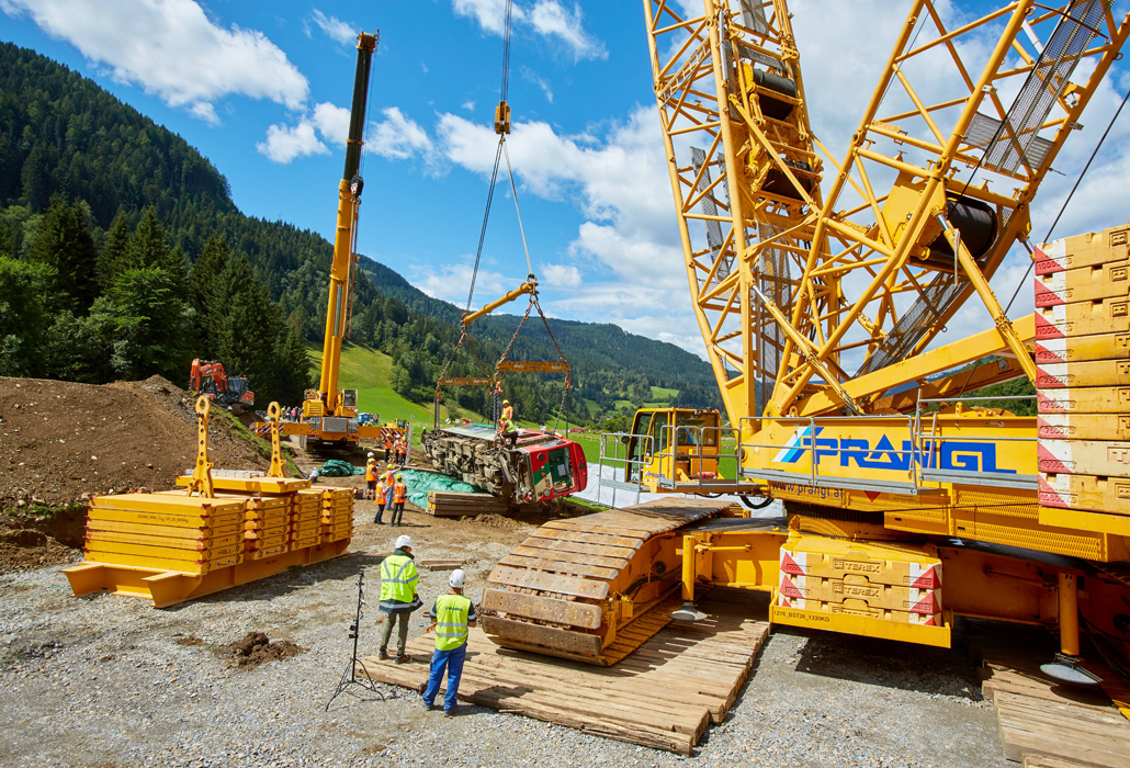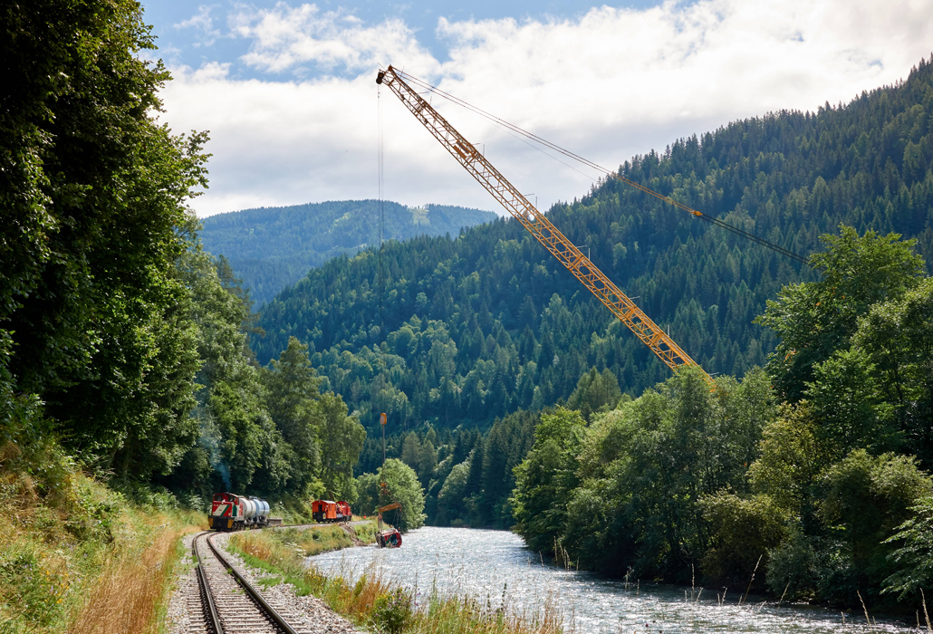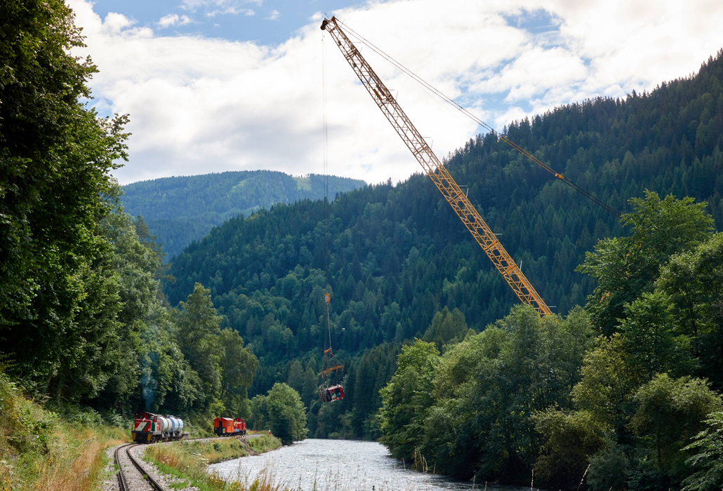 9. julija 2021 je iztiril železniški voz železnice Murtalbahn ter med Štajersko in Salzburgom zgrmel v reko Muro. Zaradi krajevnih danosti je hitro postalo jasno, da običajna uporaba dvigala ne pride v poštev. Za uporabo velikega dvigala je bilo treba opraviti določena pripravljalna dela. Zasnovati je bilo treba 90 metrov dolgo dovozno cesto. Da bi lahko rumenega orjaka varno namestili, je bilo treba nasipati pribl. 600 m2 veliko stojno površino. Vendar to še ni bilo dovolj. Poleg tega je bilo treba izdelati posebna dvižna sredstva.