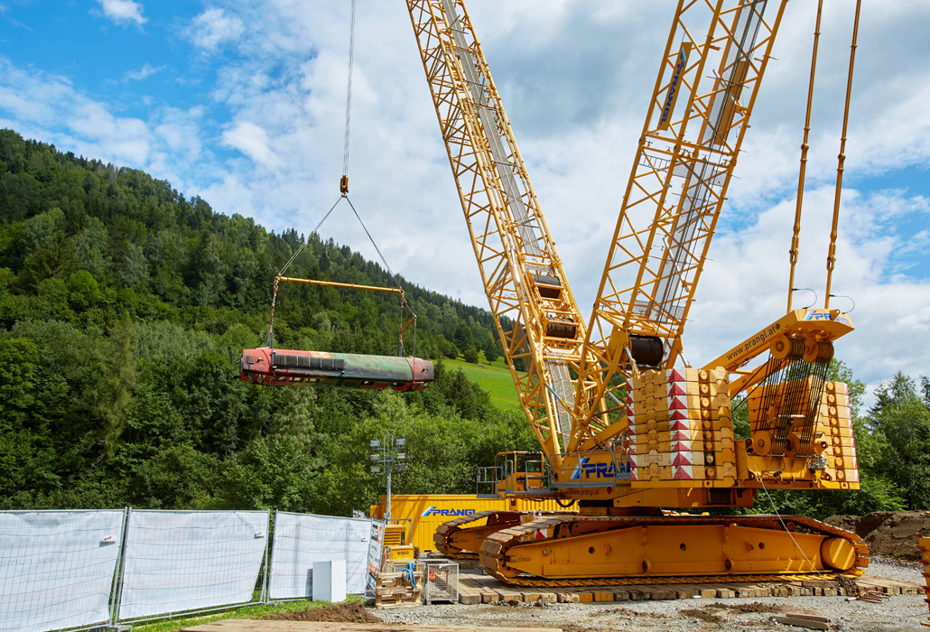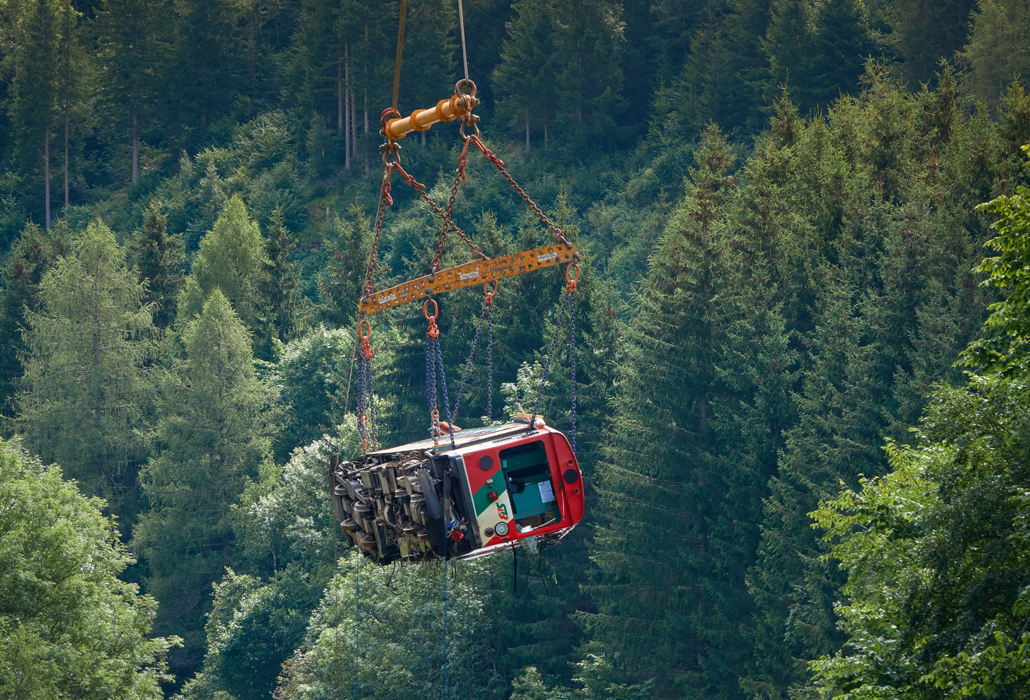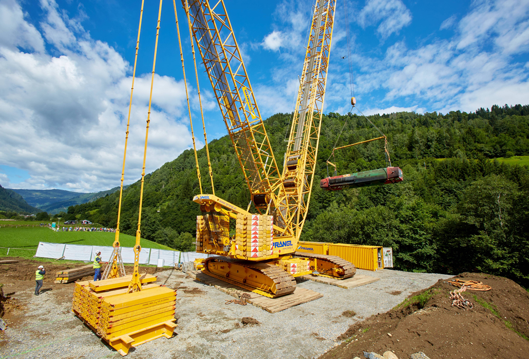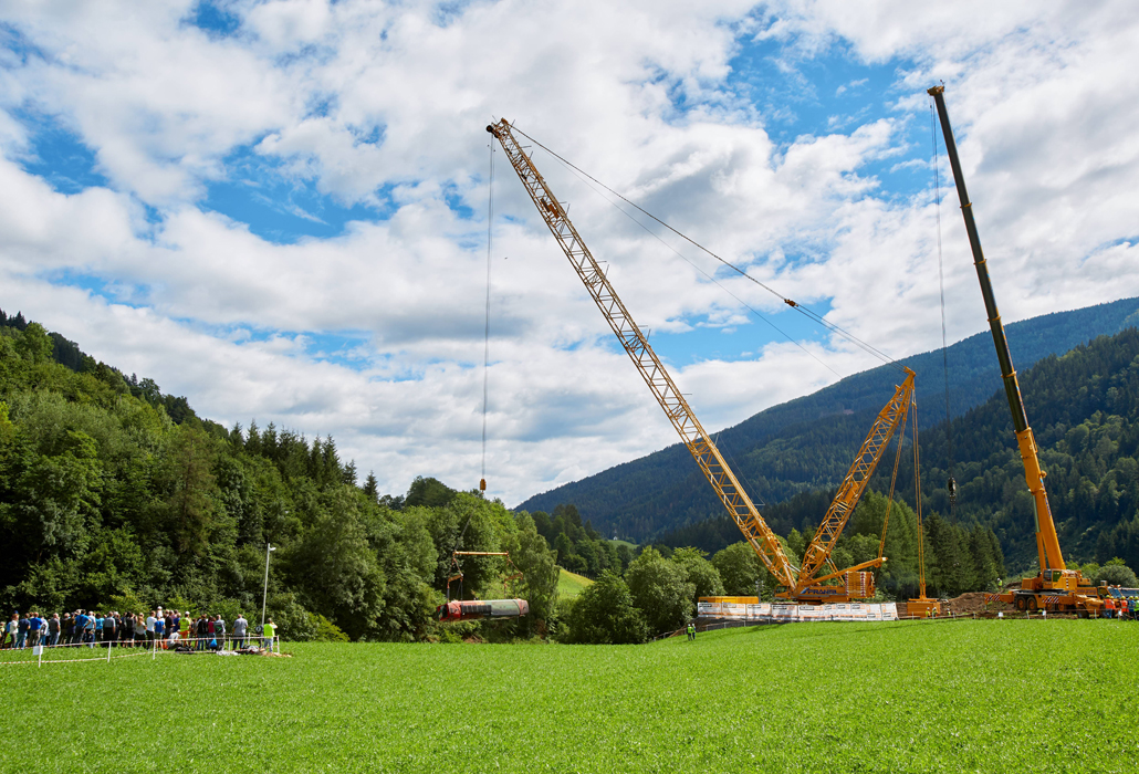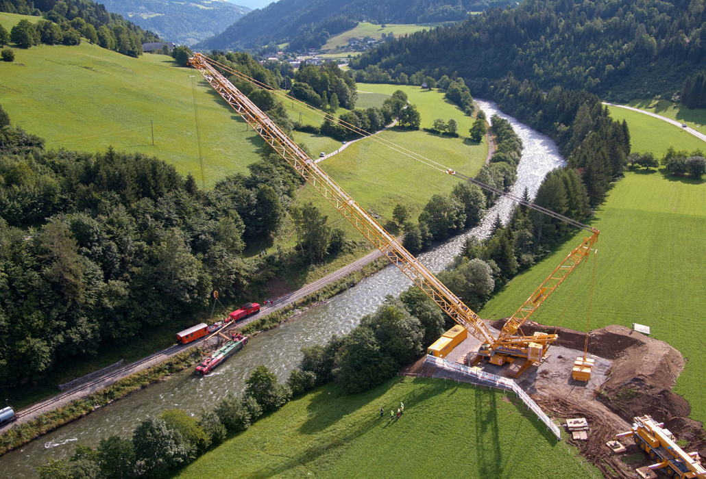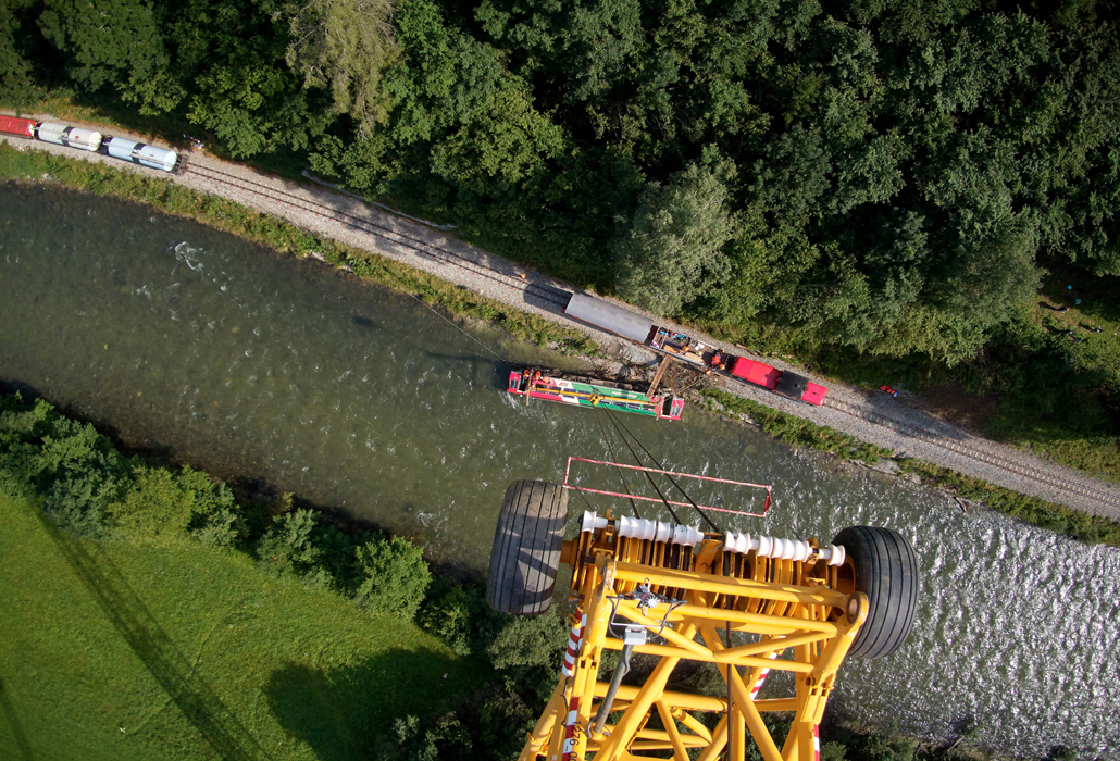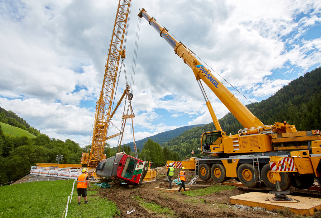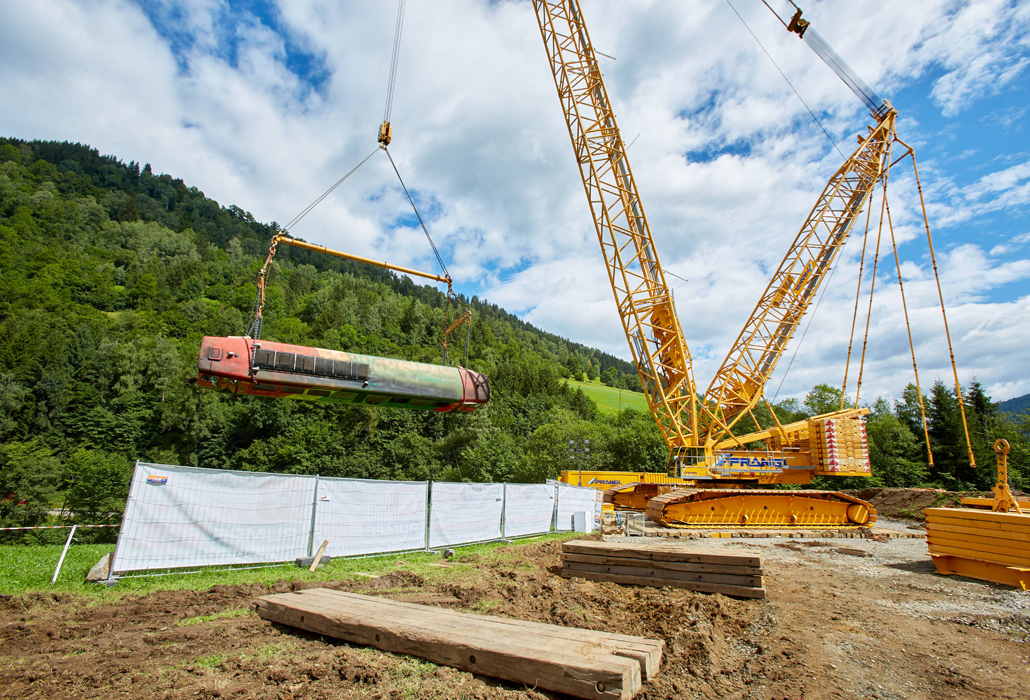 9. julija 2021 je iztiril železniški voz železnice Murtalbahn ter med Štajersko in Salzburgom zgrmel v reko Muro. Zaradi krajevnih danosti je hitro postalo jasno, da običajna uporaba dvigala ne pride v poštev. Za uporabo velikega dvigala je bilo treba opraviti določena pripravljalna dela. Zasnovati je bilo treba 90 metrov dolgo dovozno cesto. Da bi lahko rumenega orjaka varno namestili, je bilo treba nasipati pribl. 600 m2 veliko stojno površino. Vendar to še ni bilo dovolj. Poleg tega je bilo treba izdelati posebna dvižna sredstva.