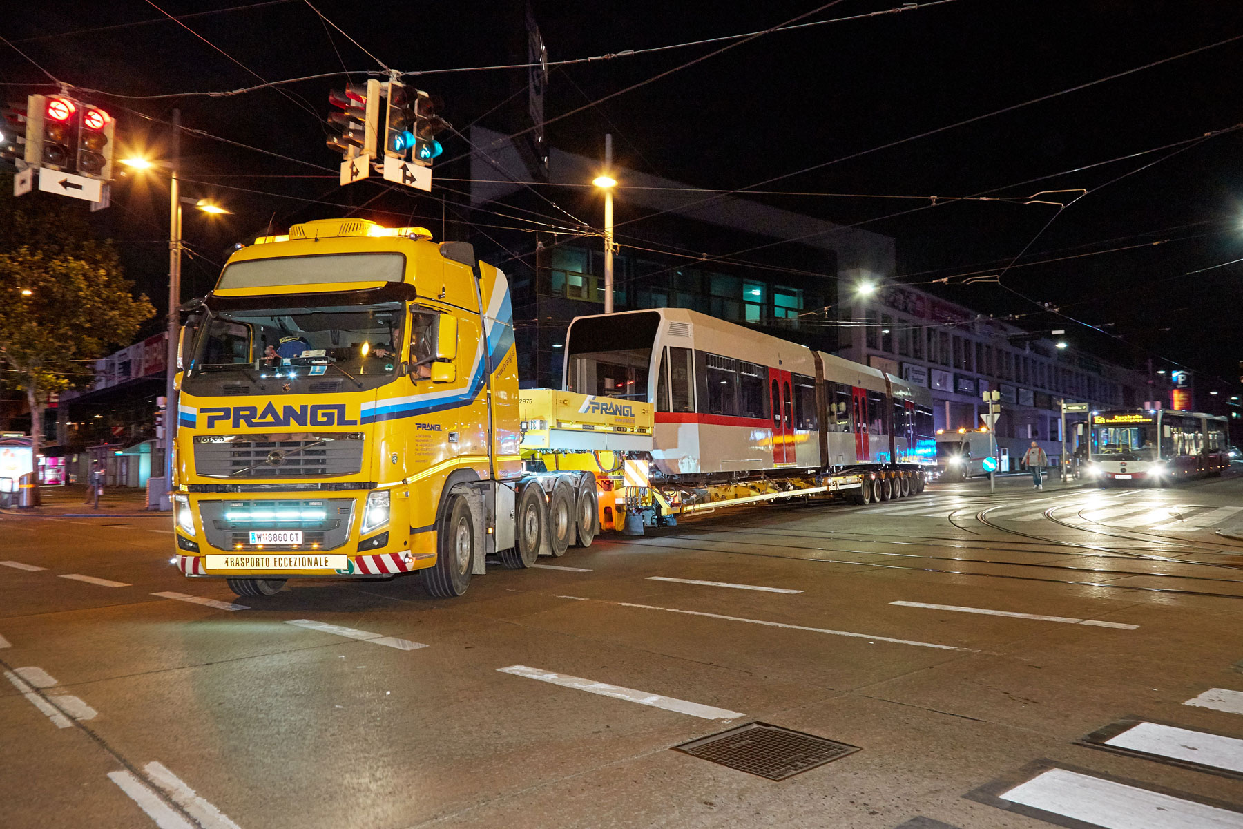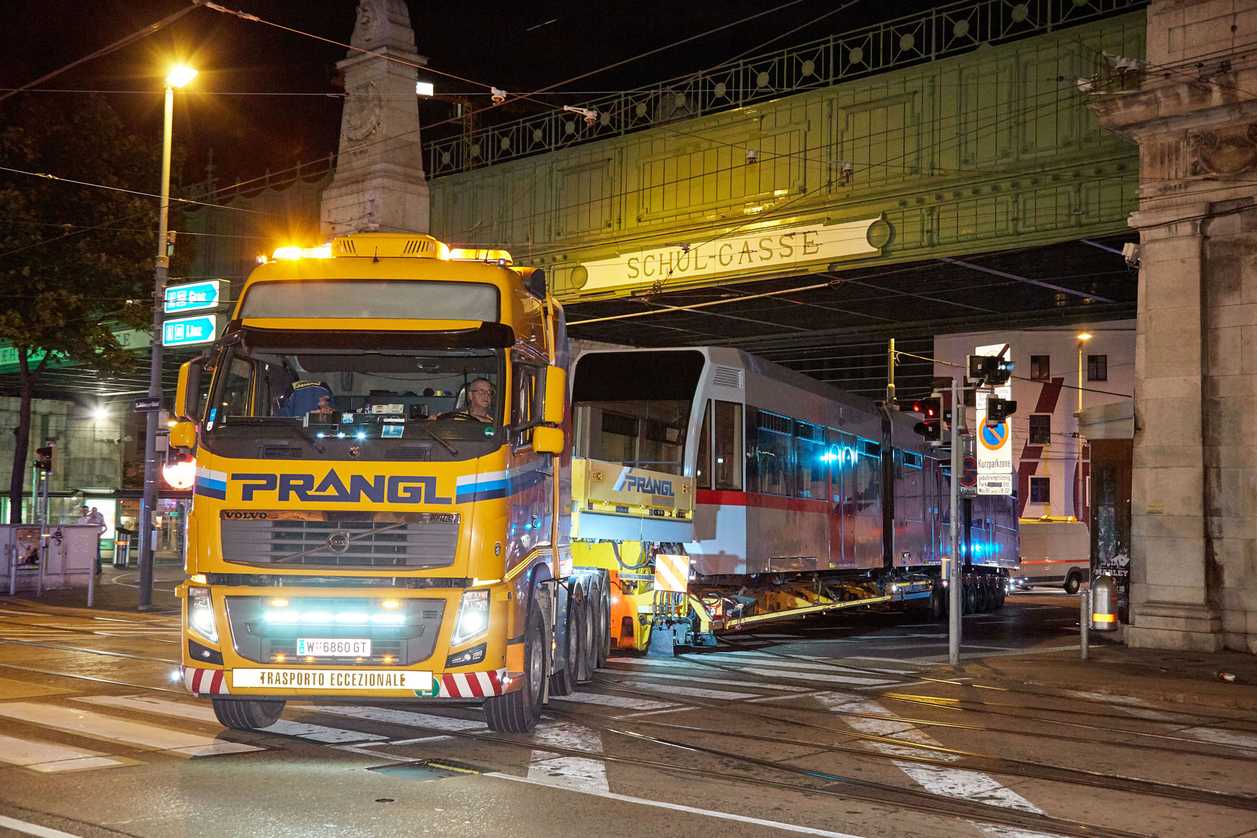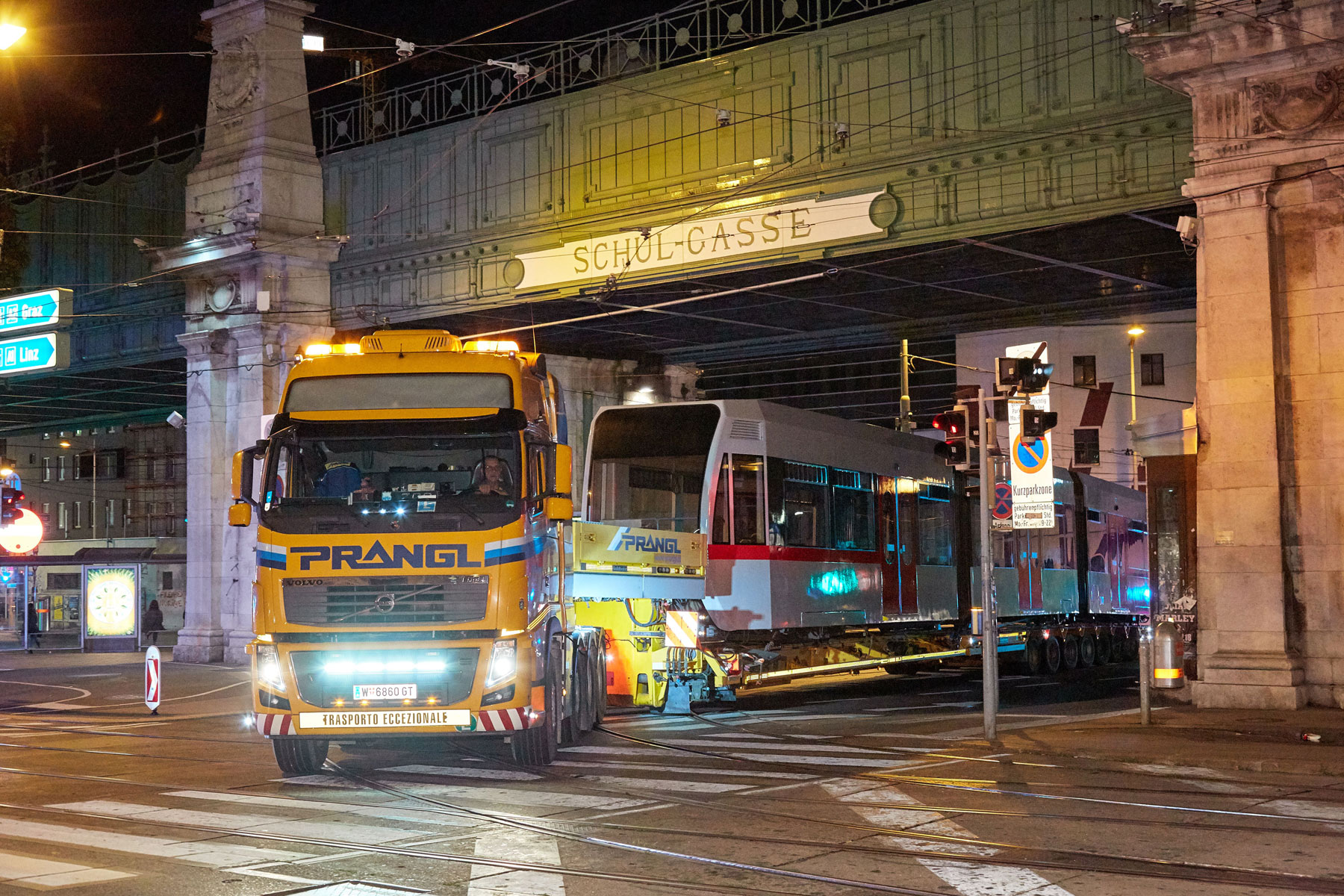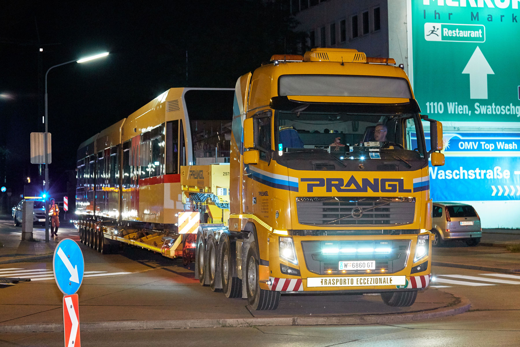 Naš koncept ni prepričal samo zaradi varčnosti. Vendar pa je nazadnje prav varčnost prispevala k temu, da je različica z lakiranjem pri ÖBB prejela sofinanciranje. Pri izdelavi koncepta je predstavljal izziv predvsem omejeni prostor dunajskega cestnega omrežja. Zaradi skupne dolžine 40 m in skupne teže 83 t vsakega vlaka je bilo treba določene cestne odseke, nakladalne in razkladalne postaje, pa tudi dopustne transportne višine natančno preveriti. Na osnovi desetletnih izkušenj s prevozom tirnih vozil so Pranglovi strokovnjaki natančno vedeli, na kaj morajo biti pozorni.