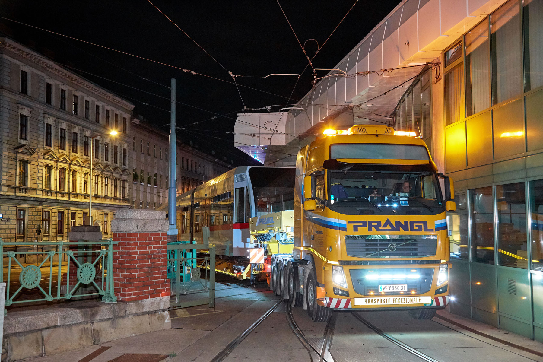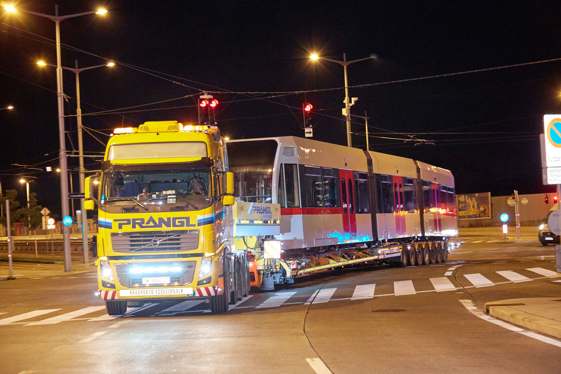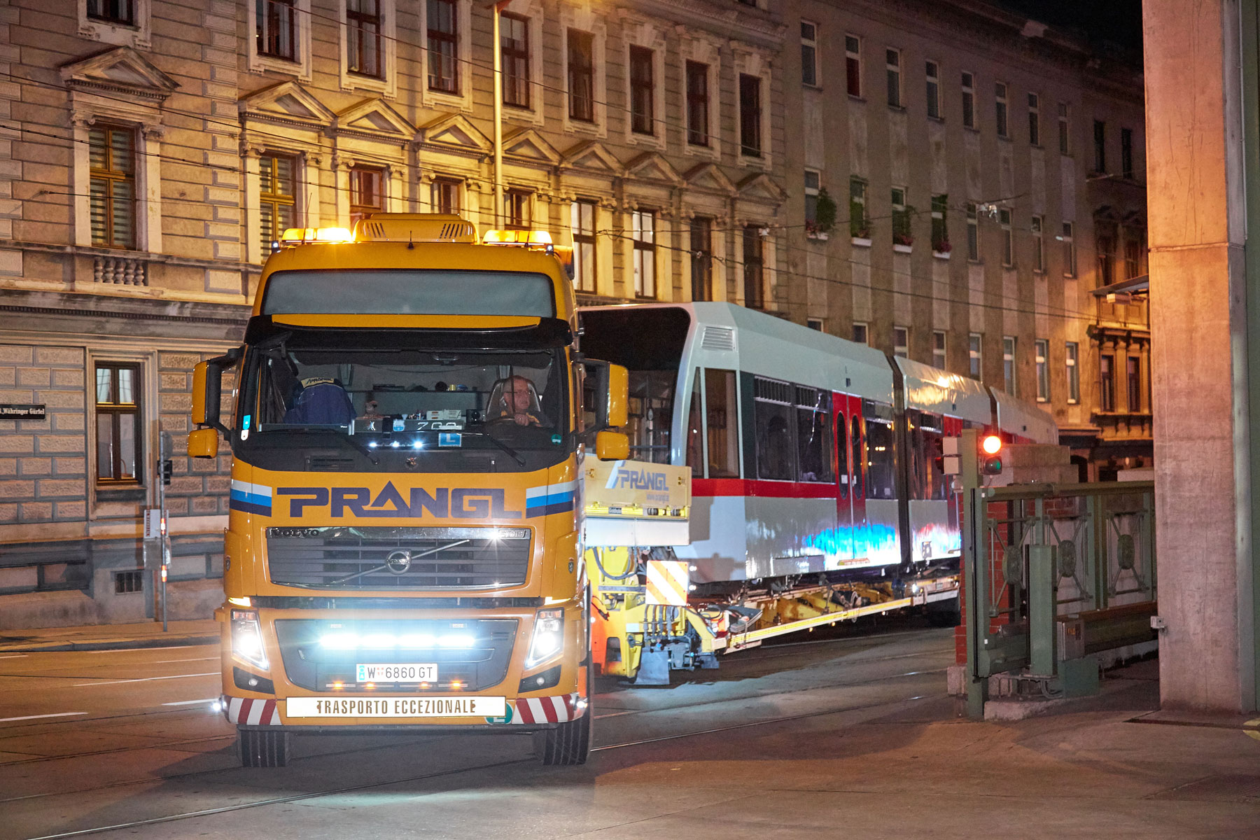 Ko smo opredelili postopke, smo morali pred premierno vožnjo izvesti nekatere prilagoditve, kot so npr. začasna odstranitev prometnih znakov, vzpostavitev začasnih prepovedi ustavljanja in parkiranja itd. Pri prevozih s tako pičlo odmerjenim časom ne sme biti nič prepuščeno naključju. Koncept družbe Prangl pa ima še eno posebnost, t. i. zamenjavo vlak-za-vlak. Takoj, ko odložijo vlak, potreben sanacije, sodelavci naložijo prenovljen vlak in ga odpeljejo nazaj na postajo Michelbeuern. S tem je zagotovljena maksimalna izkoriščenost prevozne poti – v smislu zmanjšanja stroškov.