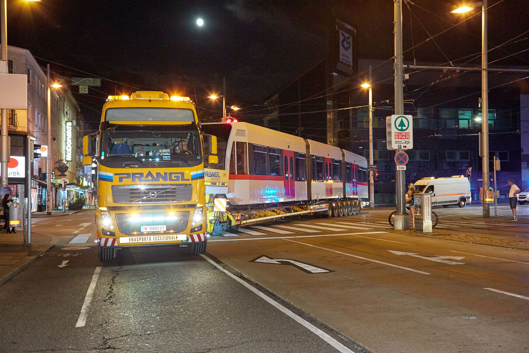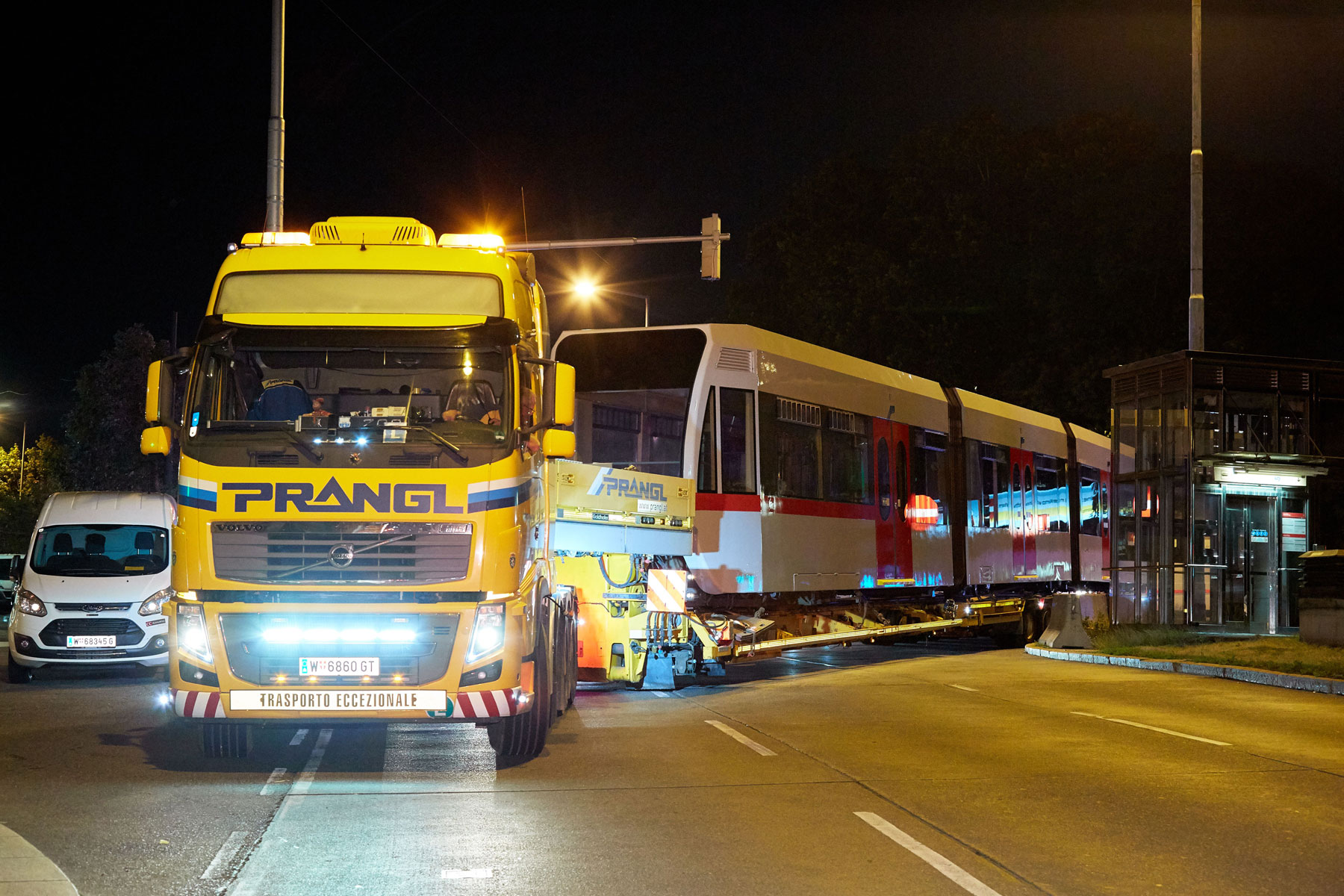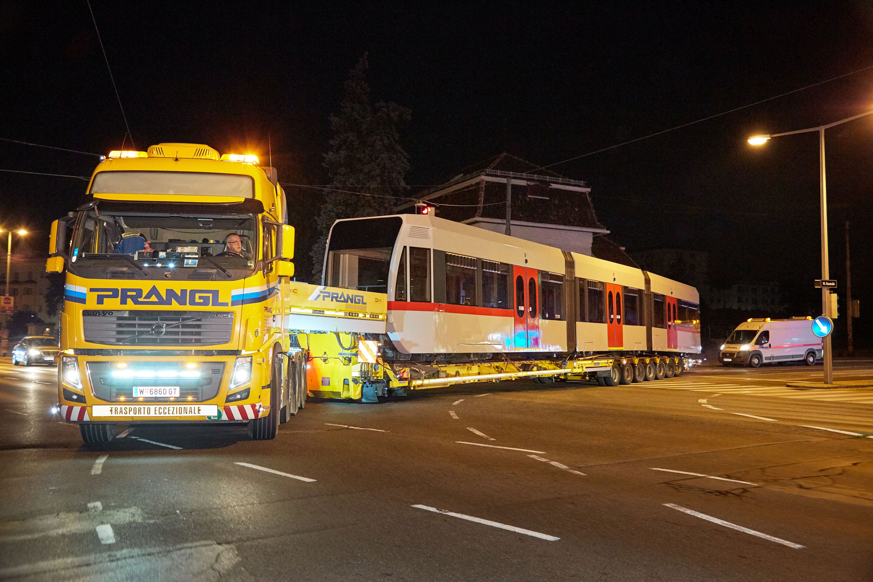 Ko smo opredelili postopke, smo morali pred premierno vožnjo izvesti nekatere prilagoditve, kot so npr. začasna odstranitev prometnih znakov, vzpostavitev začasnih prepovedi ustavljanja in parkiranja itd. Pri prevozih s tako pičlo odmerjenim časom ne sme biti nič prepuščeno naključju. Koncept družbe Prangl pa ima še eno posebnost, t. i. zamenjavo vlak-za-vlak. Takoj, ko odložijo vlak, potreben sanacije, sodelavci naložijo prenovljen vlak in ga odpeljejo nazaj na postajo Michelbeuern. S tem je zagotovljena maksimalna izkoriščenost prevozne poti – v smislu zmanjšanja stroškov.