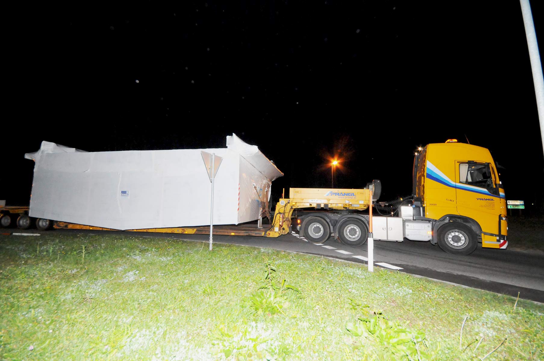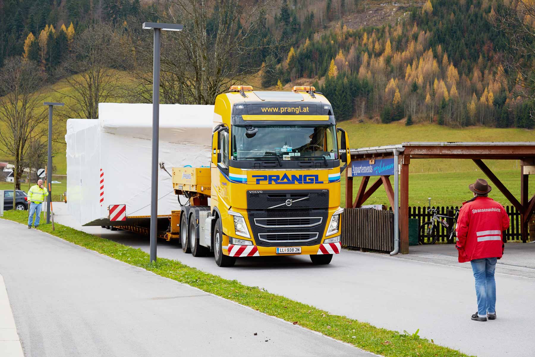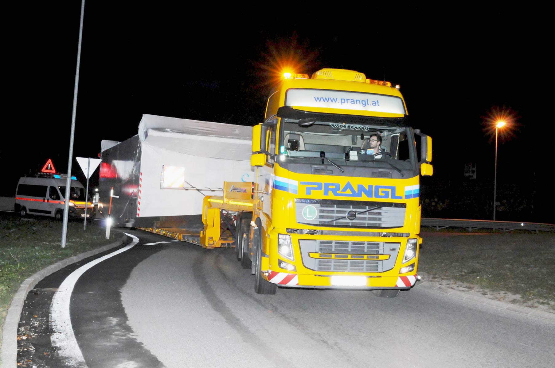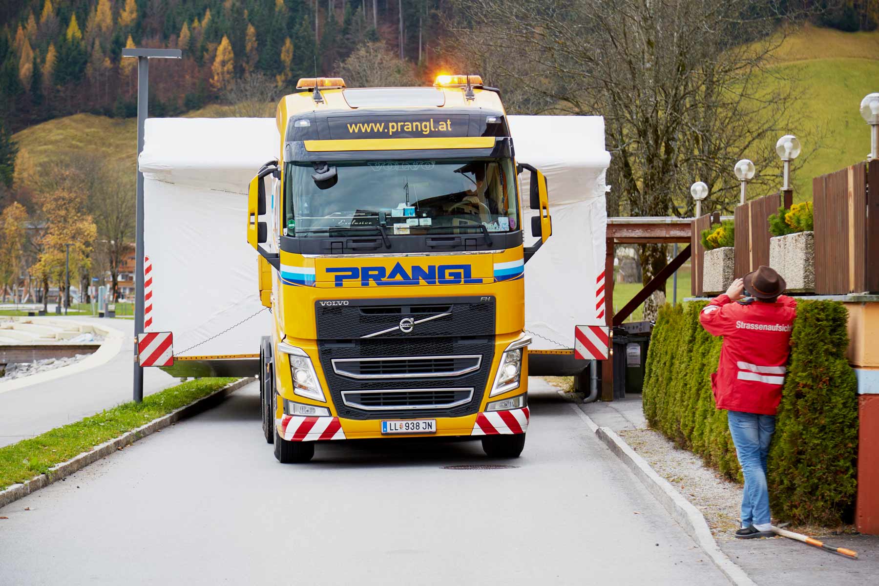 Dimenzije posamičnih segmentov ladje so znašale 12 m dolžine, 5,9 m širine in 3,5 m višine. Posamična teža takega segmenta je dosegla do 22 t. Skupno smo za prevoz uporabili tri 3-osne vlačilce z nizkopodnimi sedlastimi polpriklopniki in en 2-osni vlačilec z nizkopodnim polpriklopnikom. Zaradi dobrega načrtovanja teže smo lahko z le štirimi vozili močno zmanjšali stroške logistike. Prevozna pot od Linza v Pertisau je bila izredno napeta in zahtevna. Naši ustrezno usposobljeni in izkušeni vozniki so morali prevoziti številne gorske ceste s kar nekaj ovirami, zato so morali ves čas vožnje ostati polno osredotočeni.