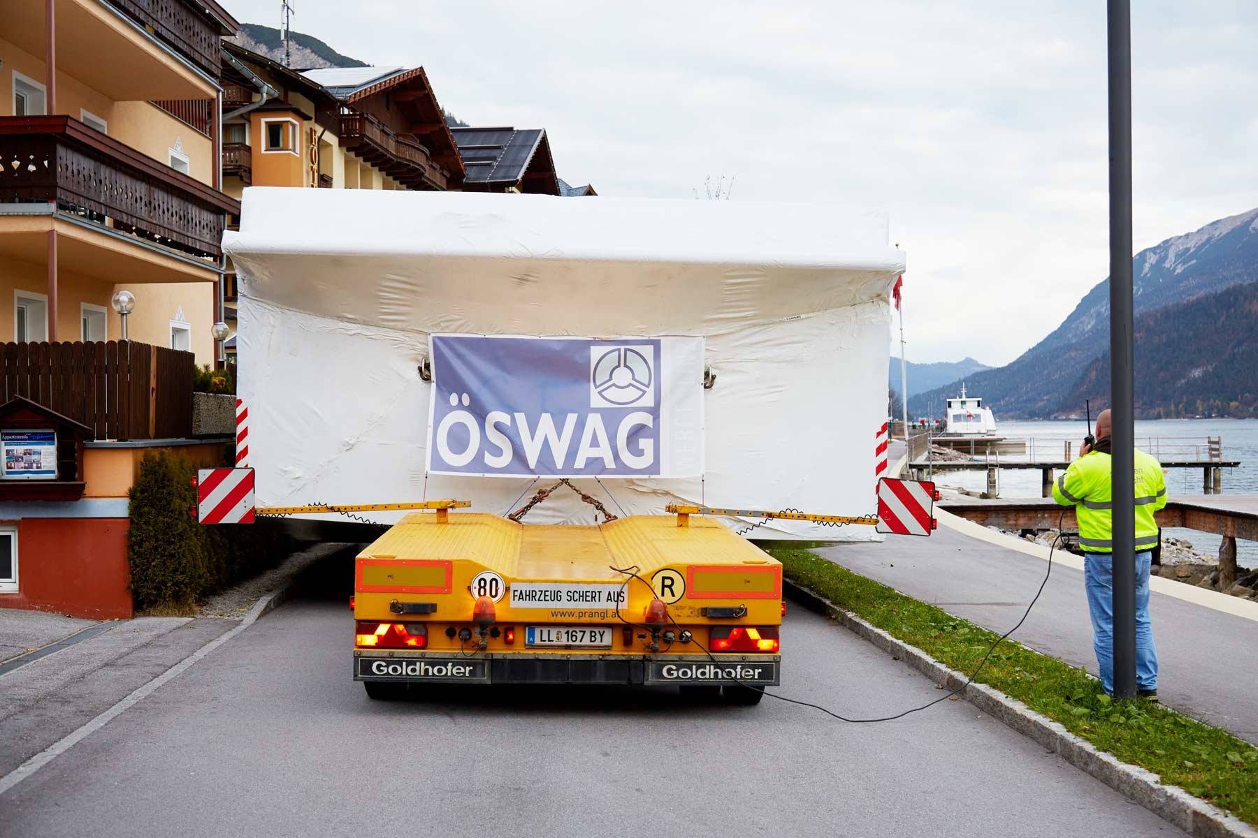 Kot strokovnjak na področju posebnih prevozov, je družba Prangl prvi naslov za številne nenavadne podvige. Tako je bilo tudi v primeru podjetja za plovbo po jezeru Achen, ki je svojo floto povečalo za nadaljnjo izletniško ladjo. Za uspešen prevoz velikanskega objekta na cilj so bili potrebni dolgoletne izkušnje in dobro premišljen koncept.
