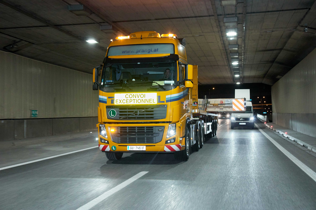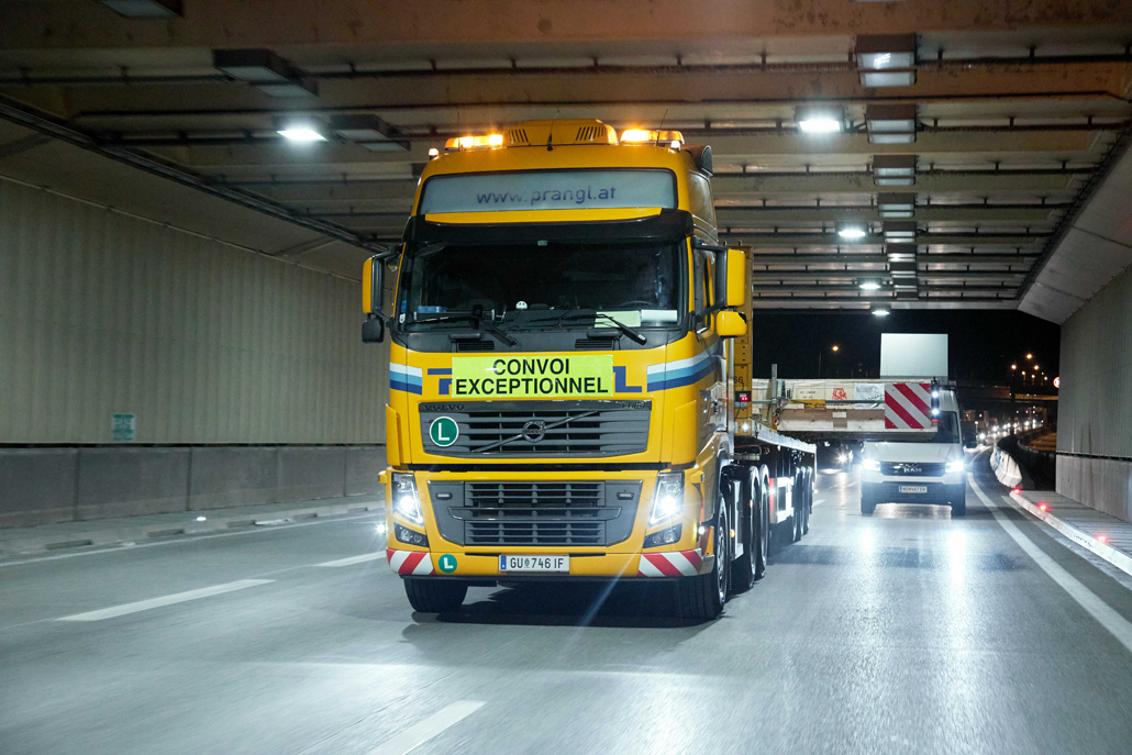 To ne bi bil Prangl, če ne bi uporabili najboljšega in hkrati najugodnejšega koncepta za kupca: Kljub vsem izzivom je ekipa strokovnjakov na podlagi zelo podrobnega načrtovanja prevoza in natančnega raziskovanja poti pripravila izvedljivo cestno rešitev za industrijski ventilator (ki meri 6,13 x 6,13 x 0,40 metra in tehta 4.000 kilogramov). Prav tako je bilo treba določiti natančen časovni razpored, da ne bi prišlo do zastoja preostalega cestnega prometa. Zaradi širine prevoza sta bila za izvedbo potrebna več kot dva vozna pasova.
