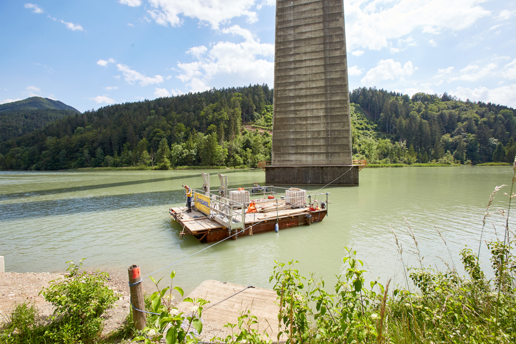 Kar se je pred sedmimi leti začelo kot raziskava, ki jo je podprl Prangl, bo Prangl zdaj tudi dokončal: na Jauntalovem mostu se prenavljajo stebri. Položaj stebrov mostu v Dravi je zahteval izjemen koncept, da so lahko dela izvedena.