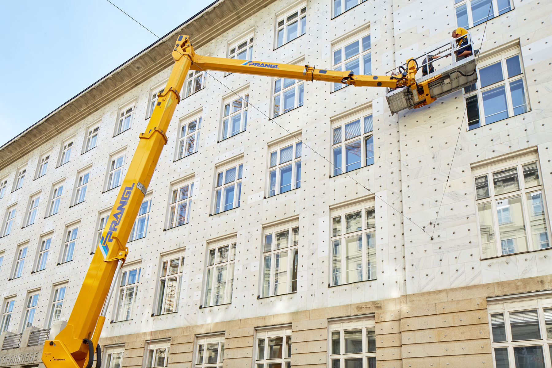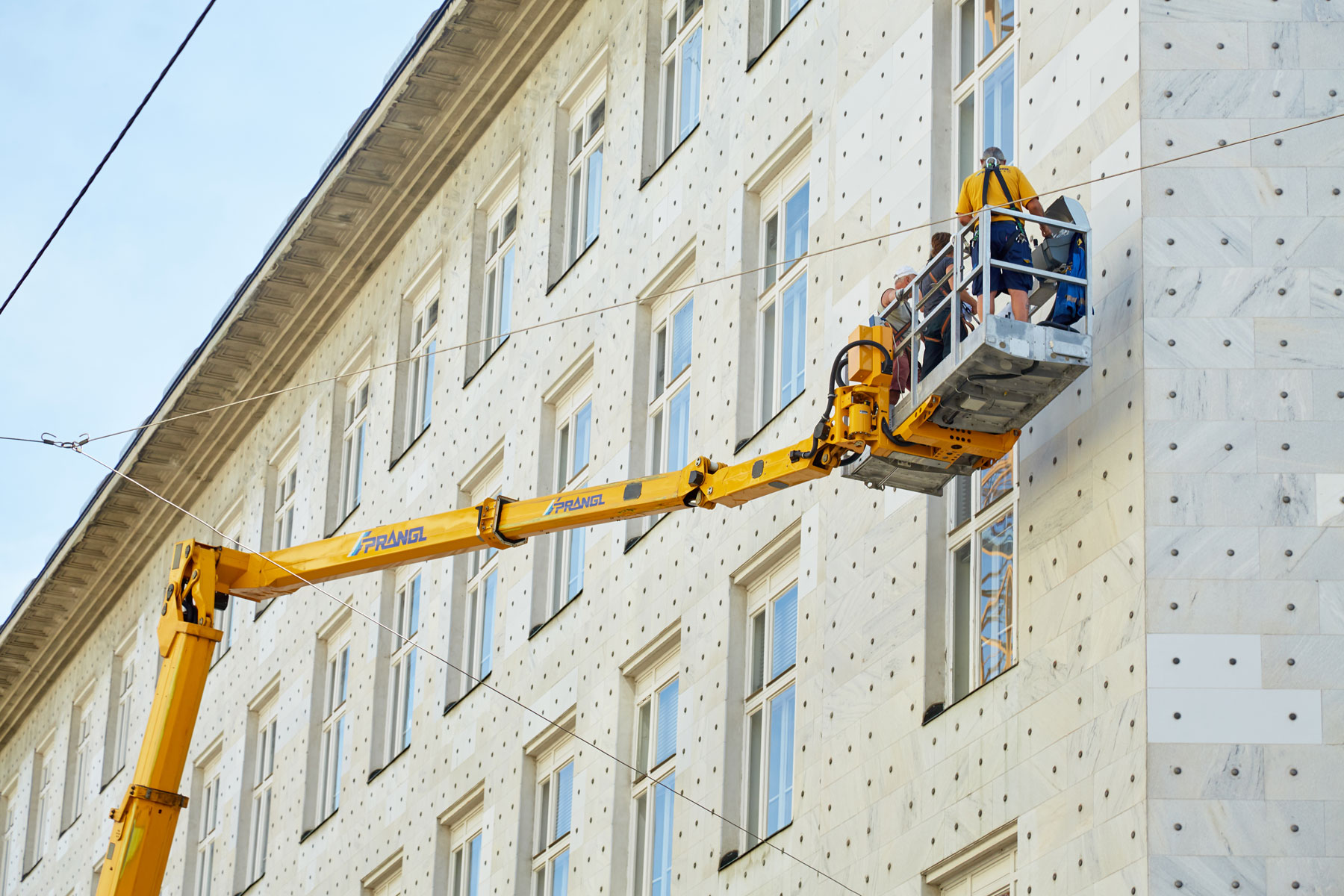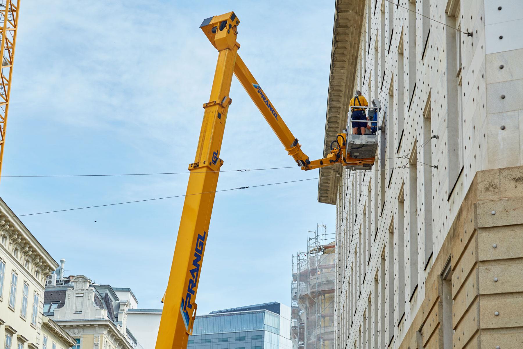 Čeprav nam je z dobro izbrano opremo uspelo skrajšati čas dela, smo morali večkrat odstraniti in ponovno namestiti prometne znake in zapore. Tudi za to je ekipa družbe Prangl odlično poskrbela in enkrat več dokazala, da smo zanesljiv partner v vseh pogledih. Prangl lahko pomaga tudi, kadar zgodovinske stavbe potrebujejo nego. Navsezadnje je bila rumena naprava 1,5 meseca v uporabi za presojo fasade zgodovinskega pomena.