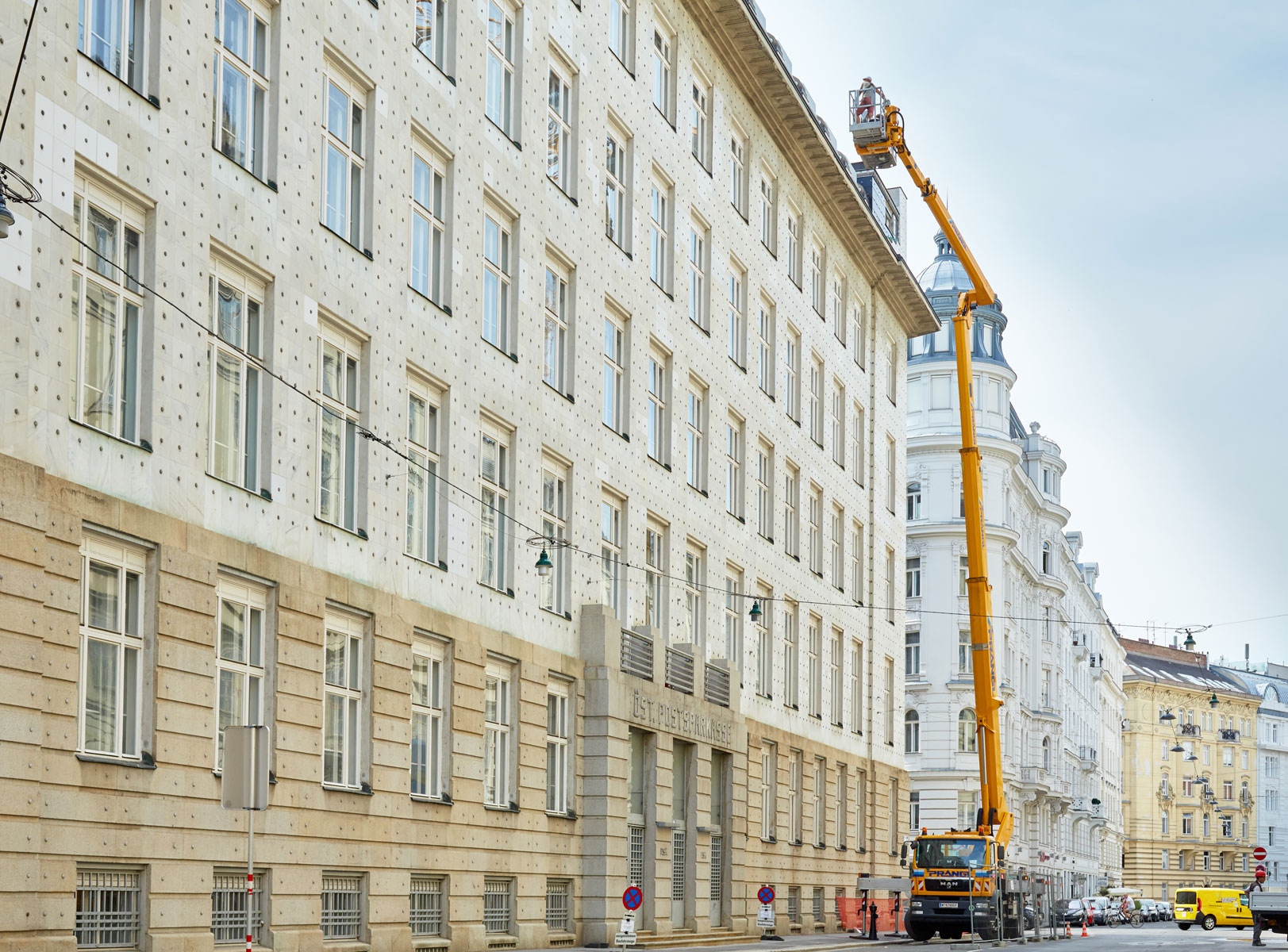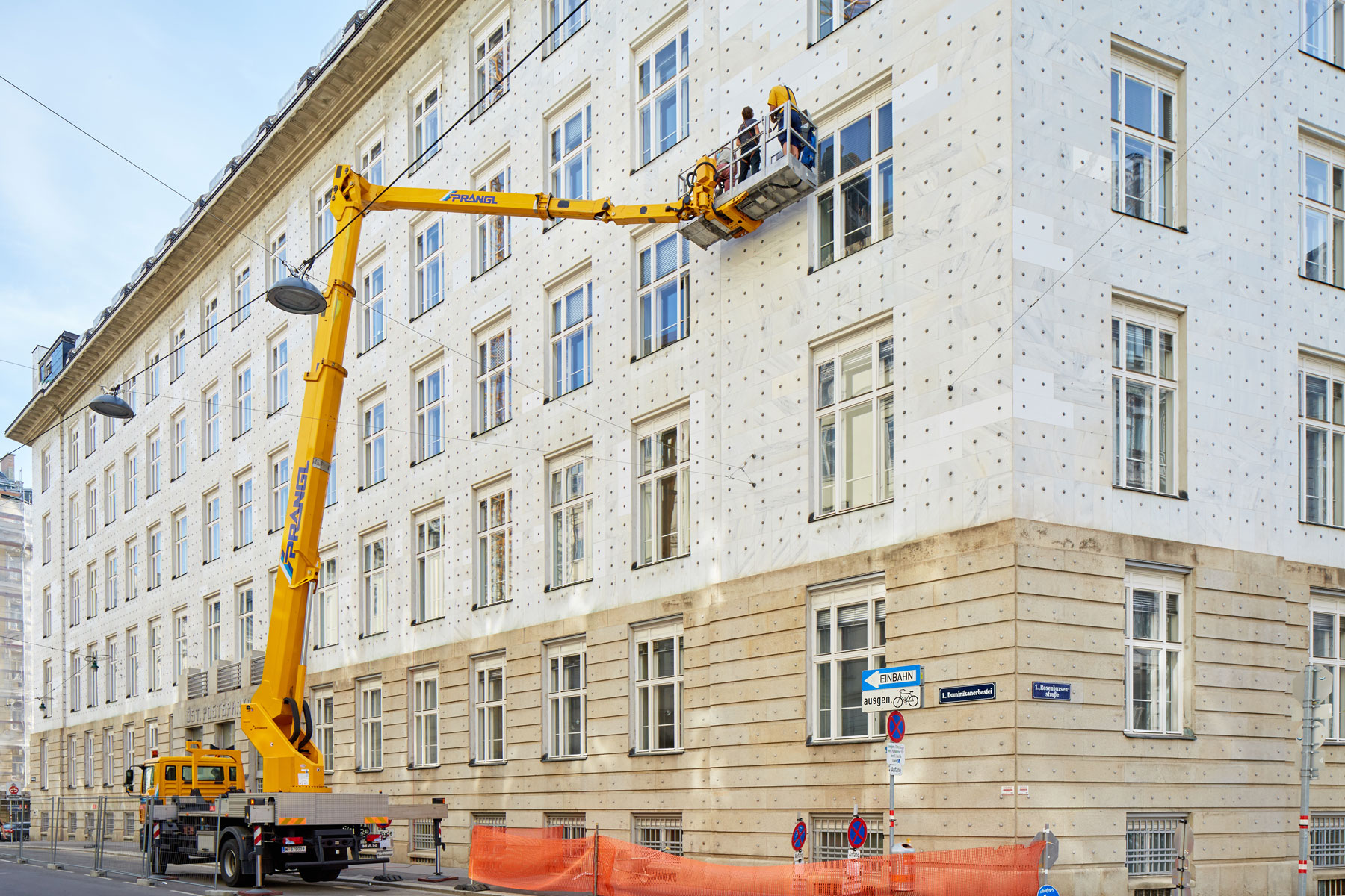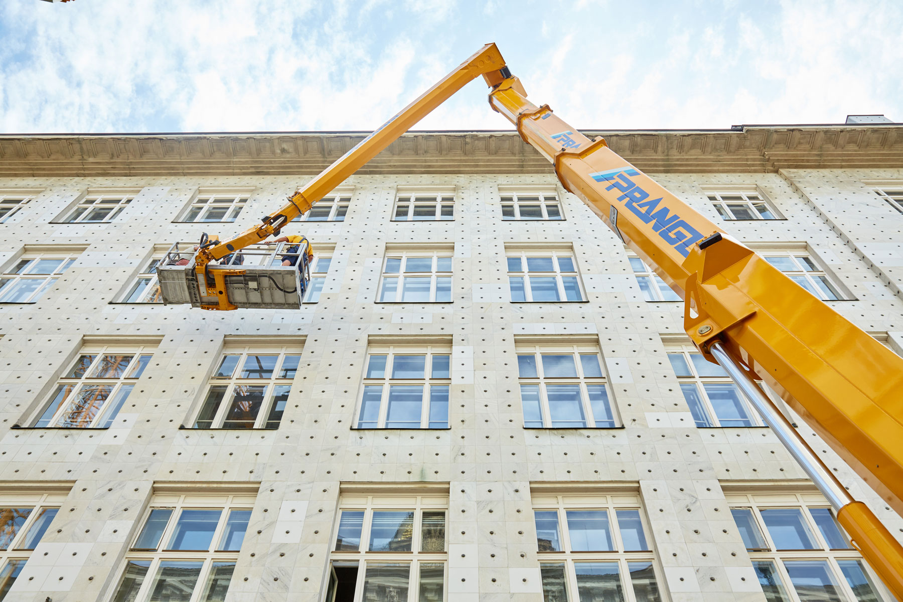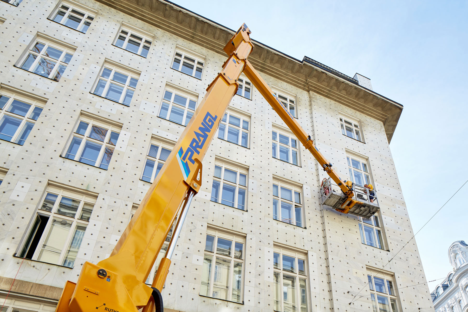 Čeprav nam je z dobro izbrano opremo uspelo skrajšati čas dela, smo morali večkrat odstraniti in ponovno namestiti prometne znake in zapore. Tudi za to je ekipa družbe Prangl odlično poskrbela in enkrat več dokazala, da smo zanesljiv partner v vseh pogledih. Prangl lahko pomaga tudi, kadar zgodovinske stavbe potrebujejo nego. Navsezadnje je bila rumena naprava 1,5 meseca v uporabi za presojo fasade zgodovinskega pomena.