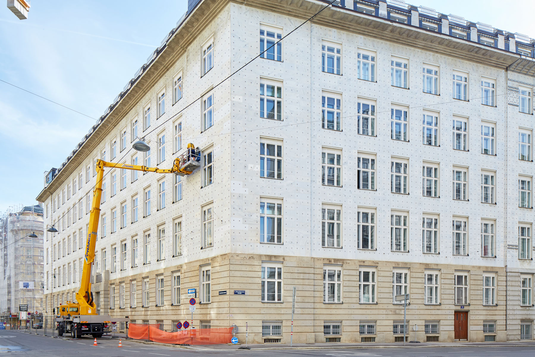 Stavba Postsparkasse arhitekta Otta Wagnerja velja kot ključno delo evropske moderne in dunajskega »Jugendstila«. Njena gradnja je potekala med leti 1904 in 1912, z njo pa je ustvaril svoje najsodobnejše in najpomembnejše delo. Treba je bilo torej pregledati in oceniti fasado iz marmornih plošč in z aluminijem prevlečenih, železnih zatičev (tehnična nujnost in simbol varne hrambe denarja).