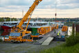 Po prispetju na Nizozemsko je bila oprema preložena na križarski Ro-Ro trajekt. Teleskopska dvigala so bila po kopnem prepeljana z ene ladje na drugo. Vso dodatno opremo so na trajekt vlekli z mobilnimi ploščadmi. Nazadnje je imel trajekt skupno težo 12.480 t, skupno dolžino 153 m in širino 21,6 m. Zaradi optimizacije prevozne poti smo zaprosili za dovoljenje za posebno vožnjo do pristanišča Sundsvall, in ga tudi dobili. Preostalo pot do mesta uporabe (pribl. 170 km) so mobilna dvigala opravila po cesti.