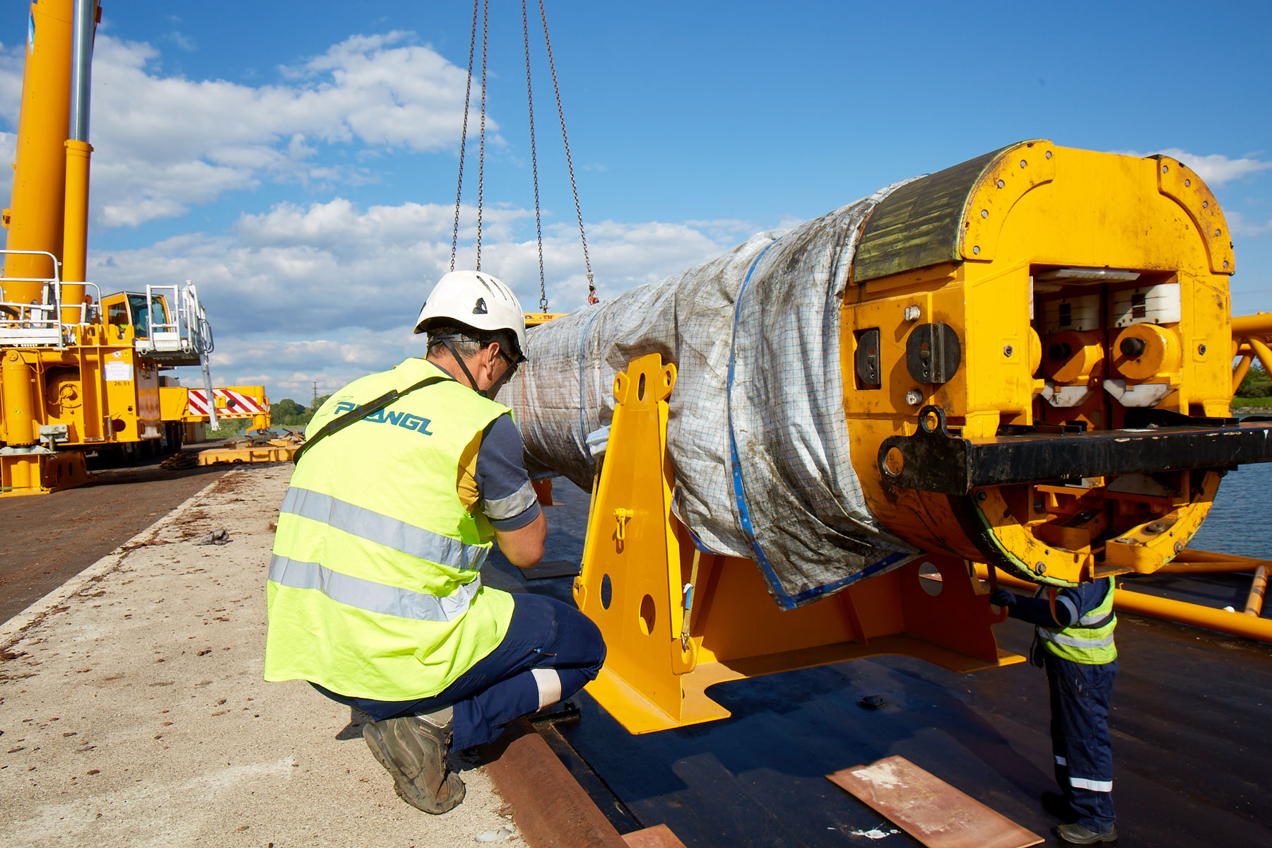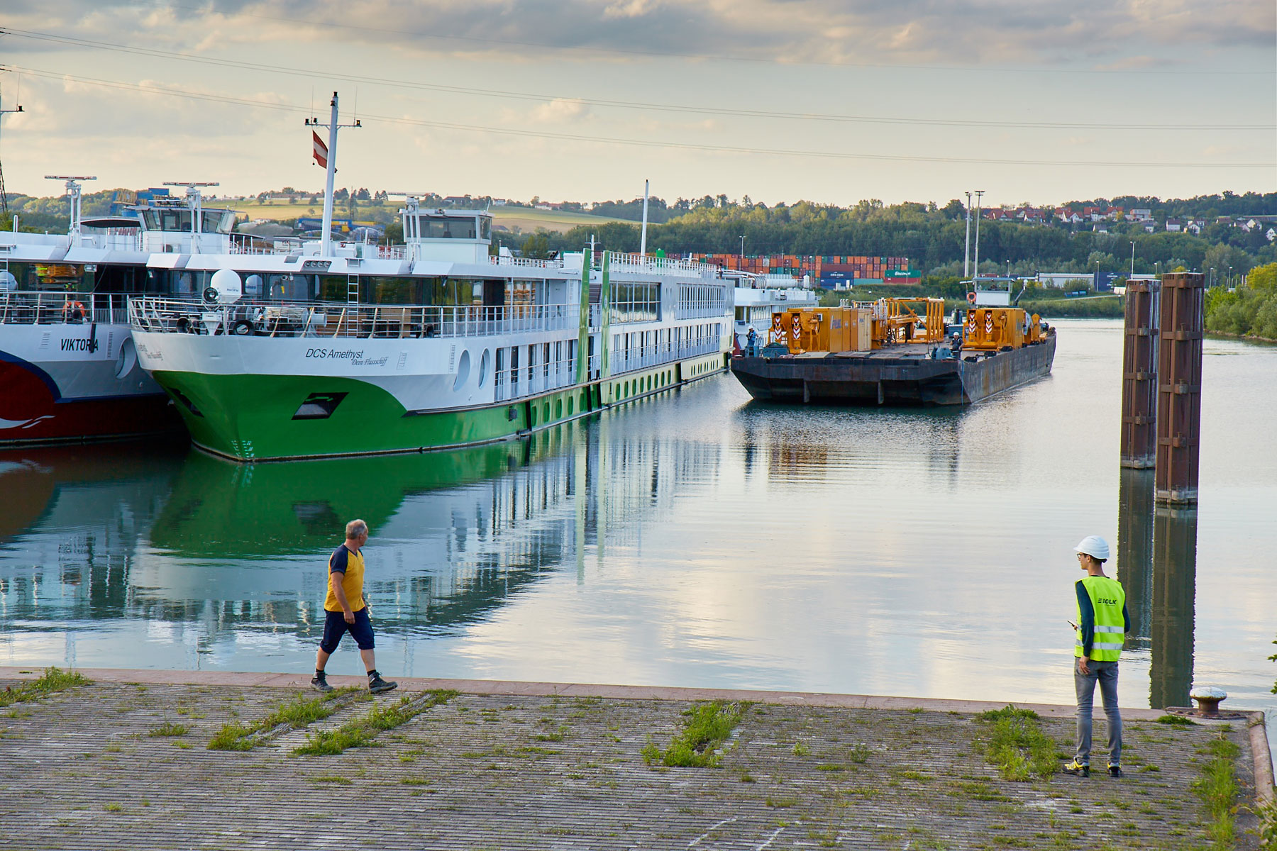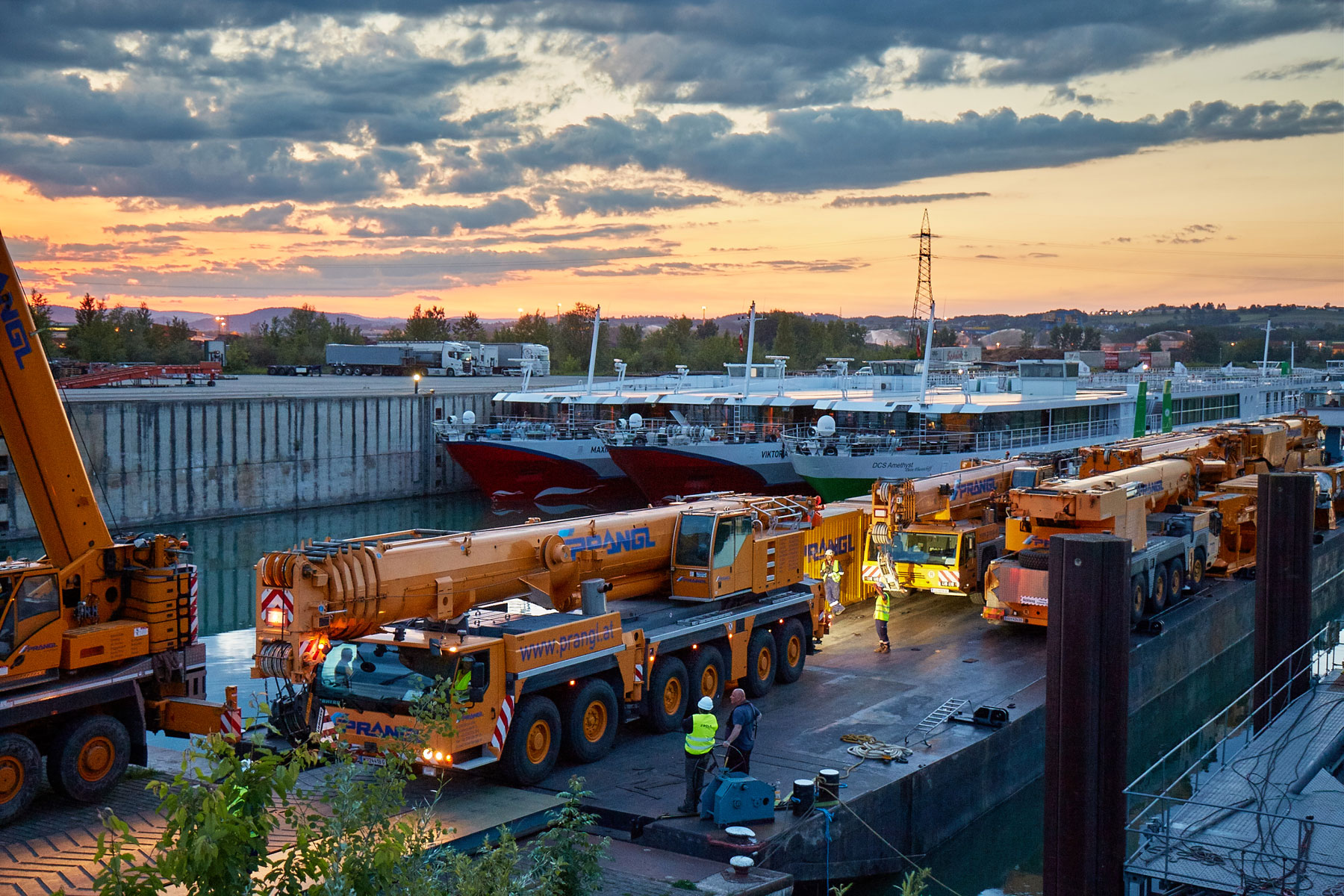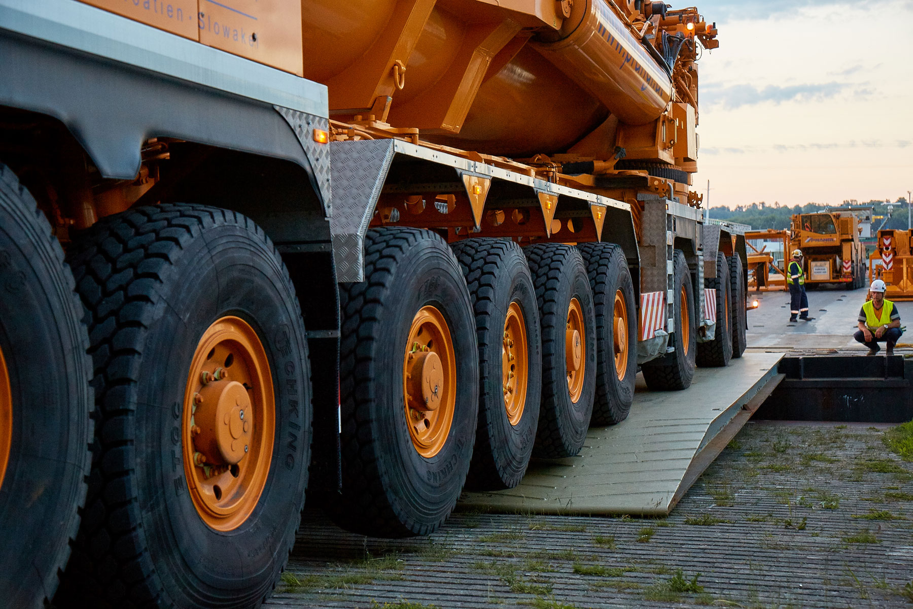Dostava tega paketa dvigal je potekala večnačinovno oz. multimodalno, z ladjo in po cesti. Najprej je tovor potoval po reki od Ennshafna do Terneuzena, na Nizozemskem. Potisni sestav s transportno Ro-Ro ladjo je bil 80 m dolg in 11,5 m širok. V Ennshafenu je pristala Ro-Ro ladja s premično rampo, preko katere so bila nanjo prepeljana mobilna dvigala. Dvig ustrezne opreme na ladjo je potekal s teleskopskim dvigalom nosilnosti 250 t.