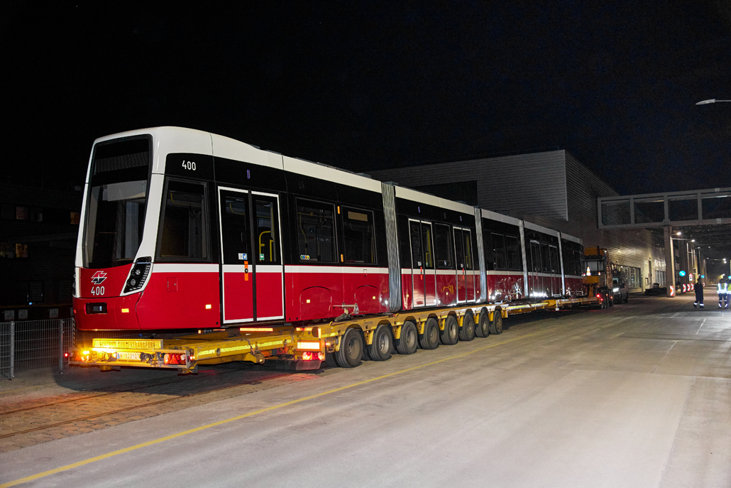 Novi tramvaji tipa "Flexity" so že dlje časa v uporabi na Dunaju in potnikom nudijo več udobja. Zdaj je bilo treba dostaviti že 100-ti tramvaj iz tovarne v 22. dunajski mestni četrti do podjetja Wiener Linien. Prangl je prepeljal jubilejno garnituro s severa na jug mesta – v osrednjo delavnico v 11. okrožju.