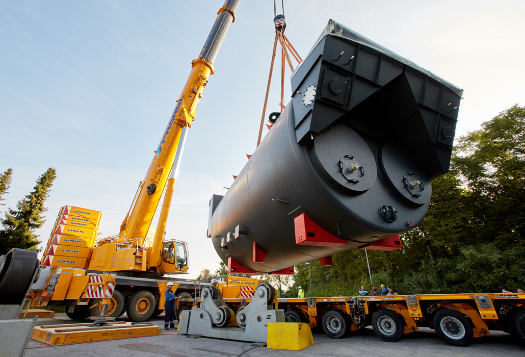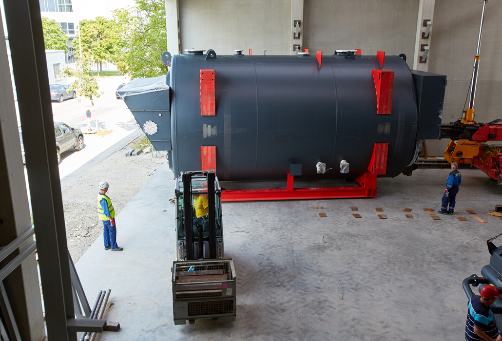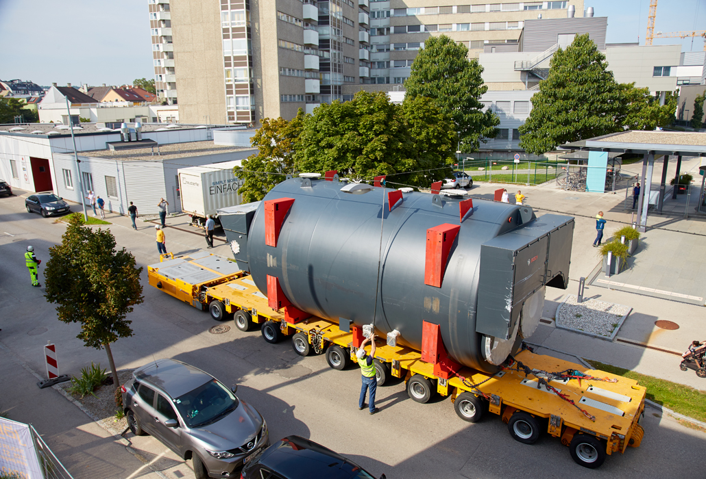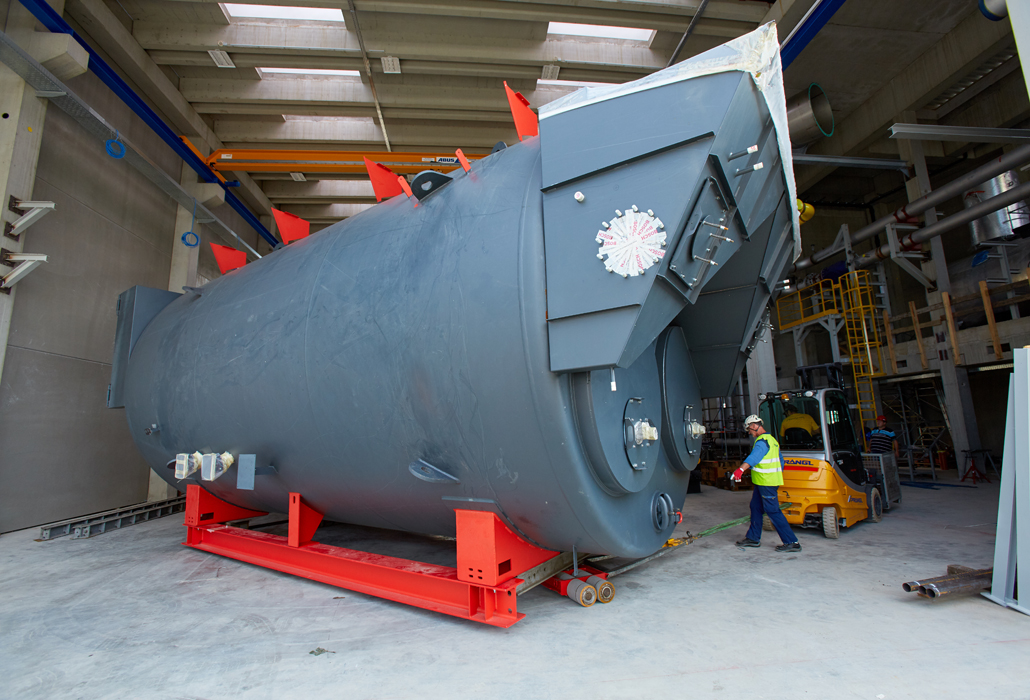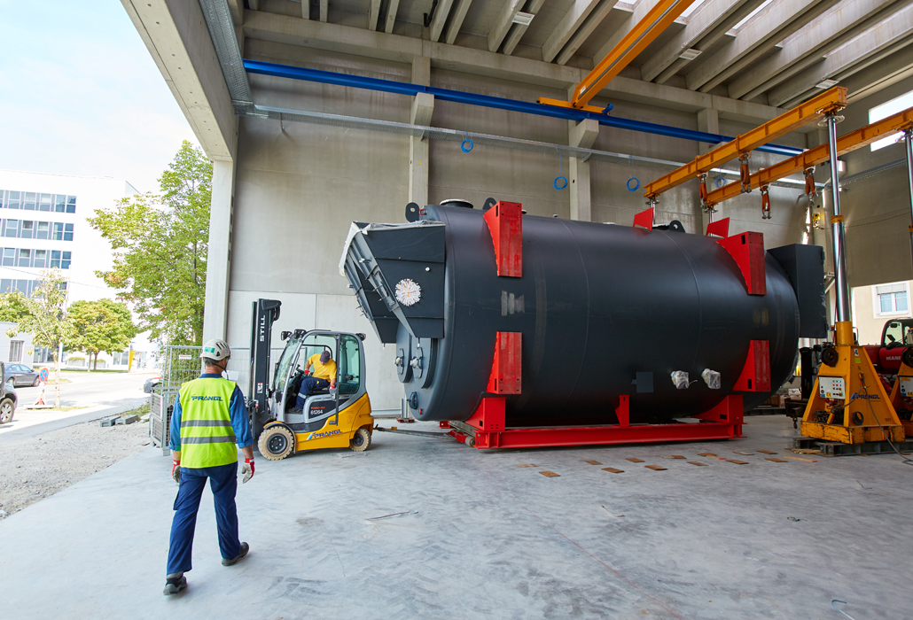 Novi toplovodni kotel in oba parna kotla za nasičeno paro skupaj omogočajo pribl. 60.000 kW grelne moči. Ti kotli so zamenjali stare visokotlačne parne kotle, ki so delno delovali že skoraj 50 let. Na začetku je bilo treba kotle posamezno dvigniti na posebno opremo podjetja Prangl. S teleskopskim dvigalom nosilnosti 350 ton so bili trije zabojniki posamezno dvignjeni na samovozni transportni modul za prevoz težkega tovora. Z maso 90,6 ton je toplovodni kotel predstavljal najtežji del.