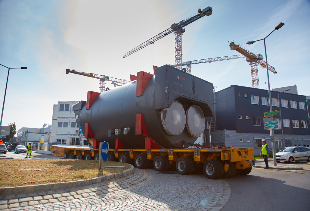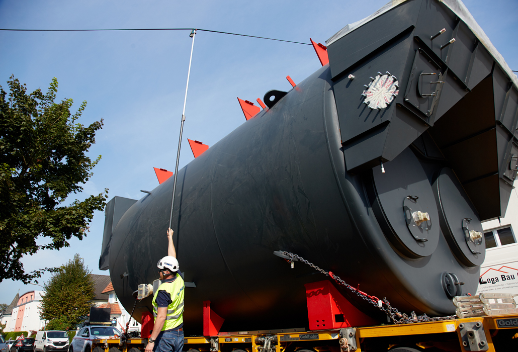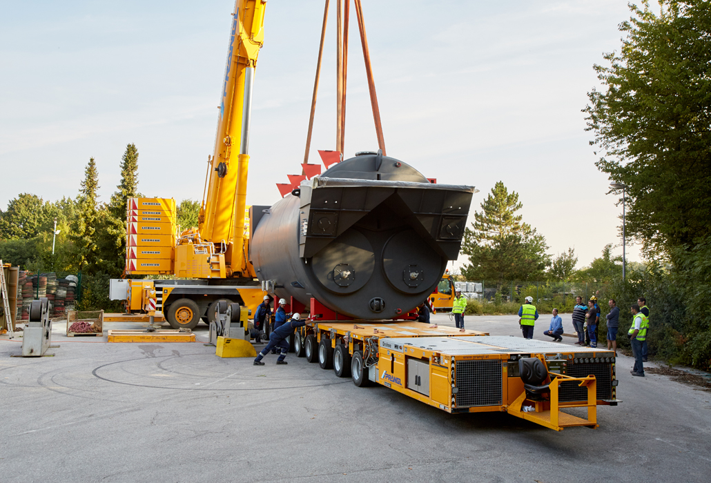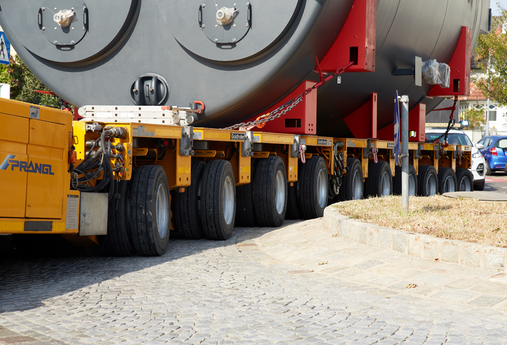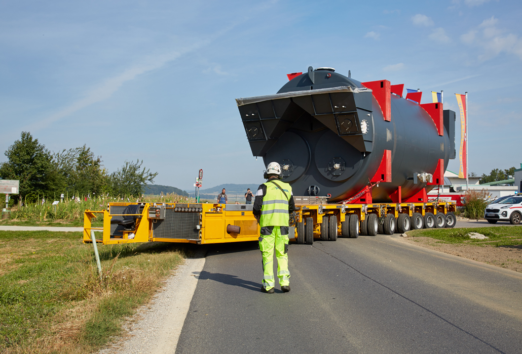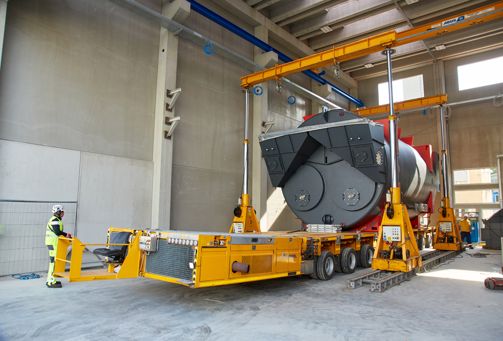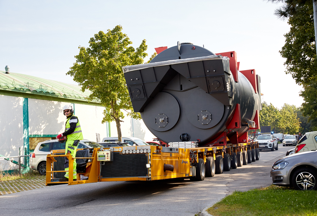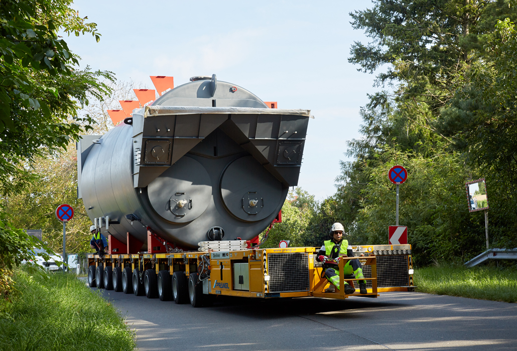 Pogosto ne določa prevozna pot vozila za prevoz težkega tovora, temveč situacija na cilju. Ker je bil dovoz v Toplarni Nord preozek, ni bilo mogoče delati z "običajnim" modulom za prevoz težkega tovora. Z 10-osnim samovoznim modulom za prevoz težkega tovora je bilo mogoče tudi to ozko mesto brez težav prevoziti. Z višino 4,6 metra je toplovodni kotel znova predstavljal največji izziv – predvsem ko je šlo za prevoz pod električnimi napeljavami. Z natovorjenim toplovodnim kotlom je imel samovozni transportni modul maso pribl. 118 ton.