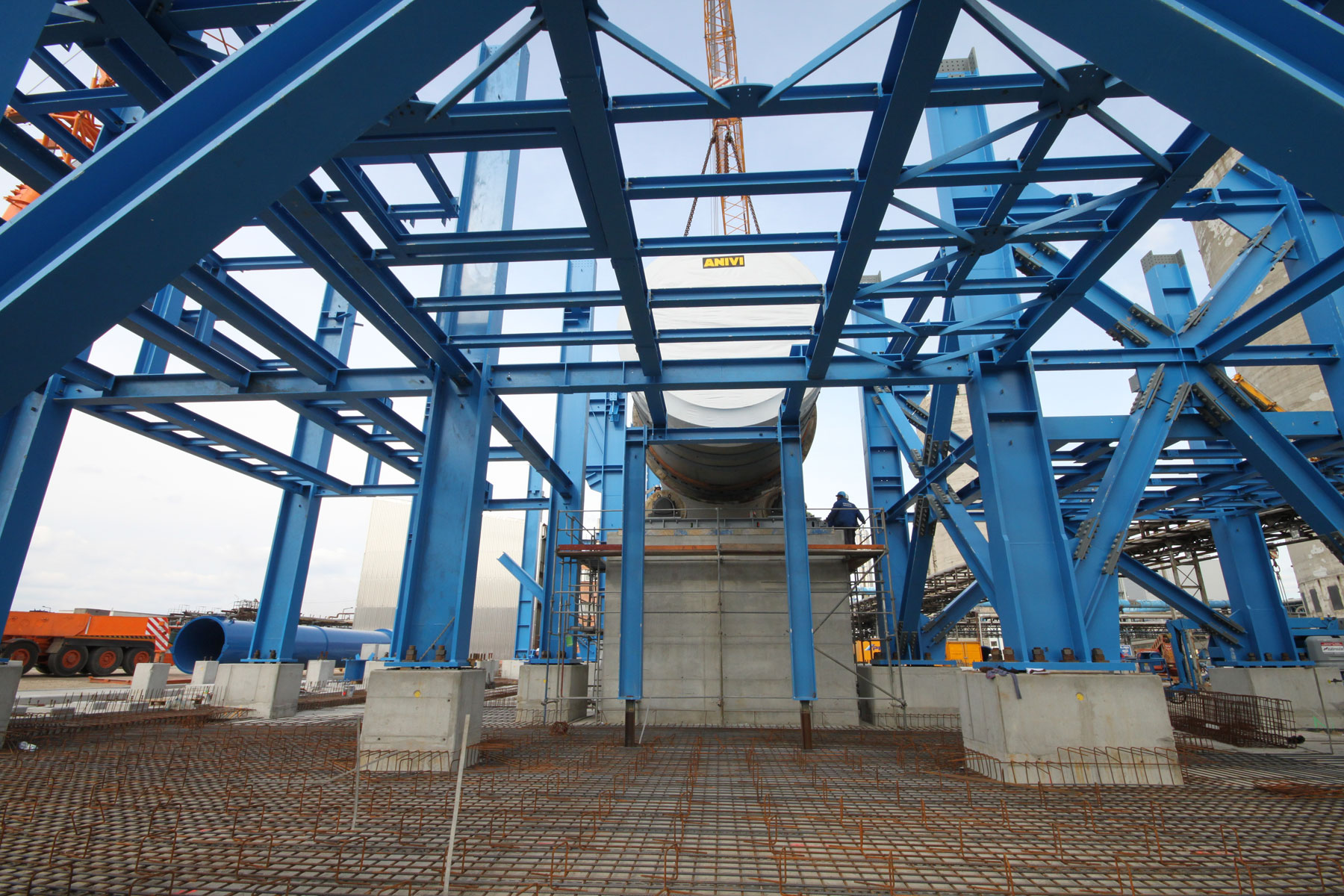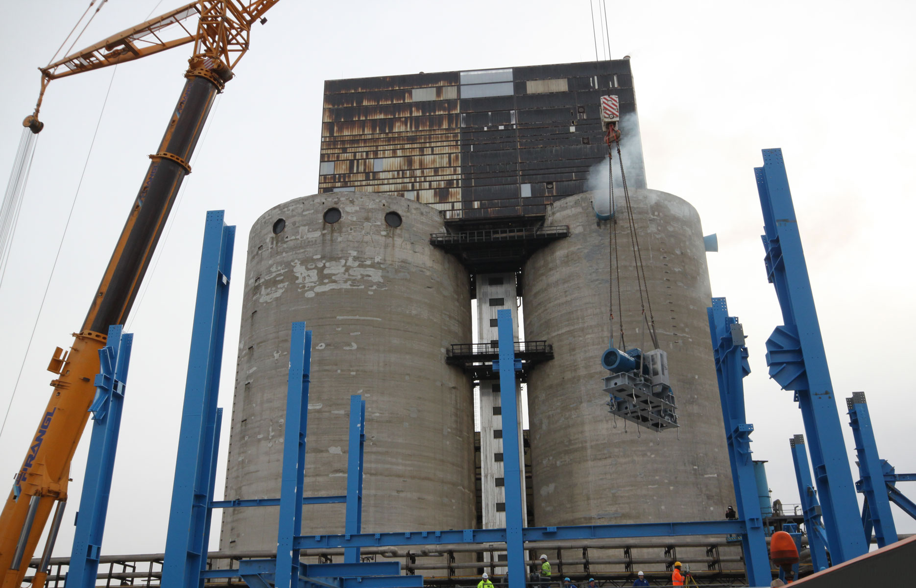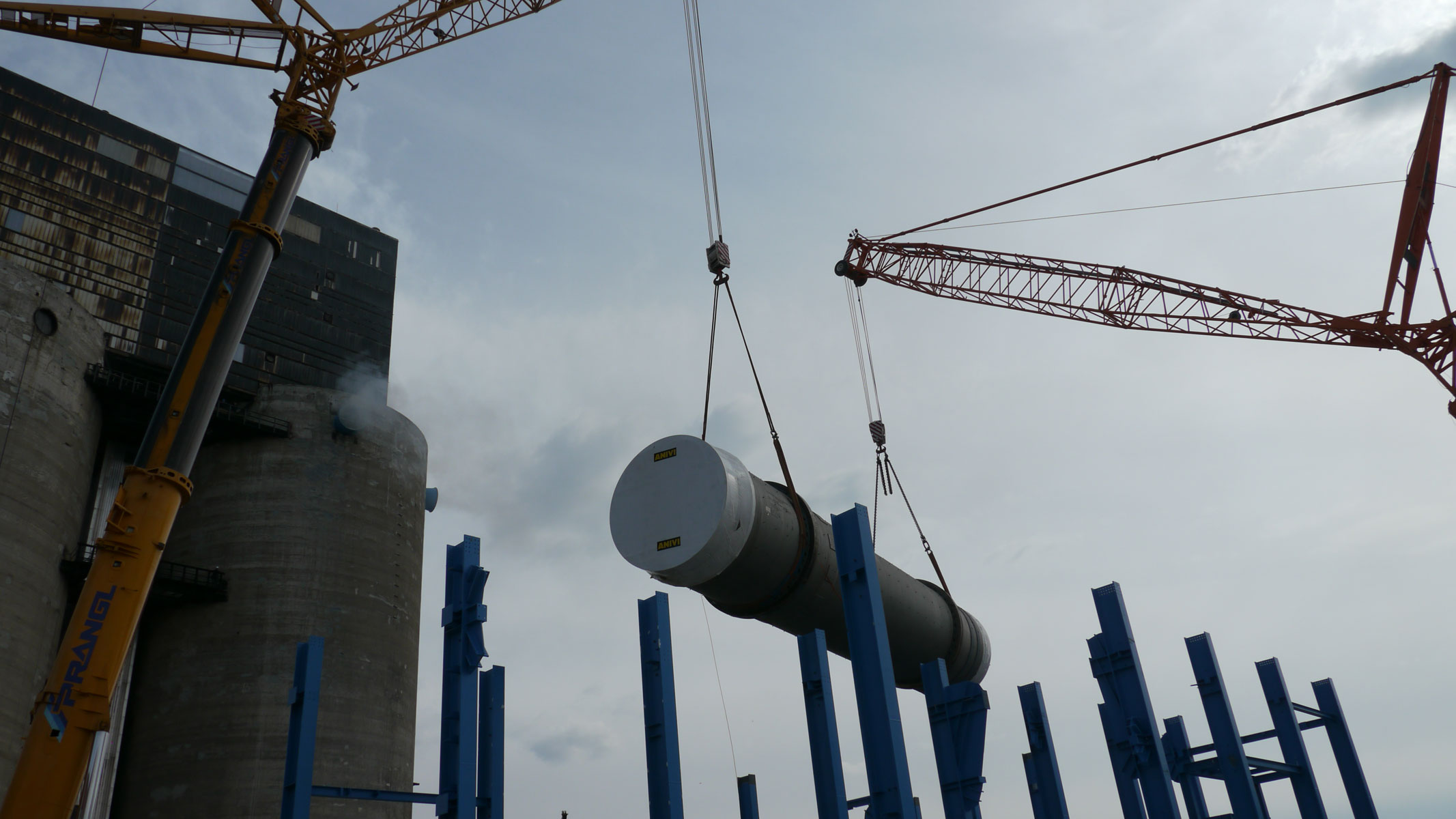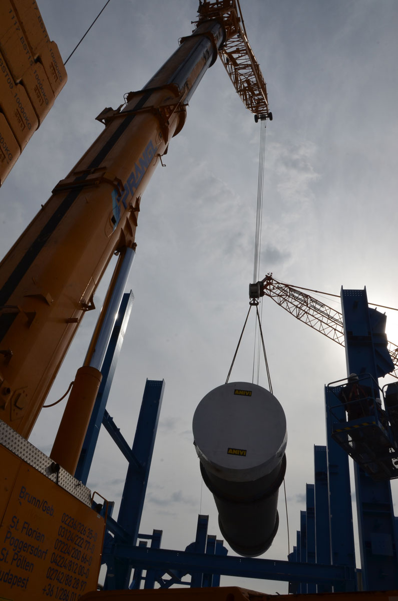 Za dvig in namestitev 116-tonskega sušilnika, 61-tonske čistilne naprave, 28-tonskega podnožja dimnika in drugih komponent z velike razdalje v obstoječo, 26 m visoko jekleno konstrukcijo so bile zaželene naše obsežne izkušnje. Družba Prangl je izdelala dvižni koncept z dvema dvigaloma, ki je presegel vse druge predloge rešitev. Pranglovi strokovnjaki so dokončno prepričali odgovorne za projekt s podrobno študijo izvedljivosti.