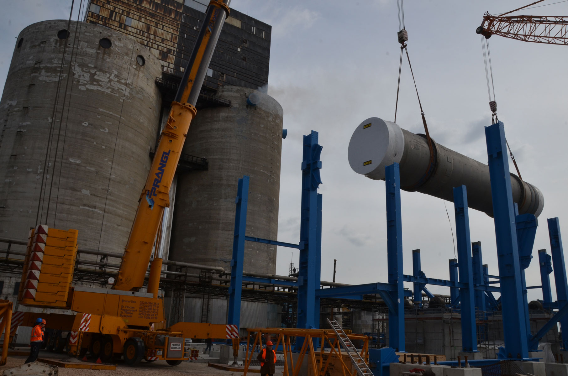 Na lokaciji Pétfürdő (pribl.100 km jugozahodno od Budimpešte) se nahajata dva obrata za proizvodnjo amonijevega nitrata. Pri gradnji dodatnega obrata za proizvodnjo umetnih gnojil je bilo v uporabi veliko Pranglovih dvigal. V prvi naložbeni fazi so zgradili objekt za granulacijo. Dele objekta pa smo morali dvigniti in namestiti z zunanje strani površine obrata.