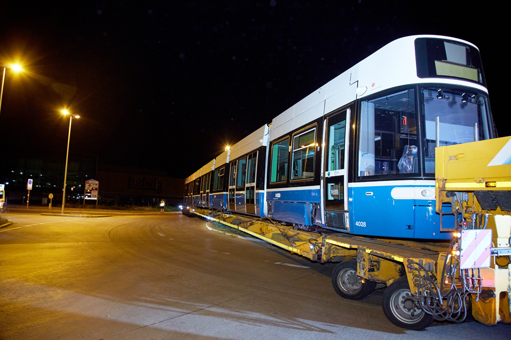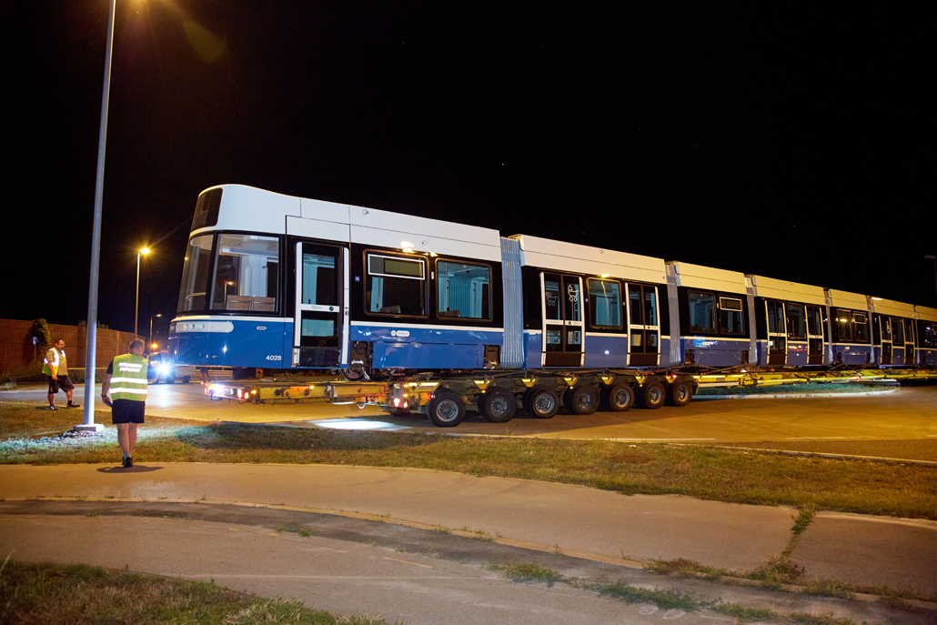 »Zürich 28« je bil poslan na pot v Nemčijo s posebno konfigurirano transportno kombinacijo: zaradi dolžine in teže tramvaja je bil vlačilec opremljen z različico tirnega priklopnika z 2 + 7 osmi. Na koncu je imel težak tovor impresivno skupno dolžino 52,5 metra, skupno širino 3,0 metra in skupno višino 4,4 metra s skupno težo 120 ton. Zaradi dimenzij je bila pot od tovarne v 22. dunajskem okrožju do avtoceste vse prej kot lahka.
