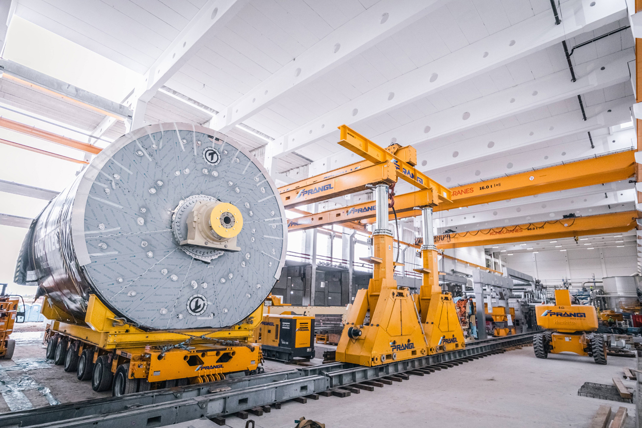 Mogočni Yankee - valj (visok 5,70 m, širok 5,50 m in dolg 9,20 m) je bil s 6-osnim samohodnim vozilom previdno pripeljan v novo proizvodno halo in postavljen prečno pod dvižni portal. Da bi bilo med tirnicami dovolj prostora, je bilo potrebno odstraniti celo pogonsko enoto samohodnega vozila. Po tem je lahko dvižni portal prevzel sušilno napravo. A s tem naloge še ni bilo konec, madžarske oblasti so morale na kraju še opraviti predpisan tlačni preizkus.