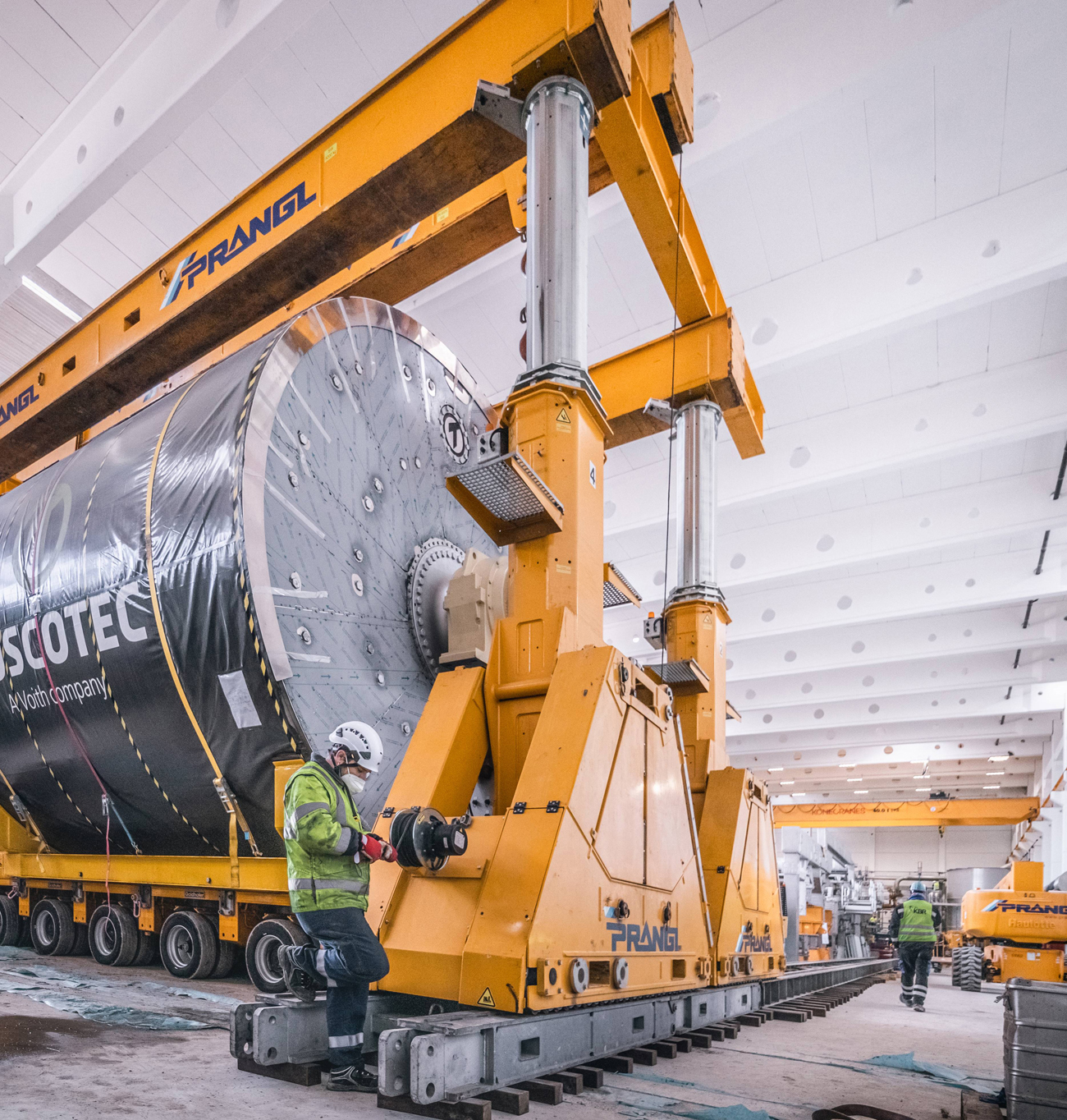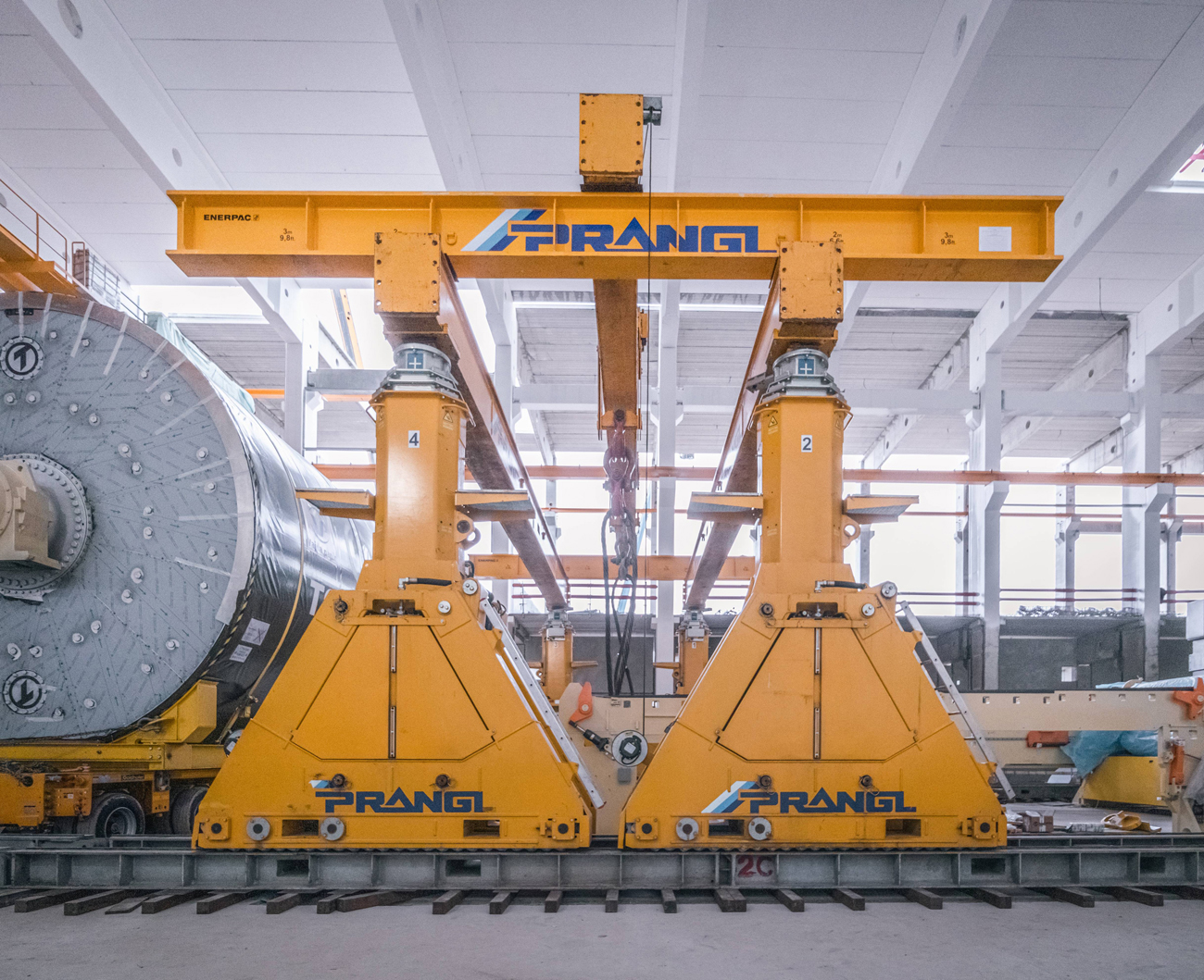 Kot pri vseh nalogah, ki jih prevzame Prangl, so se morali najprej strokovnjaki pri načrtovanju postopka odločiti za ustrezne naprave. Hitro je postalo jasno, da bi moral biti glavni igralec v tem primeru hidravlični dvižni portal. To ni optimalno le pri omejenem prostoru, omogoča tudi natančno pozicioniranje tovora z več teleskopskimi hidravličnimi dvigalkami in posebnim sistemom tirnic. Kot pomoč so uporabili tudi viličar, škarjasto ploščad in zglobno ploščad.