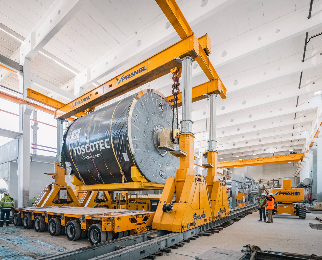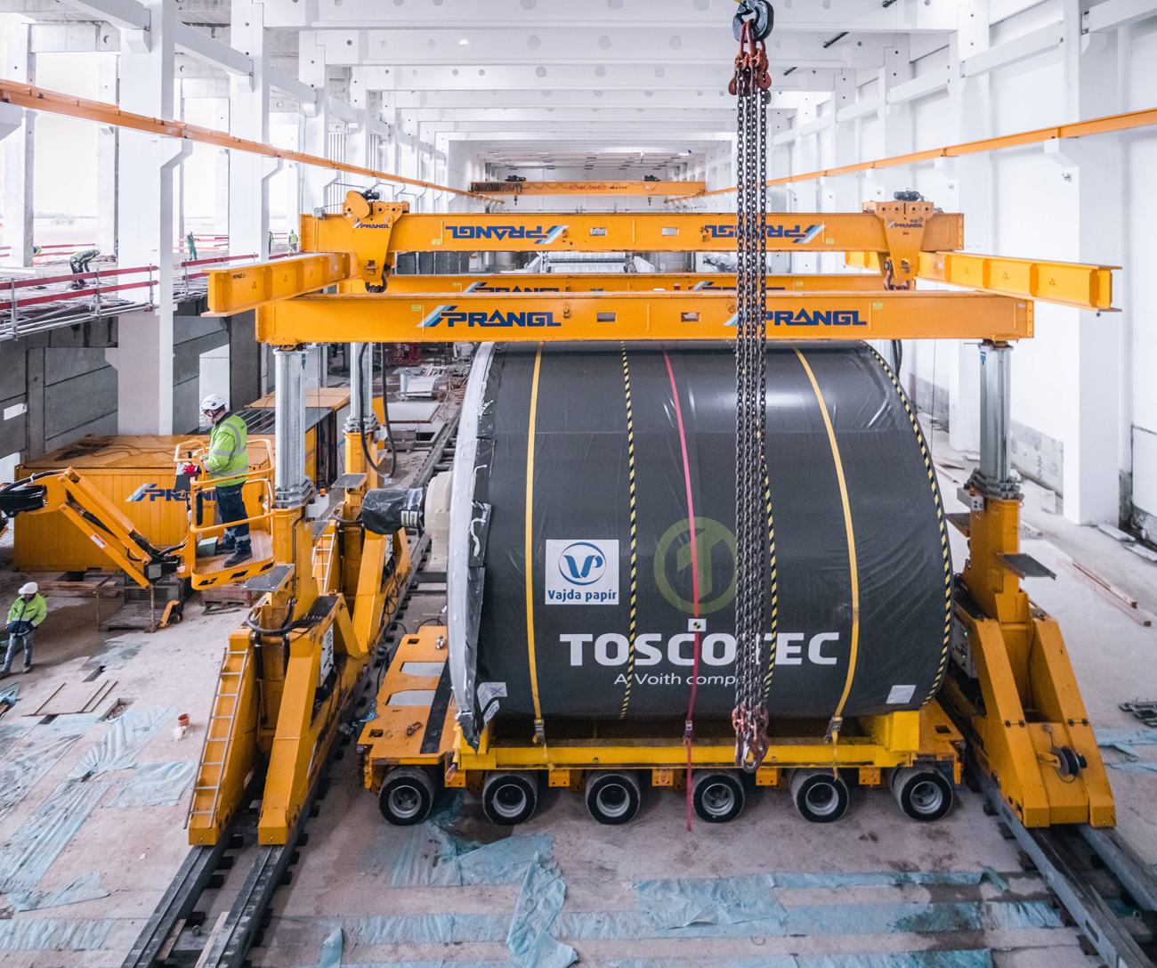 Pranglove strokovnjake so poklicali, da bi pomagali pri razširitvi papirnice v Dunaföldvárju na Madžarskem. V halo je bilo treba vnesti 145-tonski Yankee - valj za sušenje papirja in ga »naviti« na svoje mesto – v pravem pomenu besede, saj je bilo zaradi pripravljenih inštalacij prostora malo.