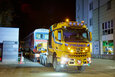Ob 22.00 se je težki transport, dolg 36,50 metra, širok 3,80 metra, visok 4,60 metra in težak 129,10 tone, odpravil na pot. Prva ovira je bil priključek na avtocesto Mühlkreis, ki se nahaja tik ob mestnem pristanišču in je bil za ta namen celo začasno zaprt. Konvoj je za vstop potreboval celotno širino avtoceste: po kratki razdalji se je ustavil pred mostom, devetosno vozilo je bilo centimeter za centimetrom spuščeno in nato je konvoj pod mostom nadaljeval počasi, korak za korakom. Izvoz za mostom čez Donavo je od voznika tovornjaka zahteval največjo zbranost, saj je bilo ovinek mogoče prevoziti le zelo počasi.