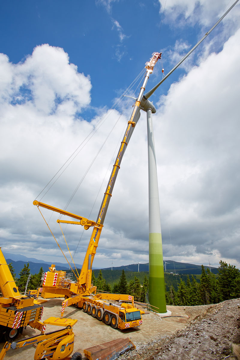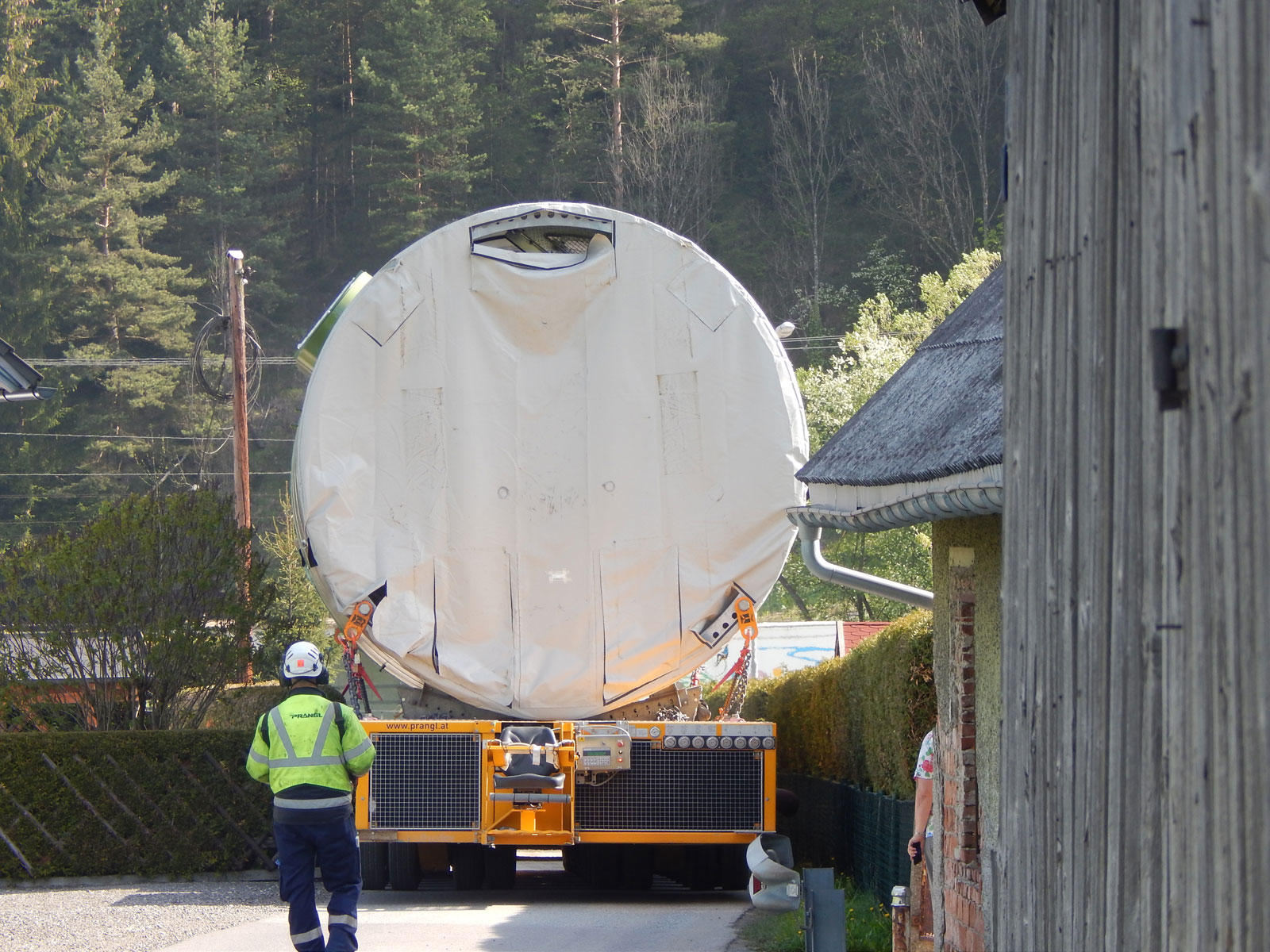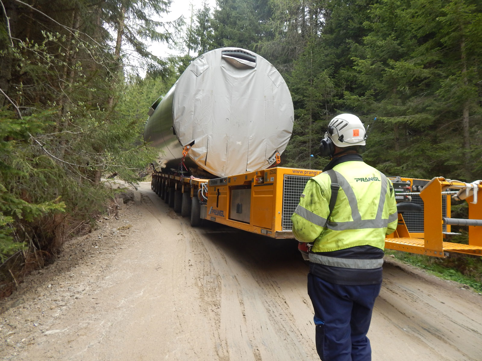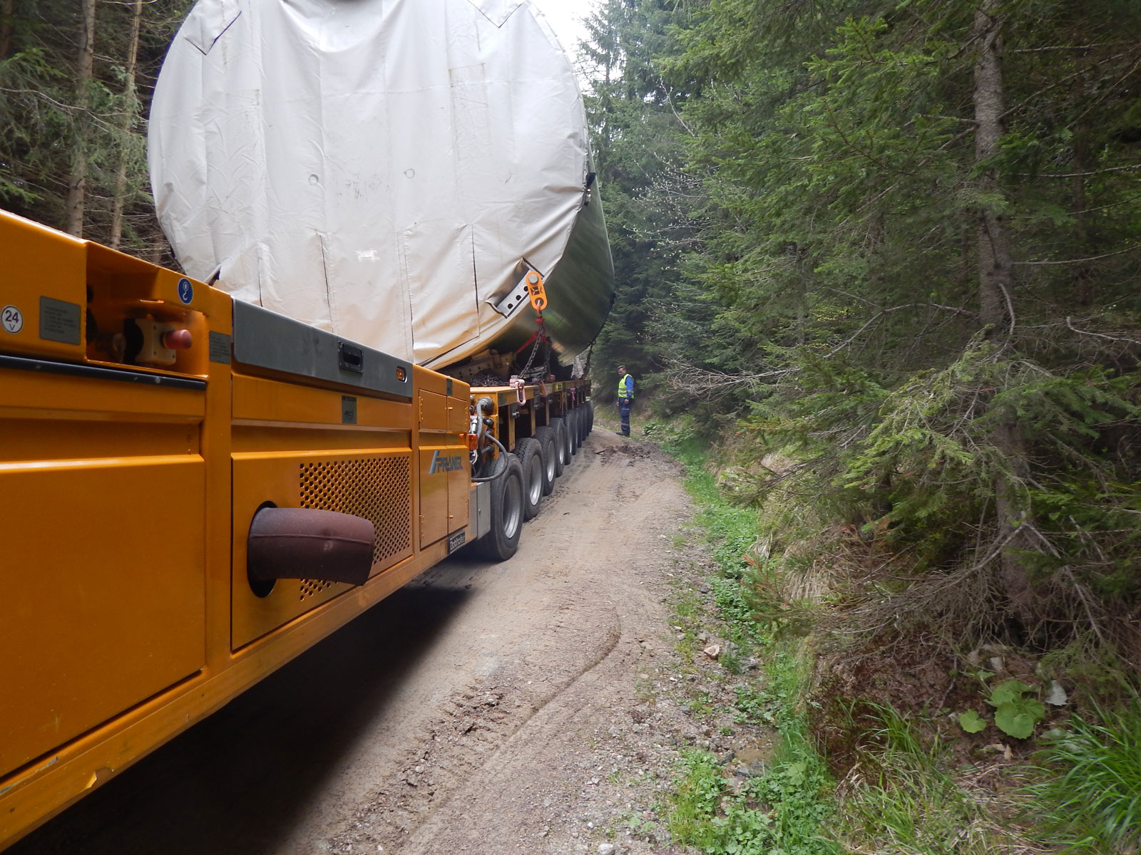 Ker so bile možnosti prilagoditve prevoznih poti zaradi gorske lege omejene, smo tokrat morali uporabiti čisto novo tehniko. Prvič smo uporabili najmočnejše dvigalo Avstrije, 1000-tonskega giganta. 9-osni PTK 1000 velja kot globalno najmočnejše ATV-dvigalo s prometnim dovoljenjem. Z maksimalno dolžino sistema 163,3 m je bil zasnovan posebej za področje vetrne energije. Zaradi kratkega časa premeščanja je postal prednostno veliko dvigalo za uporabo v vetrni elektrarni Pretul.