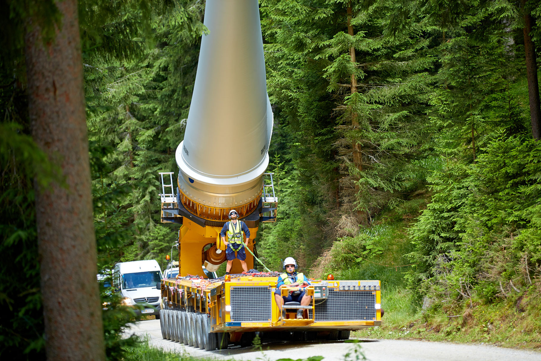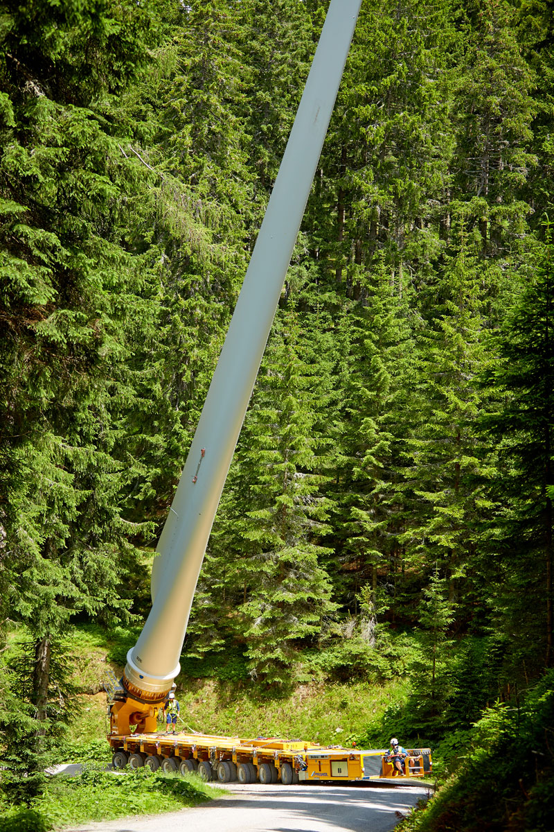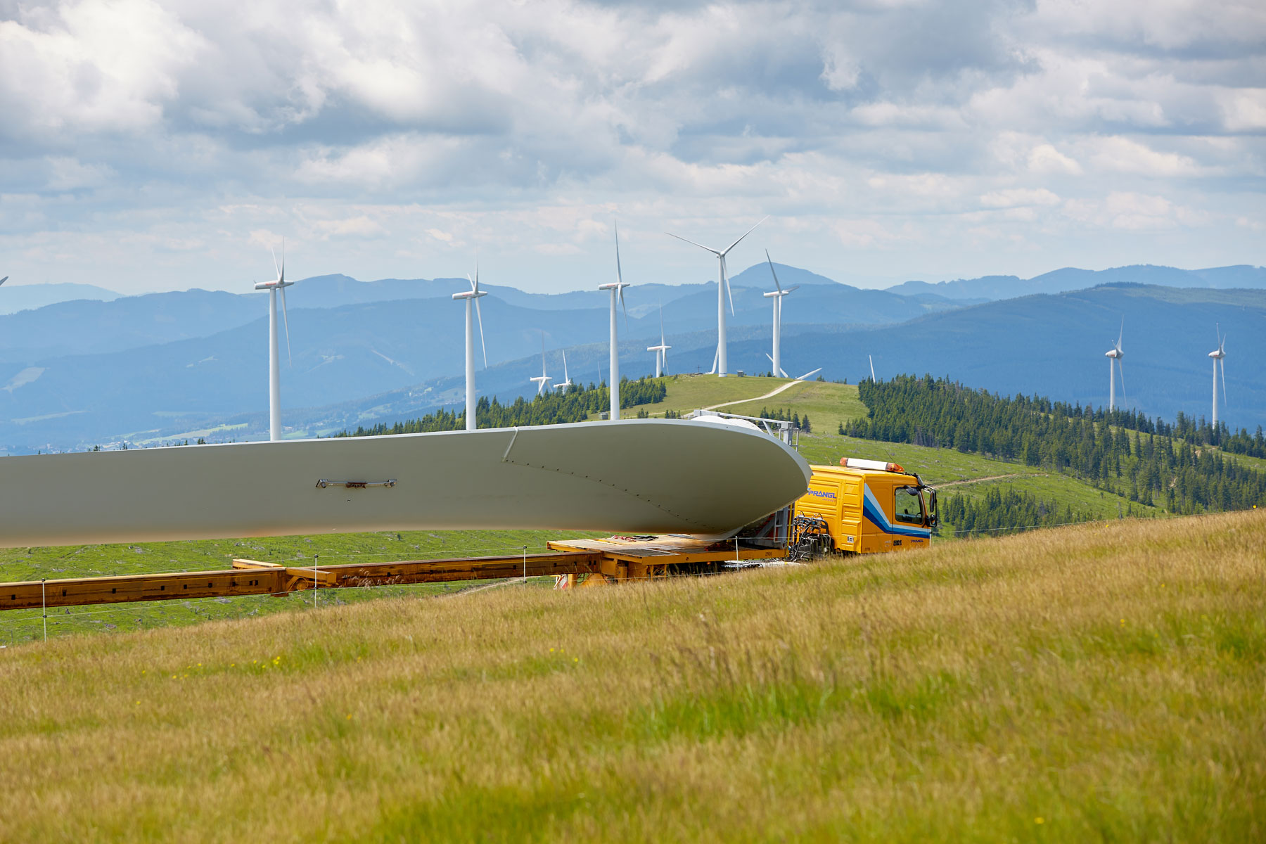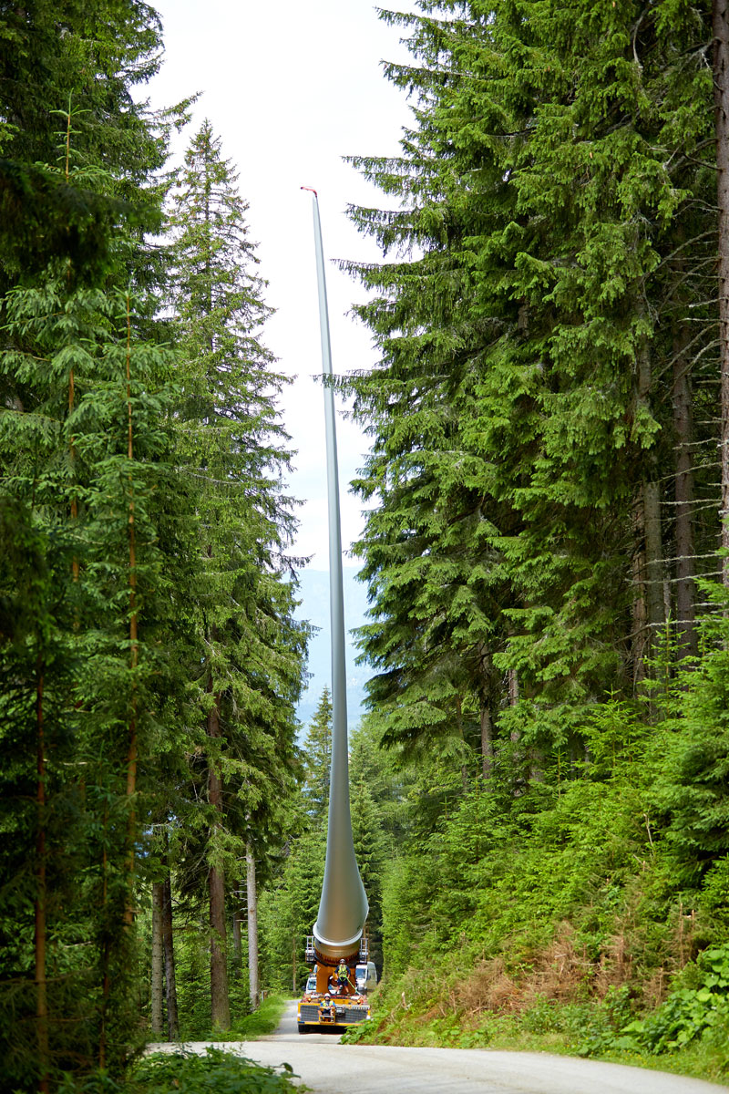 Ker so bile možnosti prilagoditve prevoznih poti zaradi gorske lege omejene, smo tokrat morali uporabiti čisto novo tehniko. Prvič smo uporabili najmočnejše dvigalo Avstrije, 1000-tonskega giganta. 9-osni PTK 1000 velja kot globalno najmočnejše ATV-dvigalo s prometnim dovoljenjem. Z maksimalno dolžino sistema 163,3 m je bil zasnovan posebej za področje vetrne energije. Zaradi kratkega časa premeščanja je postal prednostno veliko dvigalo za uporabo v vetrni elektrarni Pretul.