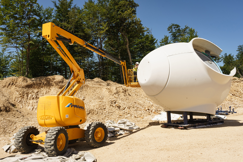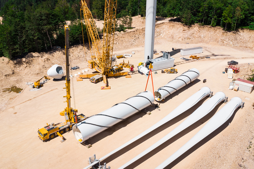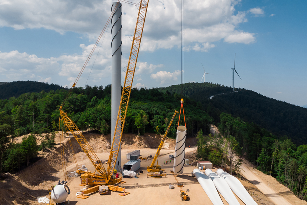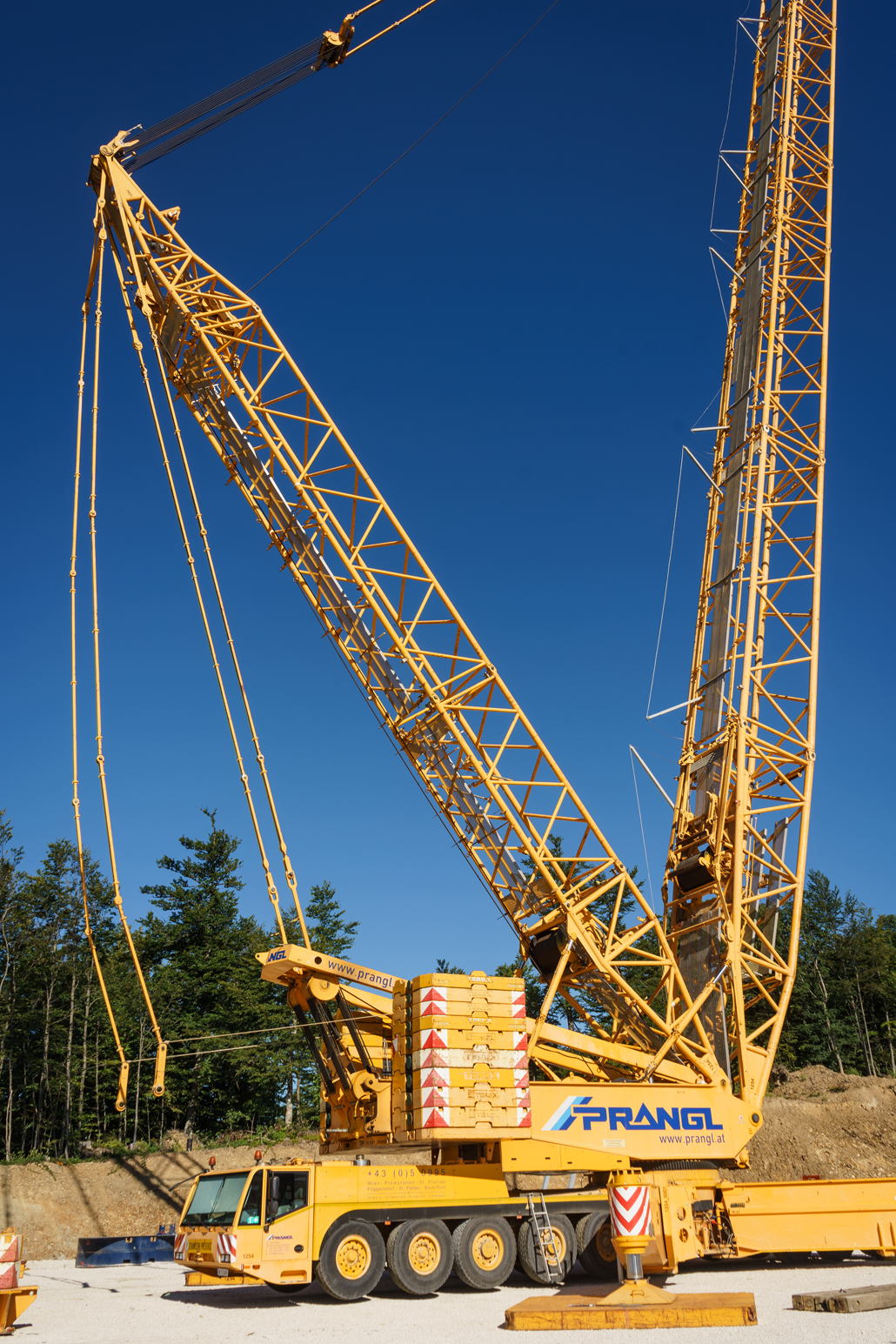 Optimalna koordinacija na gradbišču je bila izjemnega pomena. Sestavne dele vetrnih elektrarn, ki naj bi končno dosegle višino pesta 102,5 metra, je Pranglova ekipa na gradbišču po delih razkladala s 160-tonskim in 250-tonskim teleskopskim dvigalom. Najtežji deli so bili segmenti stolpa, ki so tehtali 65 ton, najdaljši pa so bili kraki rotorja z 72 metri. Vmesno skladiščenje je bilo treba izvesti tako, da so žerjavi lahko prevzeli komponente v pravilnem vrstnem redu in da je bilo dovolj prostora tudi za potrebne predinstalacije.