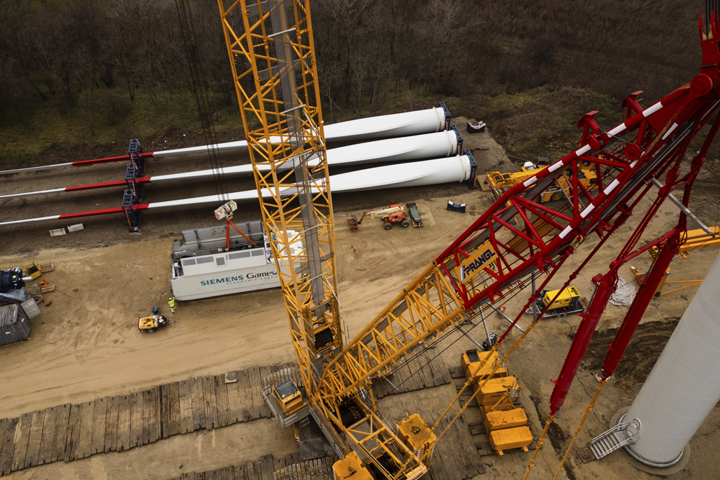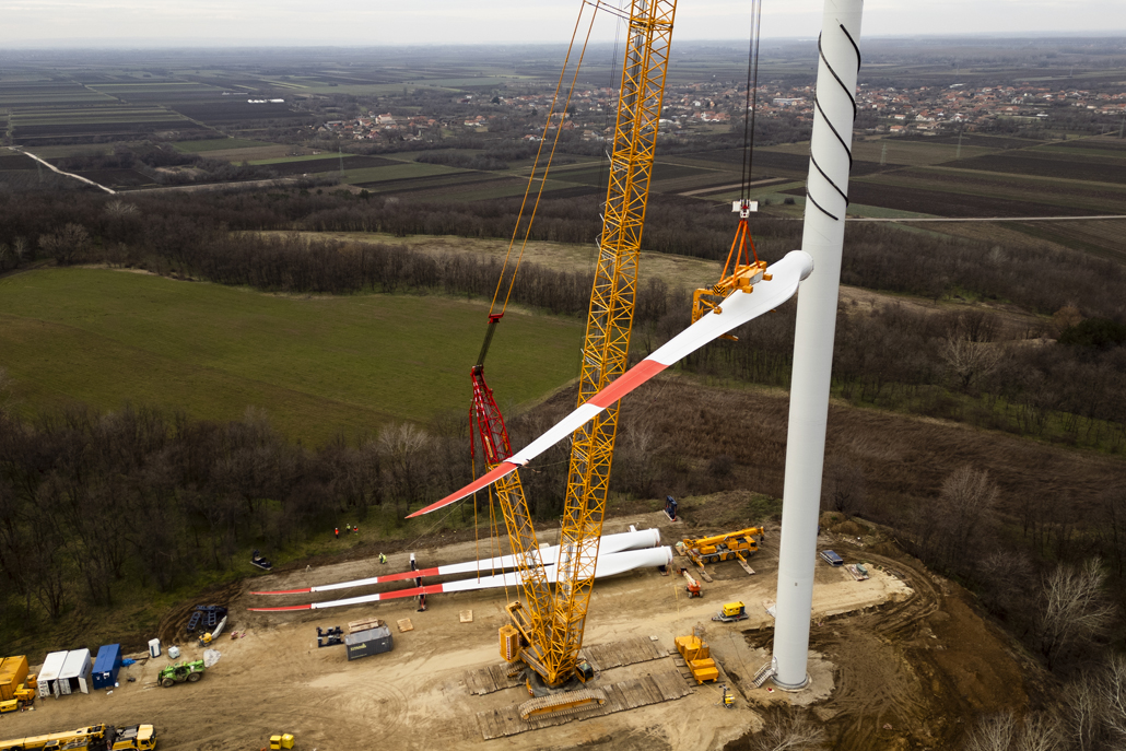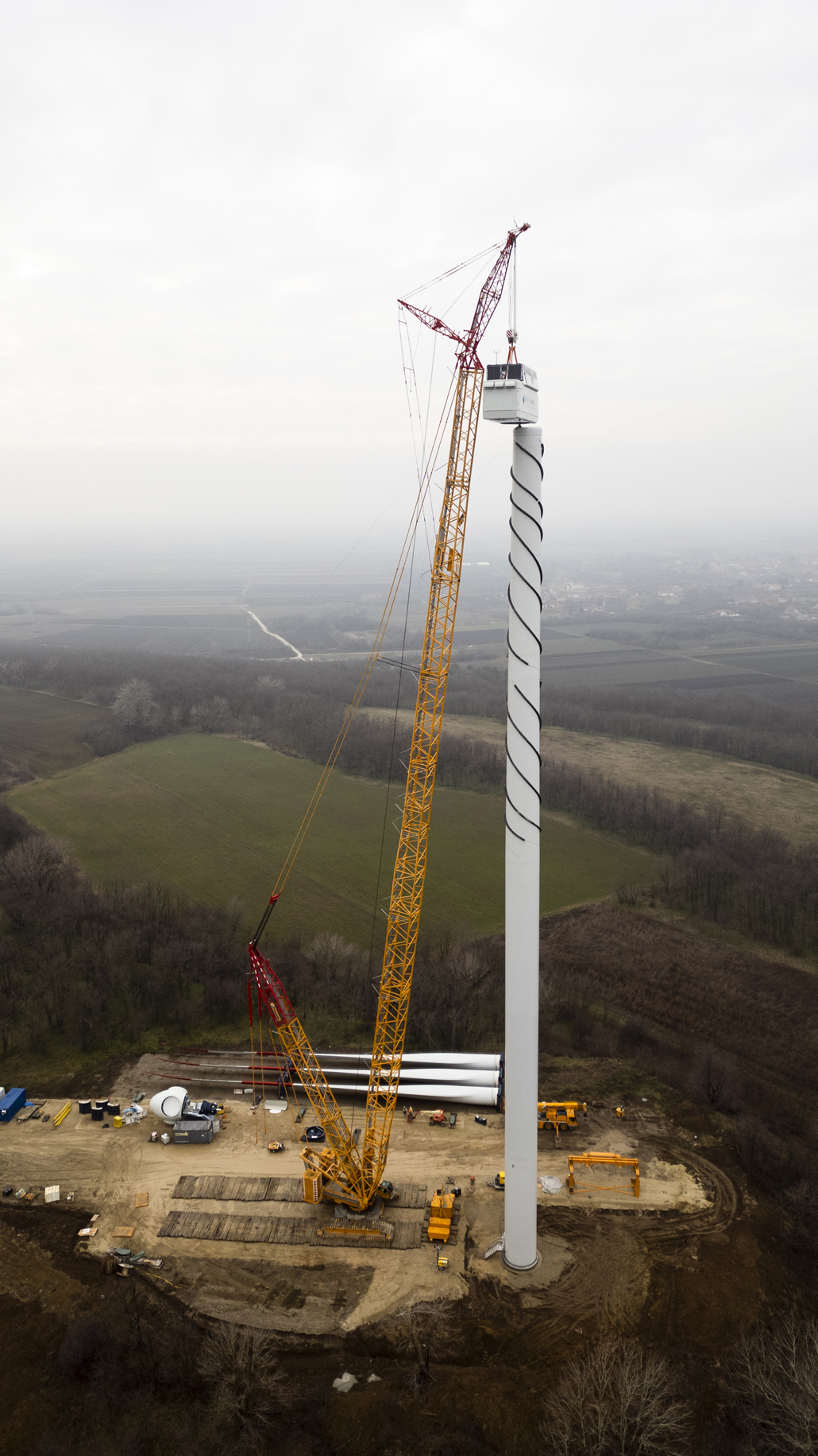 Sledila je gondola, težka 91,8 tone in dimenzij 12,5 x 4,2 x 4,2 metra, nato pa še posamezne lopatice rotorja, vsaka dolga nekaj manj kot 65 metrov in težka 32,5 tone. Po zaključku vsakega posameznega dviga so glavni dvigal premaknili z lokacije na lokacijo z dodatnim 90-tonskim teleskopskim dvigalom. Tako ljudje kot stroji so svoje delo opravili zgledno. Po odprtju vetrne elektrarne Kostolac bodo te turbine najmočnejše v državi.