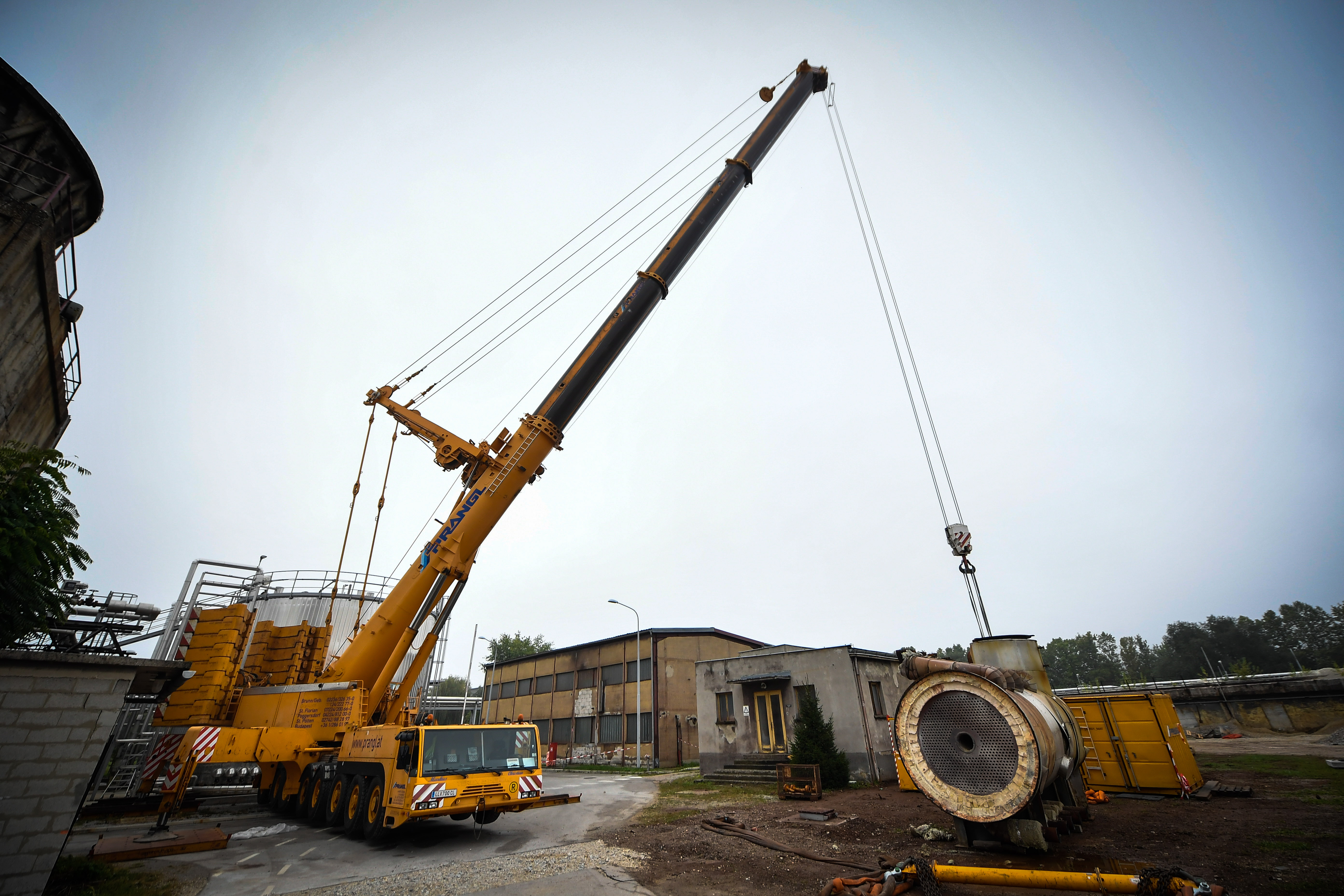 Najtežji dvig je predstavljal dvig 42-tonskega parnega kotla, skupaj z bobnom. Bistvena je bila predhodna določitev težišča in ustreznih sredstev za pritrjevanje tovora. Tovor z dolžino 9 m in višino 6,5 m je moral dvigniti teleskopski 500-tonec s stranskim dosegom 26 m. Pranglova mednarodna ekipa je bila pri delu odlično usklajena.